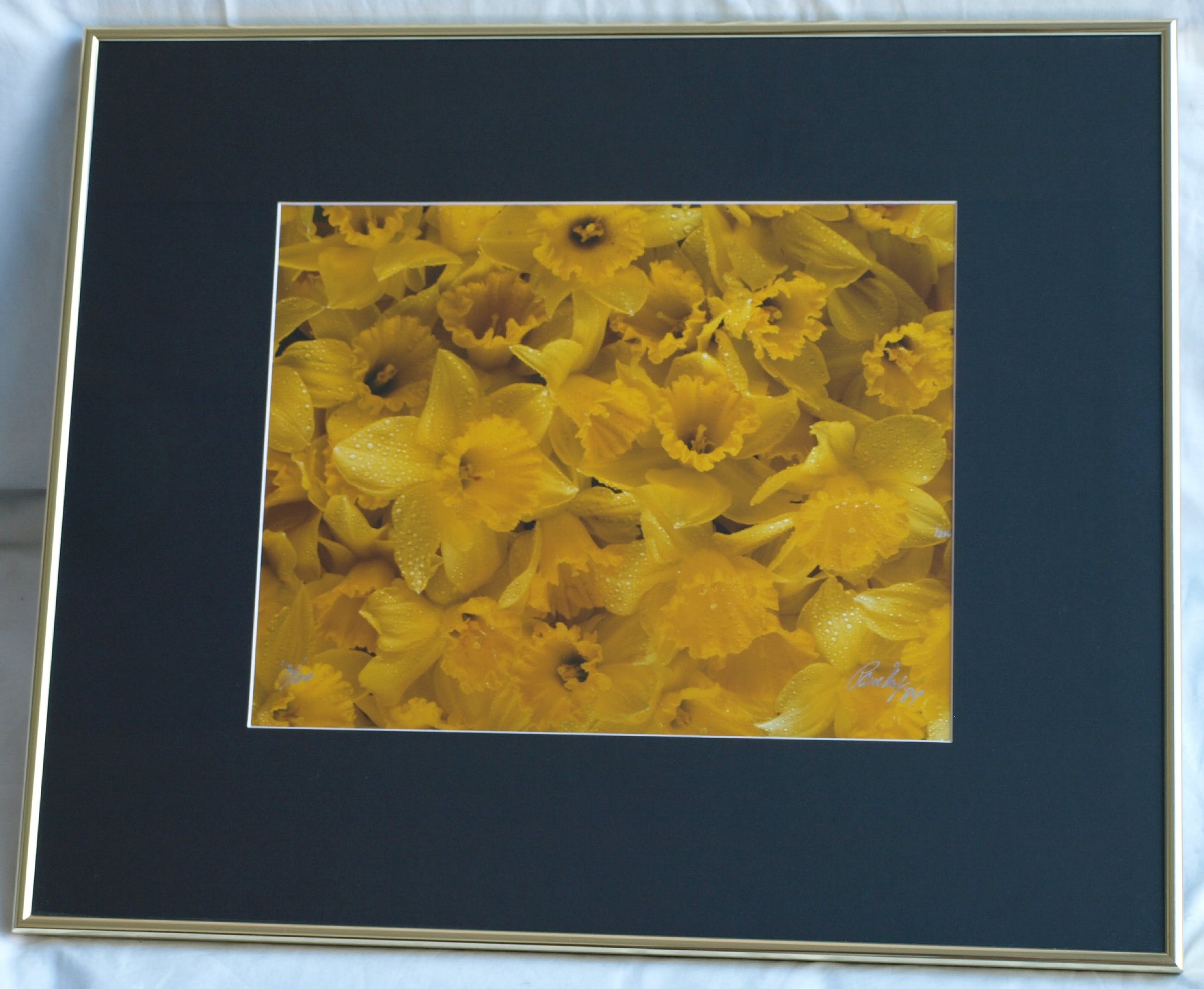 -Ingelijst in een metalen lijst met een zuurvrij passe-partout en glasplaat.