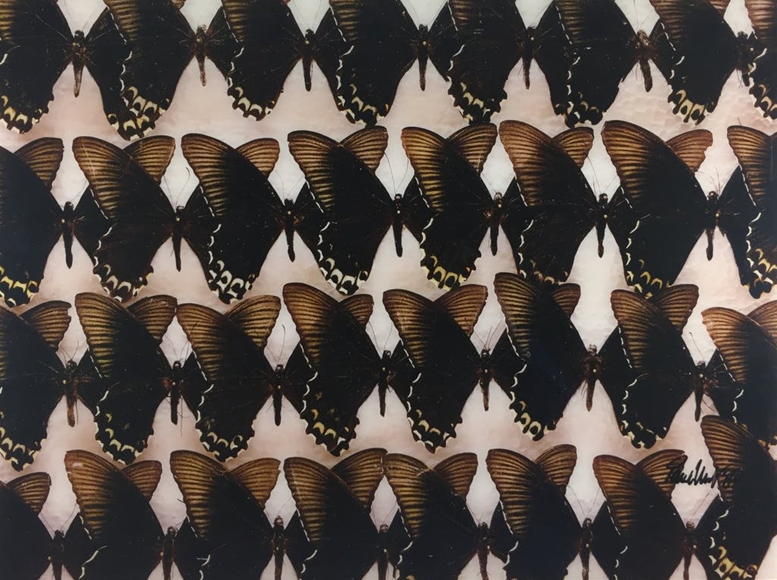 Prachtige foto gemaakt door Paul Huf in het Entomologisch Museum in Amsterdam in 1984. Afgedrukt op een, zeker voor die tijd, speciale drager. Te vergelijken met Dibond, te zien op de laatste foto.