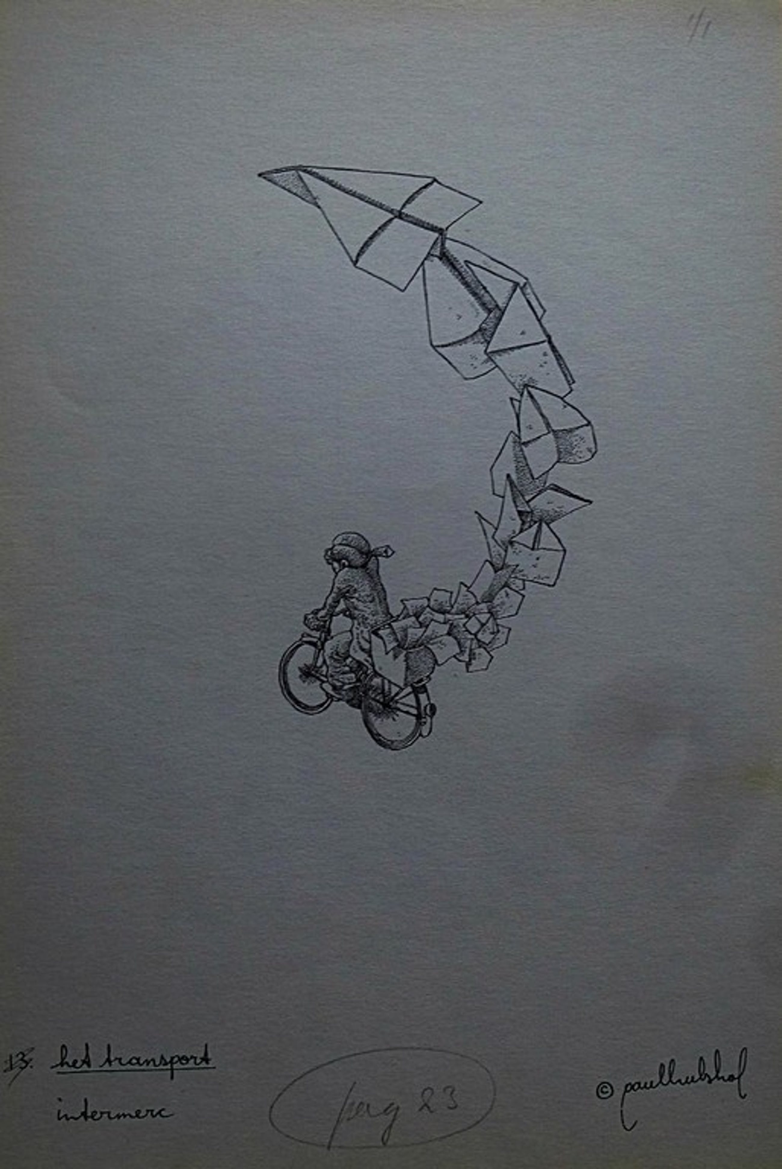Opmerking: Alle tekeningen die ik van Paul Hulshof aanbied, zijn illustraties voor een boek (uitgeverij Intermerc).