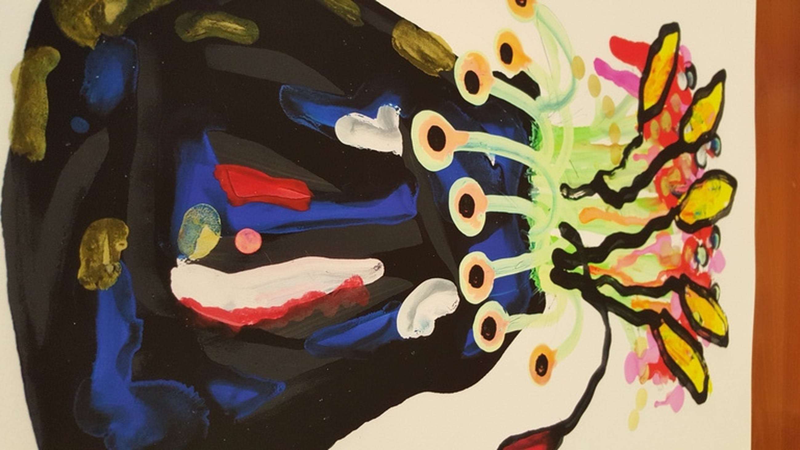 in 2015 Kostabi launches his character sprkl through Gallerie F in Kranenburg at the Art Karlsruhe art fair with a solo exhibition, of paintings sculpture and prints of the character.