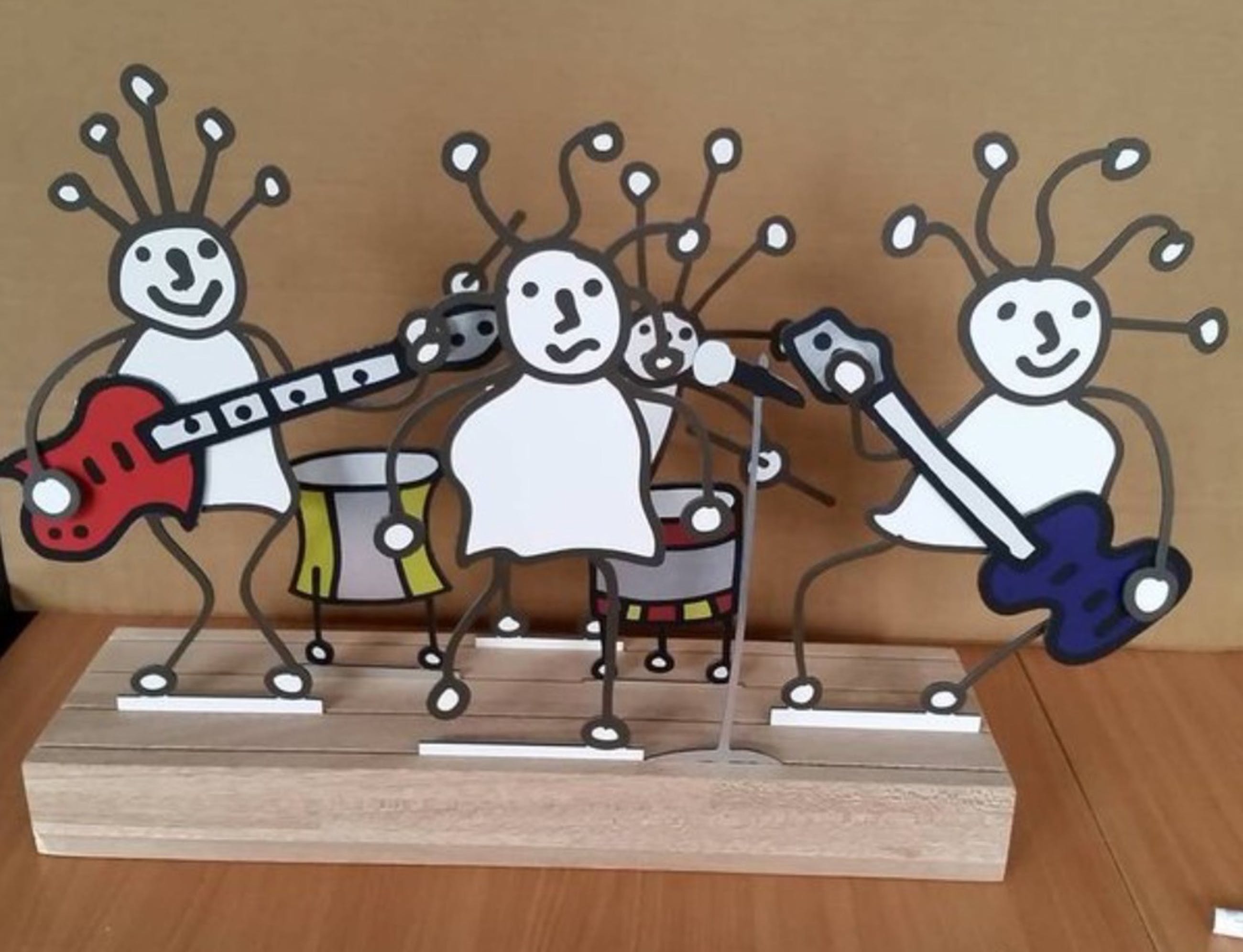 De sculptuur bestaat 4 losse SPRKL figuren + instrumenten die individueel plaatsbaar zijn in de sokkel. De "opstelling" van de band kan naar eigen inzicht worden gedaan.