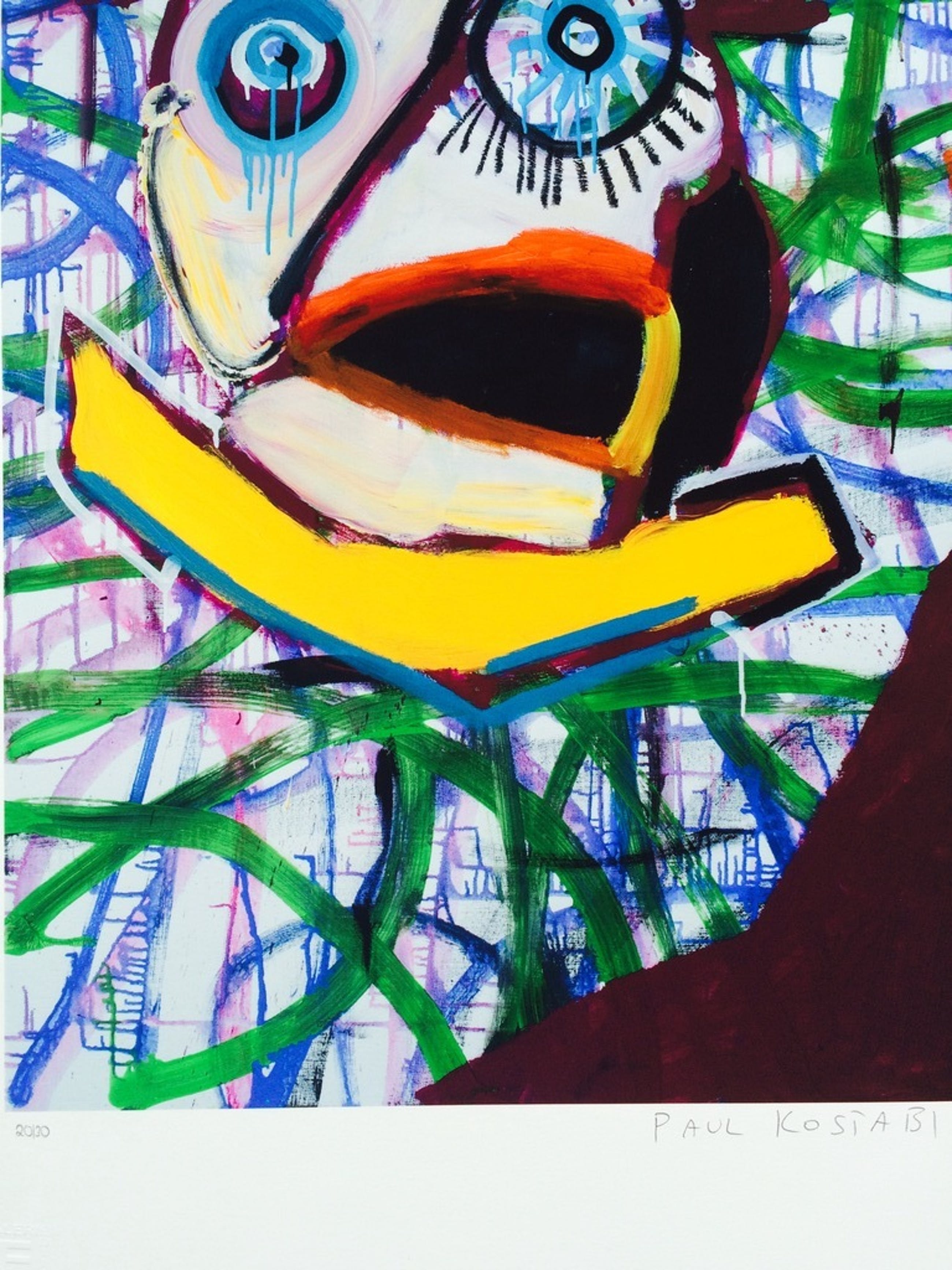 Prachtige zeefdruk handgesigneerd door Paul Kostabi. De afmeting bedraagt ca 52,00 x 61,00. Werk is nog nooit ingelijst en tevens voorzien van een reliëf stempel.