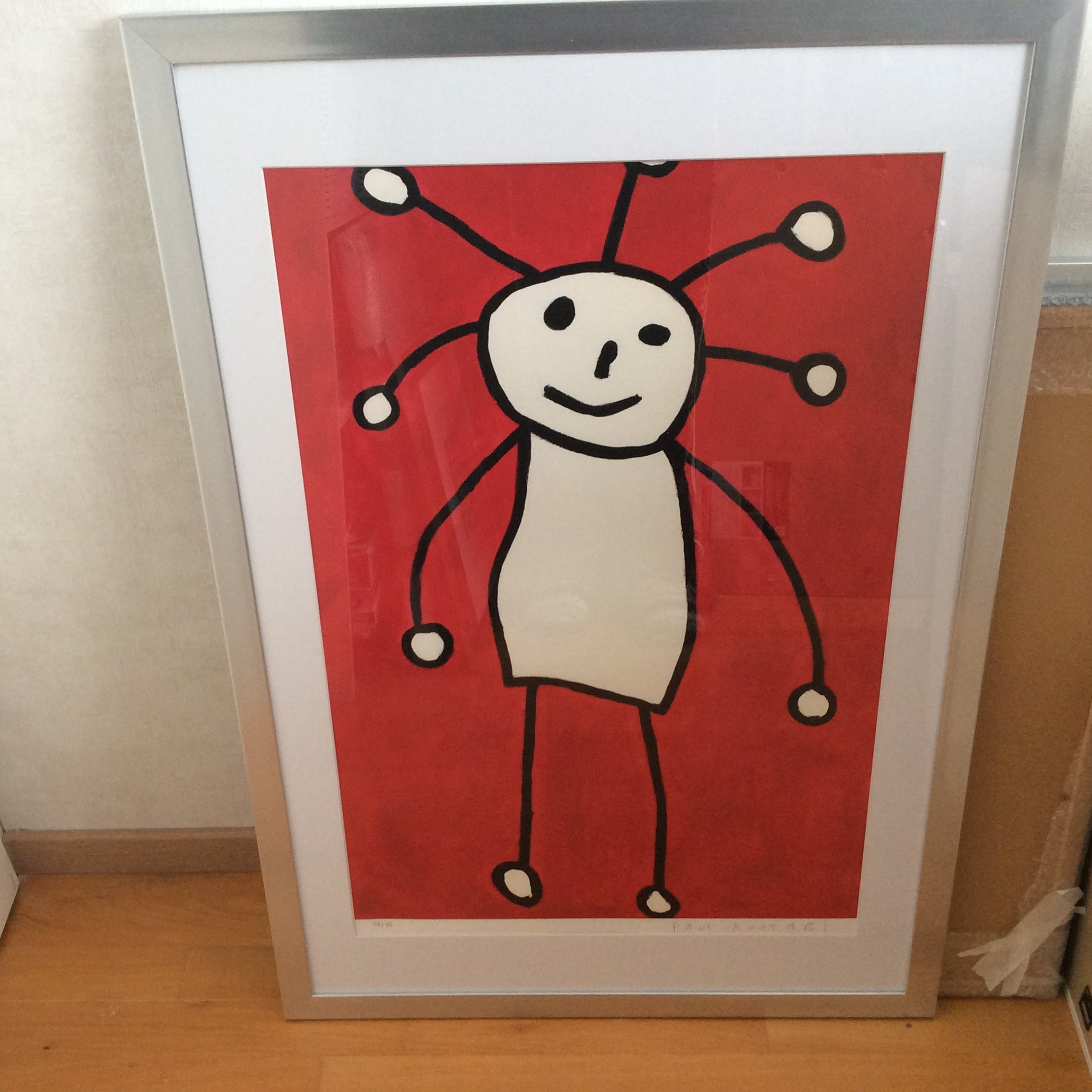 Leuke Giclee van Paul Kostabi, opvallend rood, ingelijst inclusief passé partout.