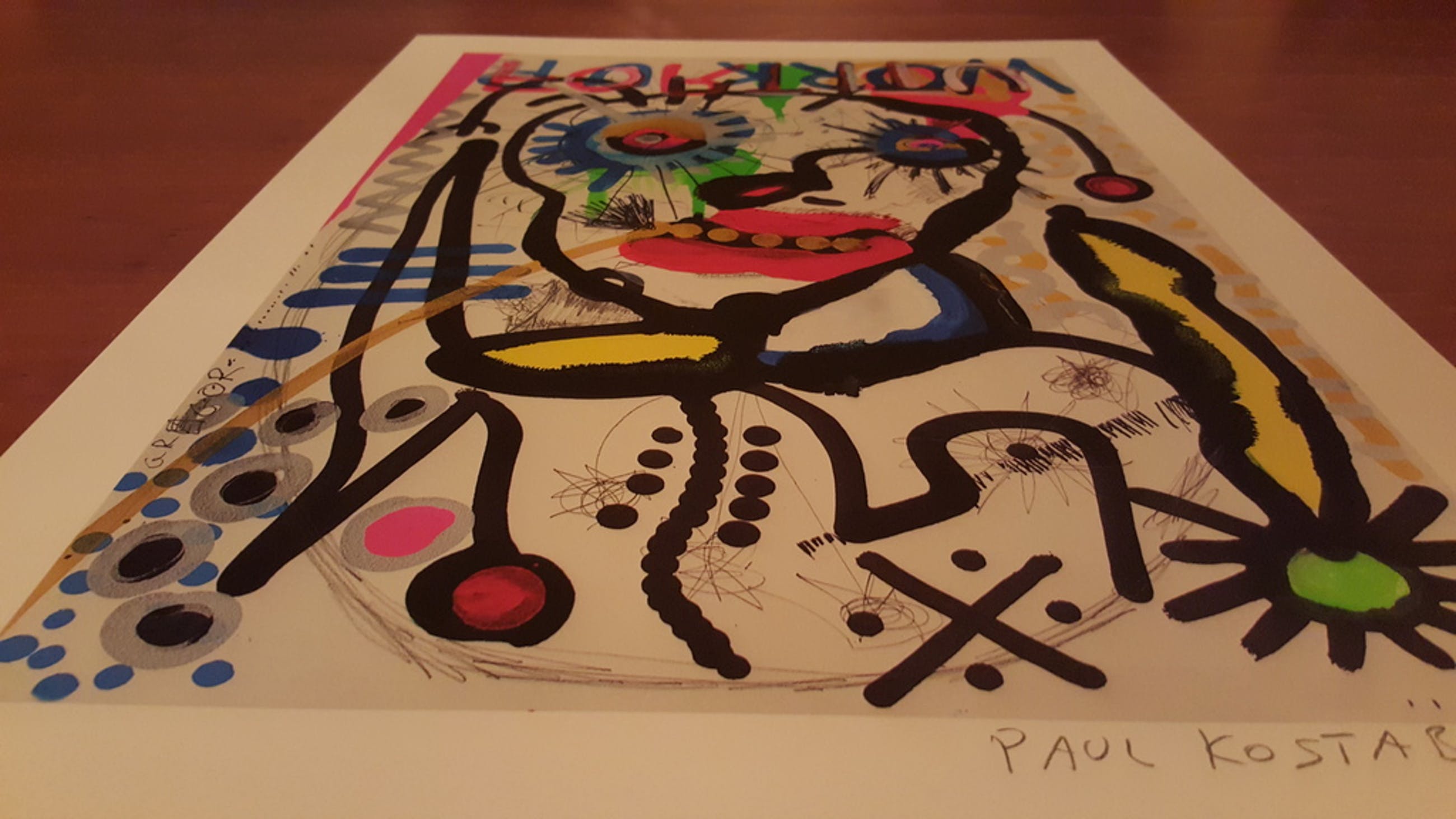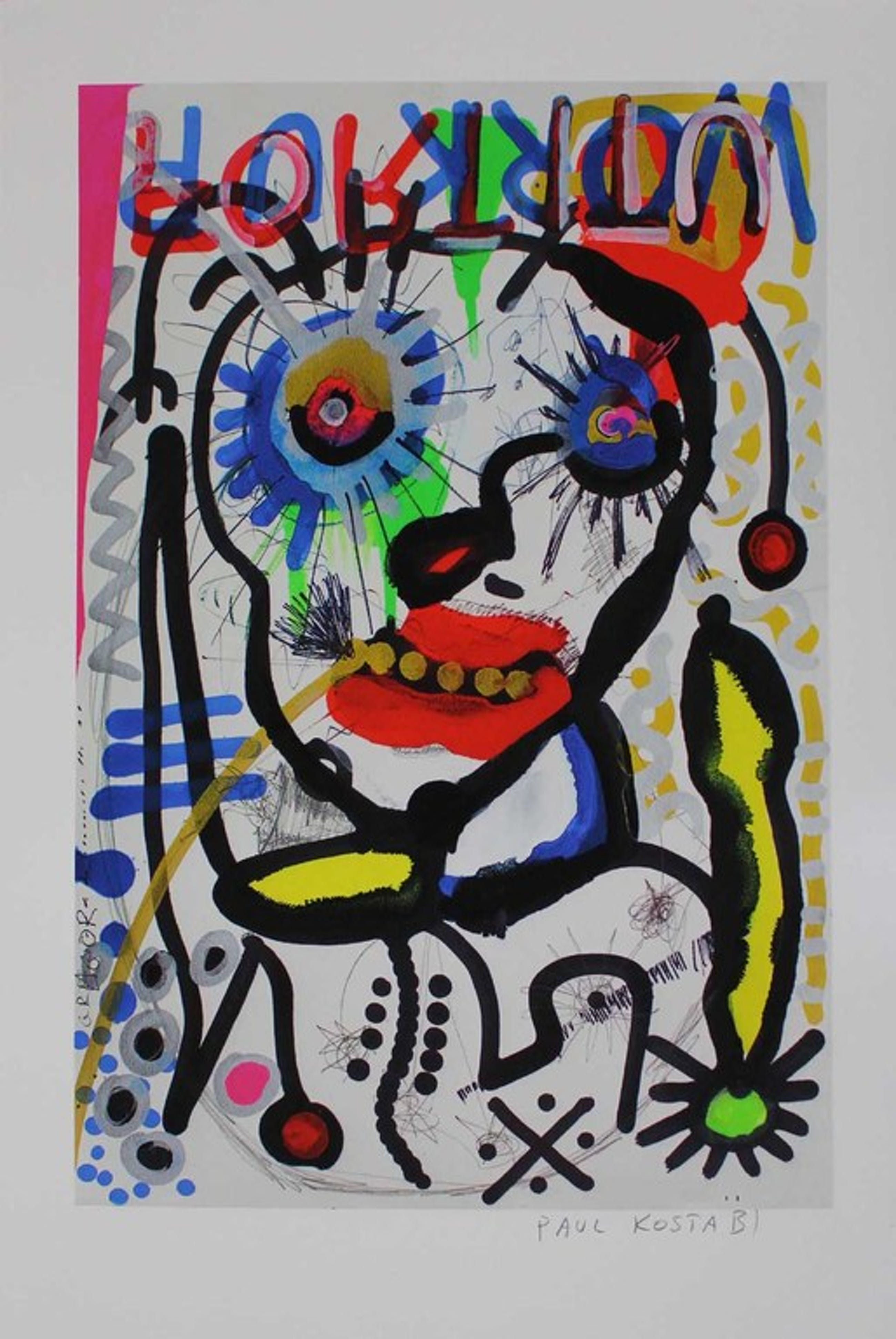 in 2015 Kostabi launches his character sprkl through Gallerie F in Kranenburg at the Art Karlsruhe art fair with a solo exhibition, of paintings sculpture and prints of the character.
