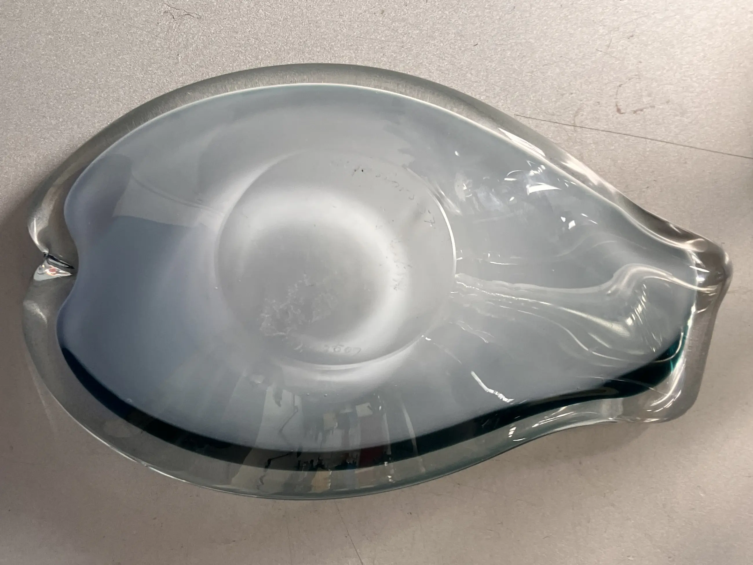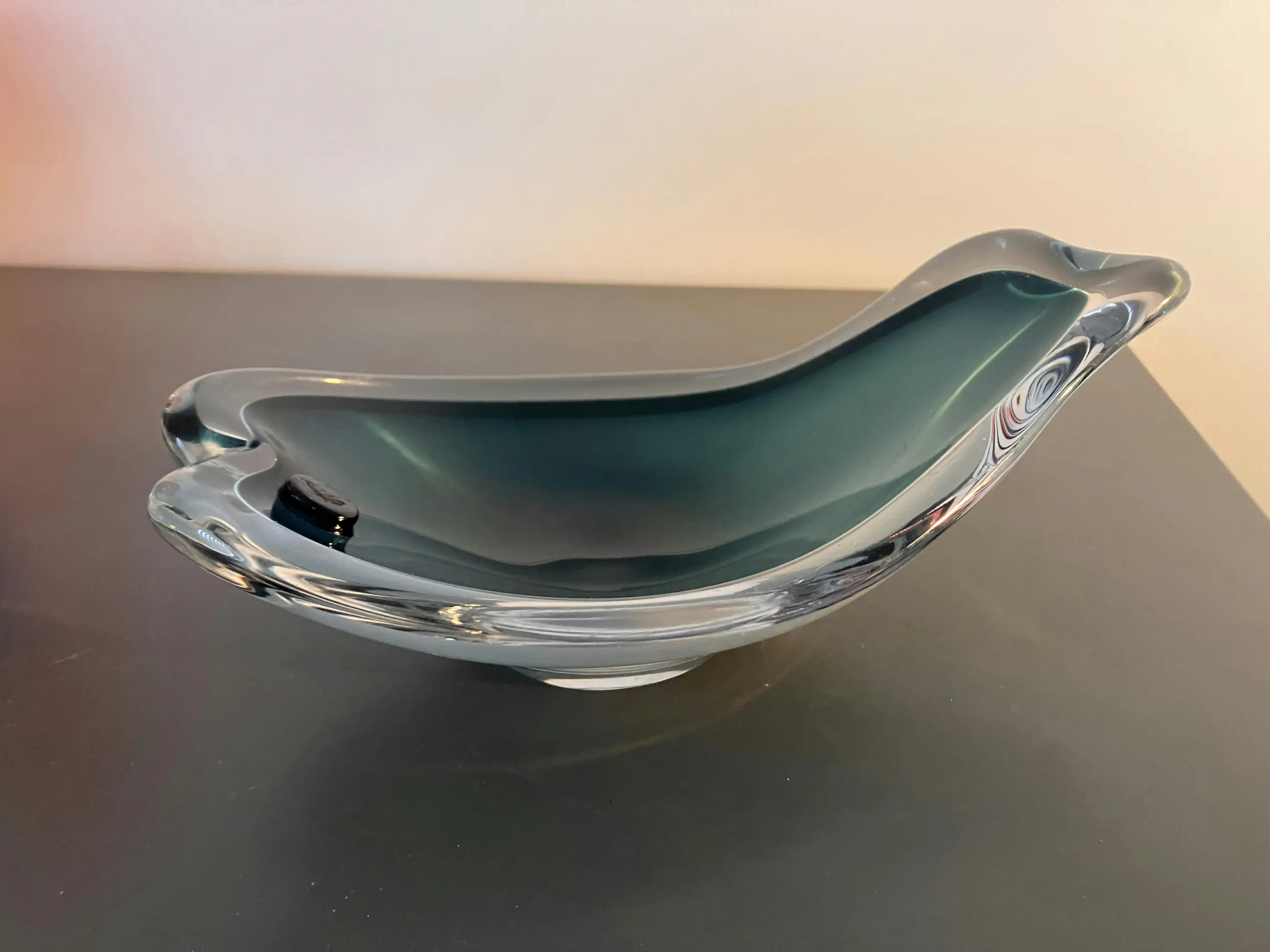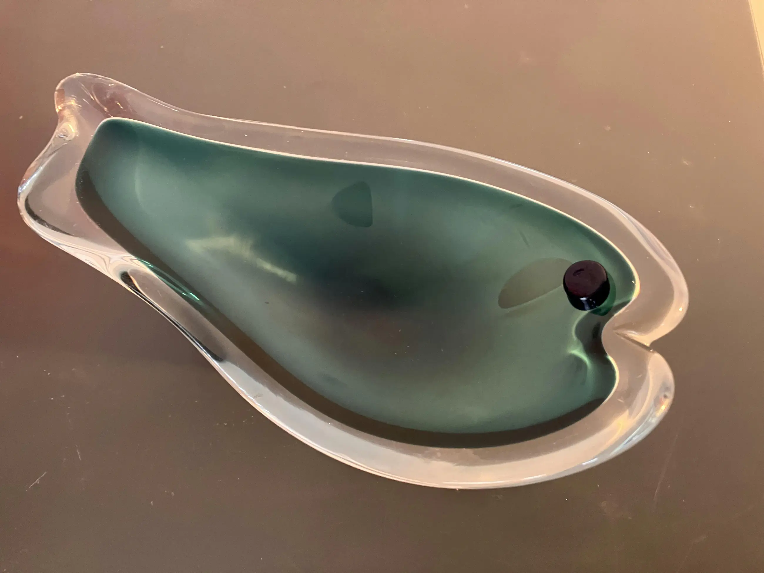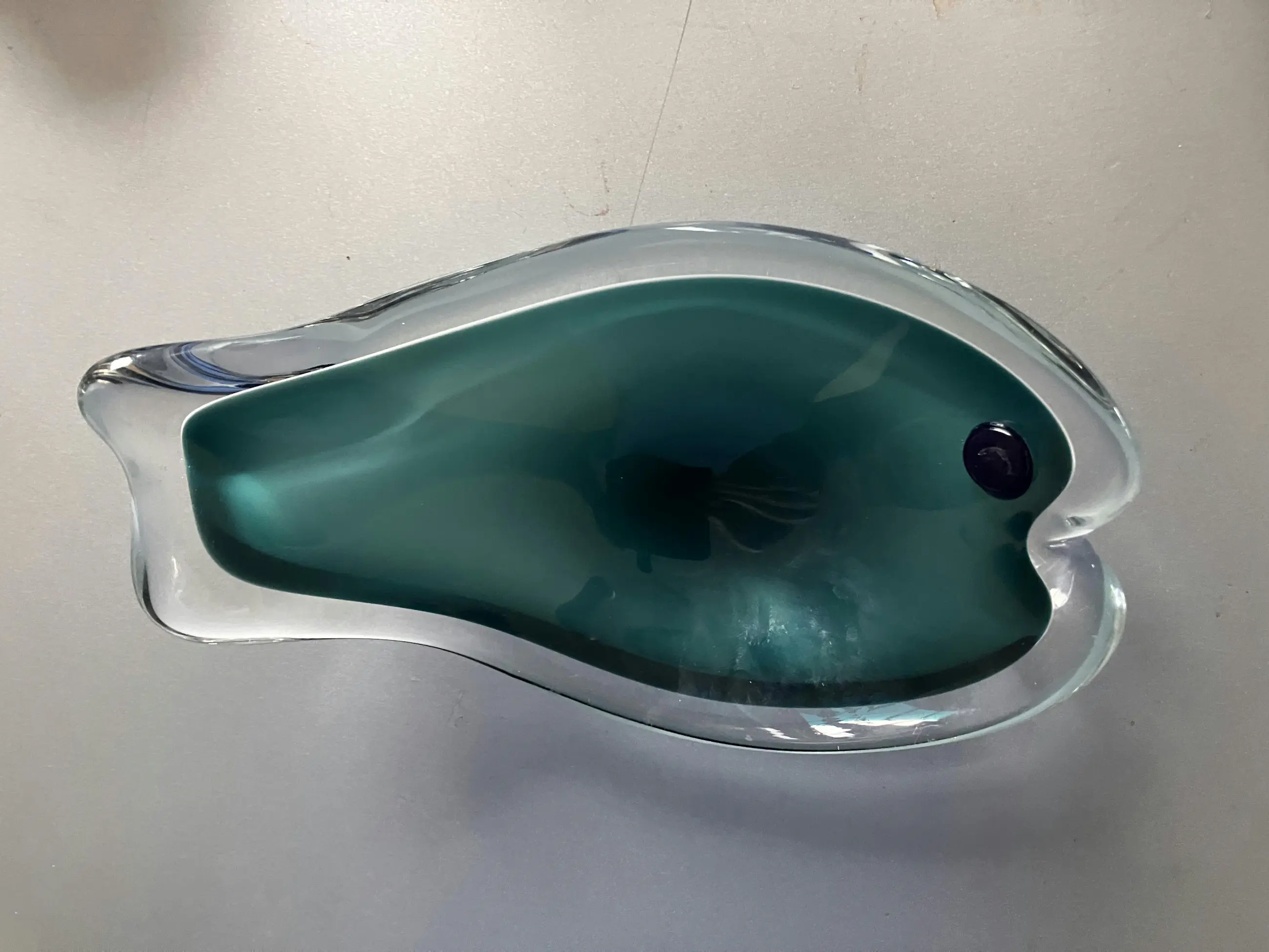 Zweeds van Flyg Fors Ontwerp Paul Kedelv Schaaltje in de vorm van een vis Scherpe omlijning van het groen tegen het helder