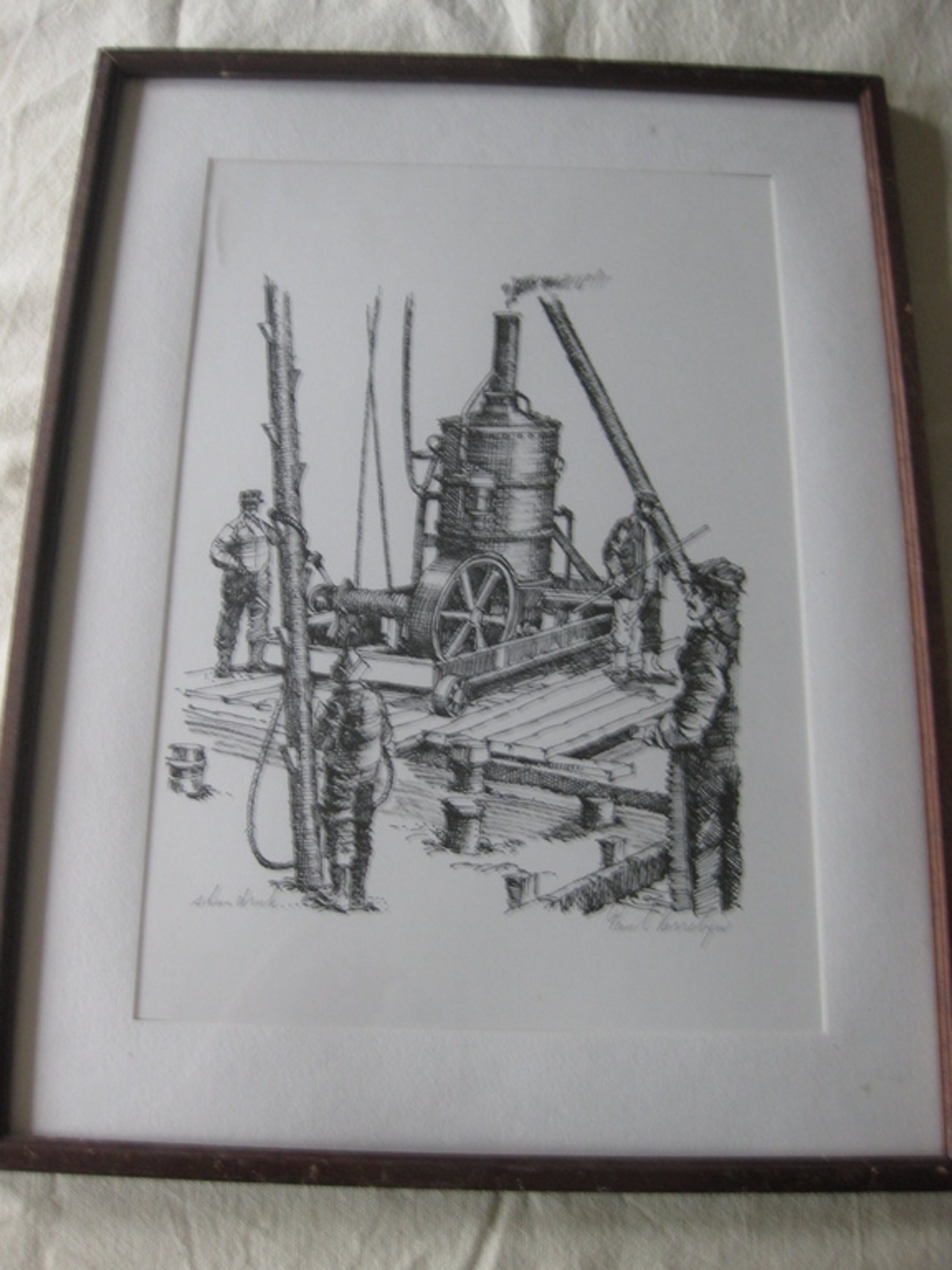 Steendruk in houten lijstje van Paul Kerrebijn.