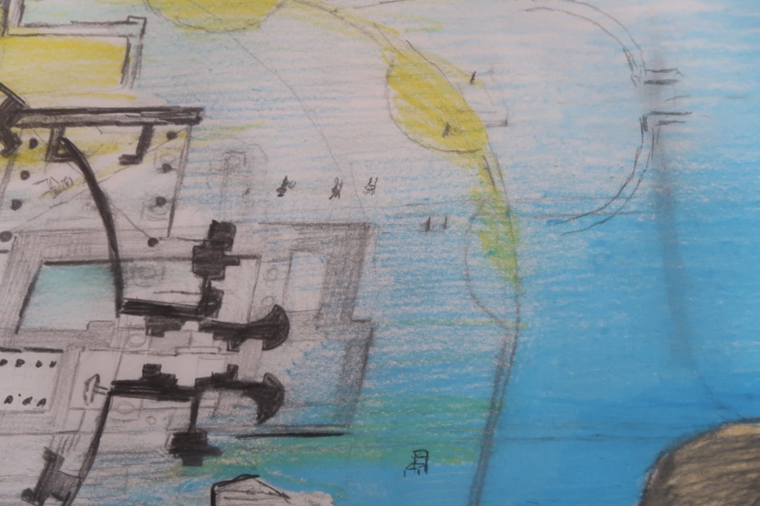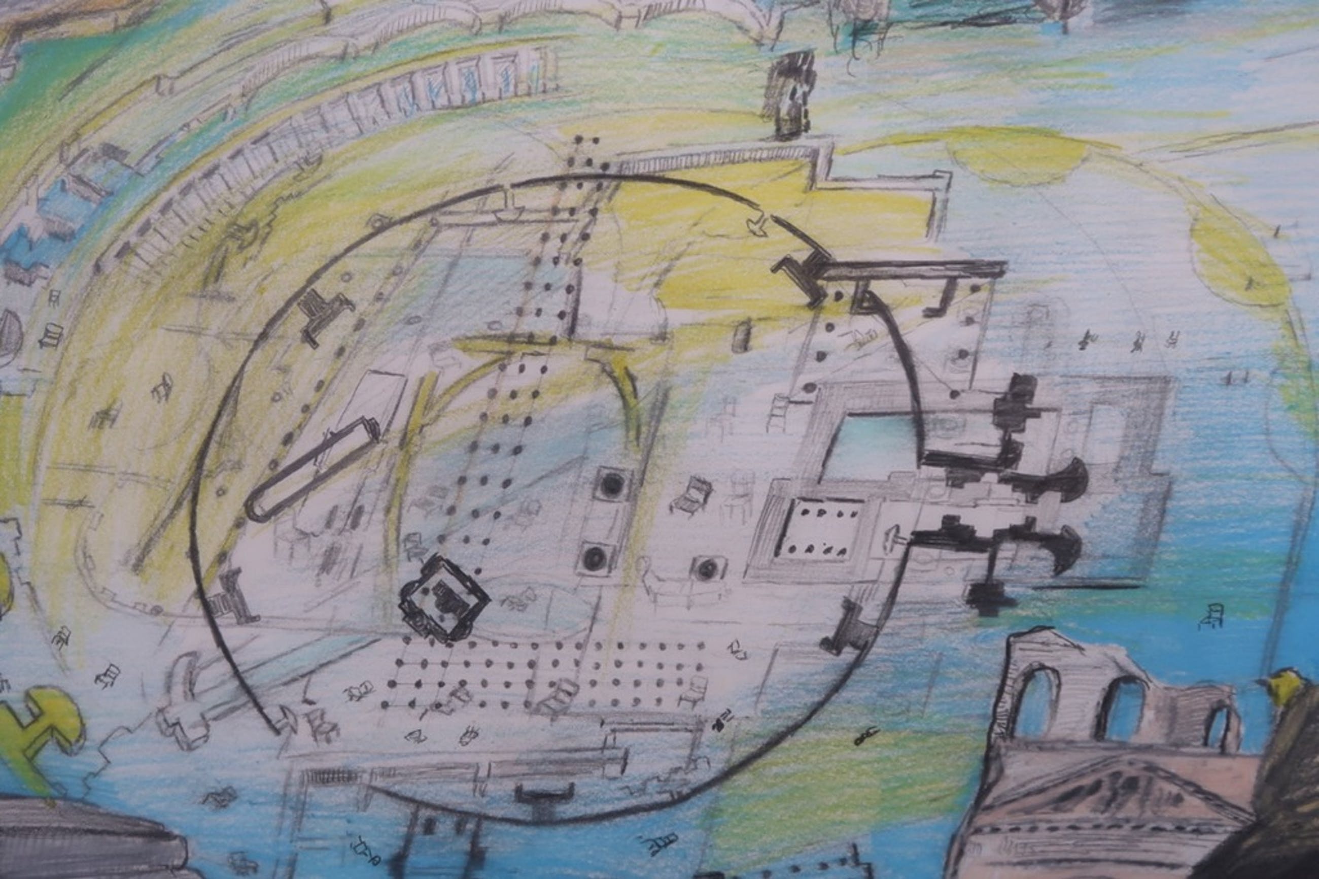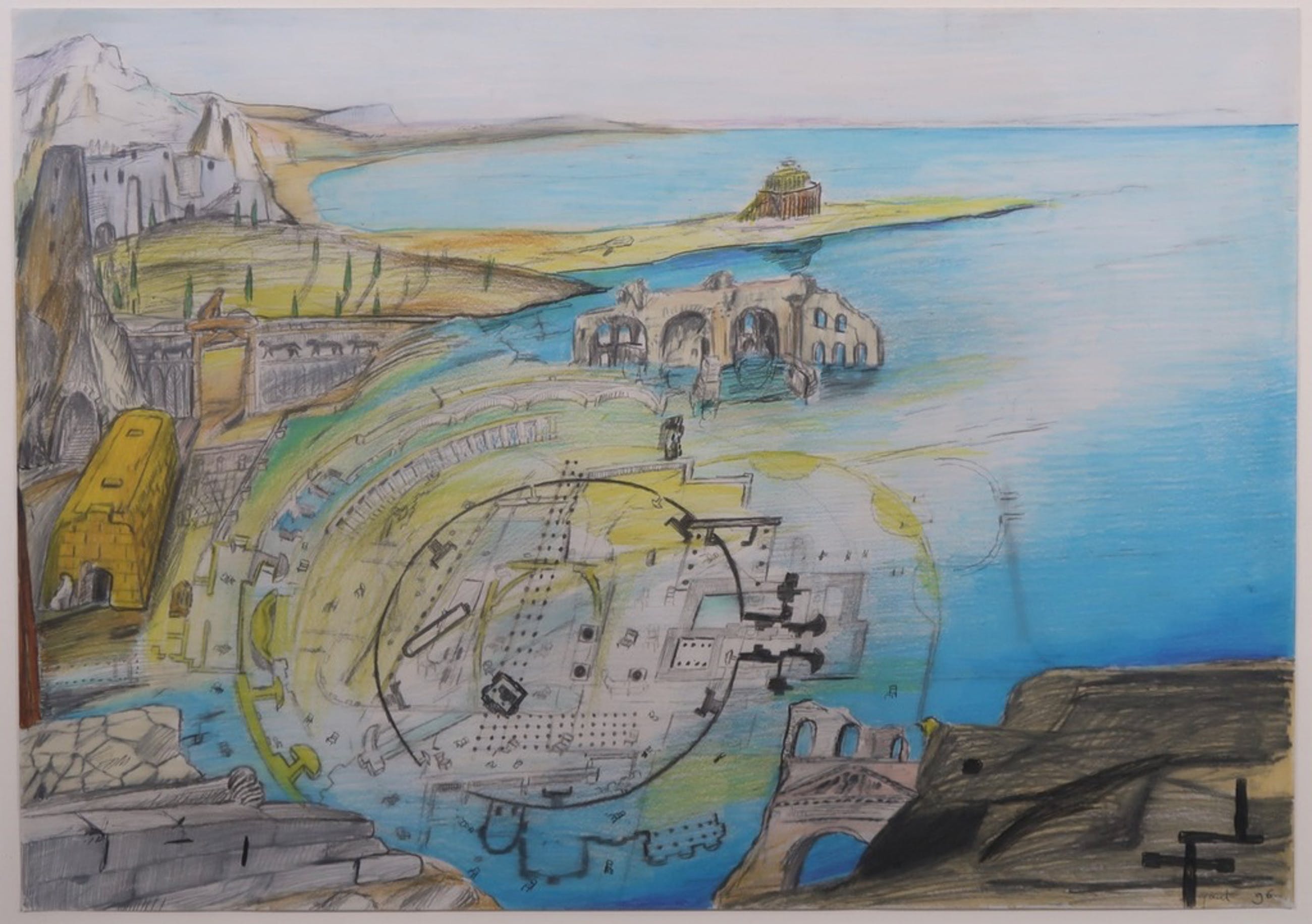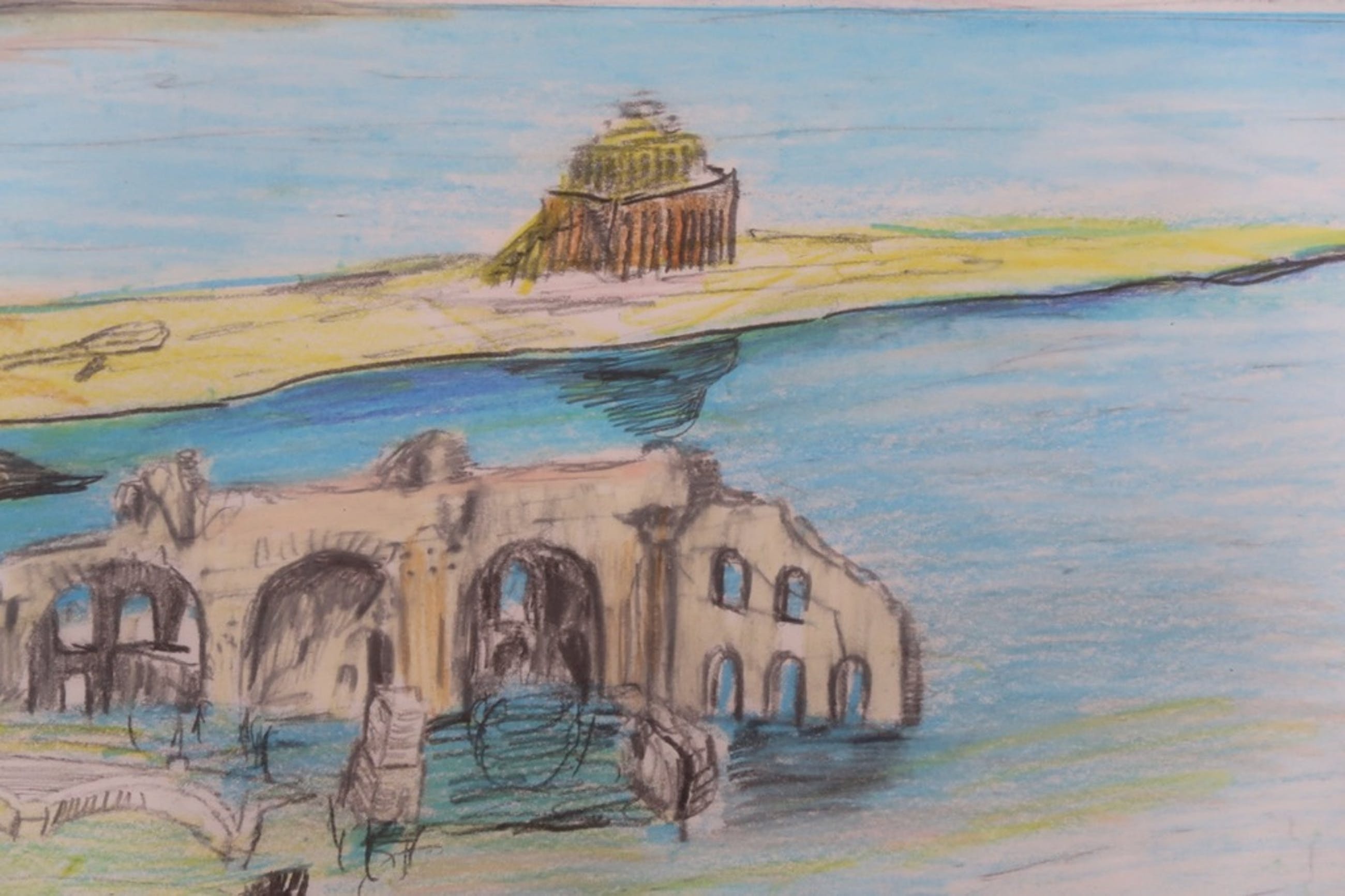 Titel: Honderden aangespoelde strandstoeltjes in een archeologisch labyrinth vlak onder de zeespiegel