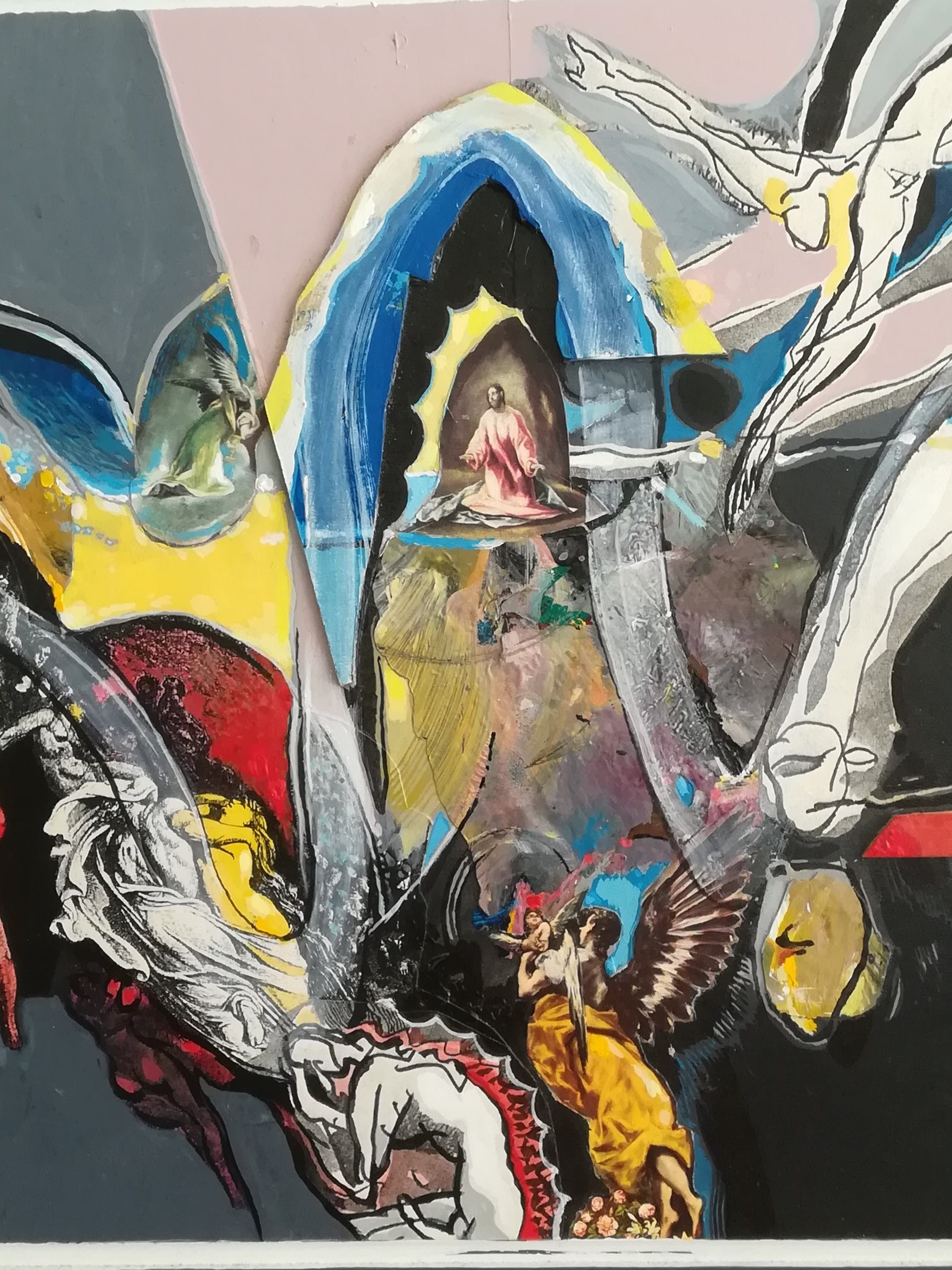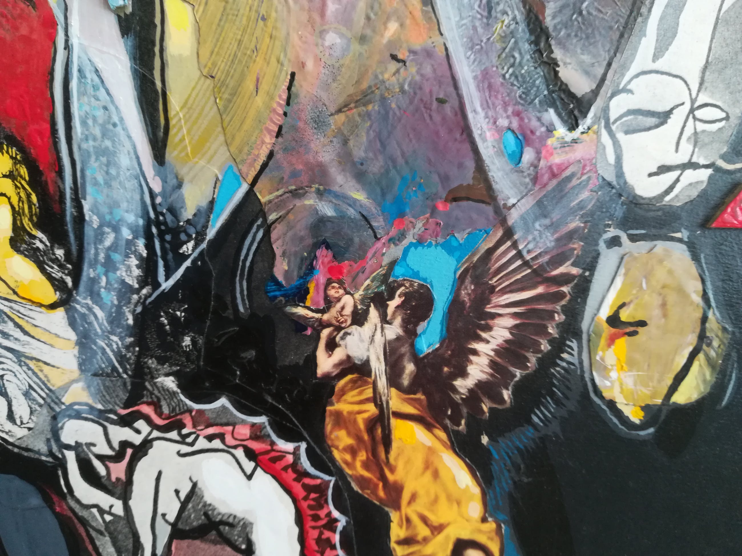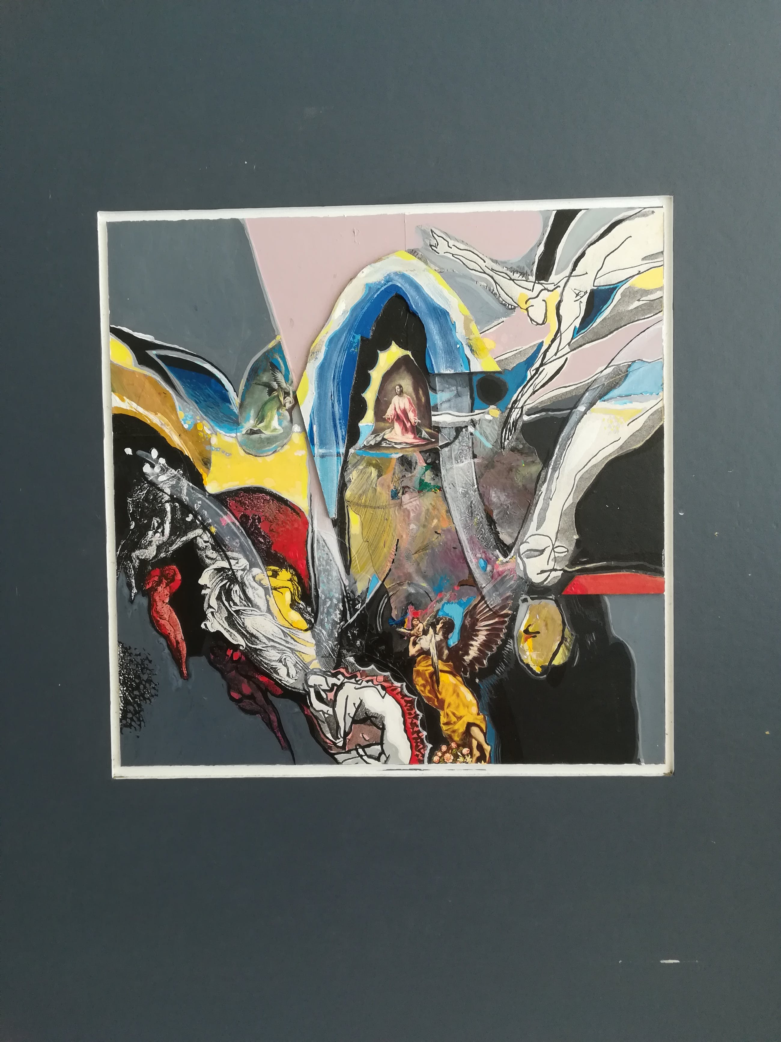 Collage, gemengde techniek op board. Origineel, uniek en onnavolgbaar.