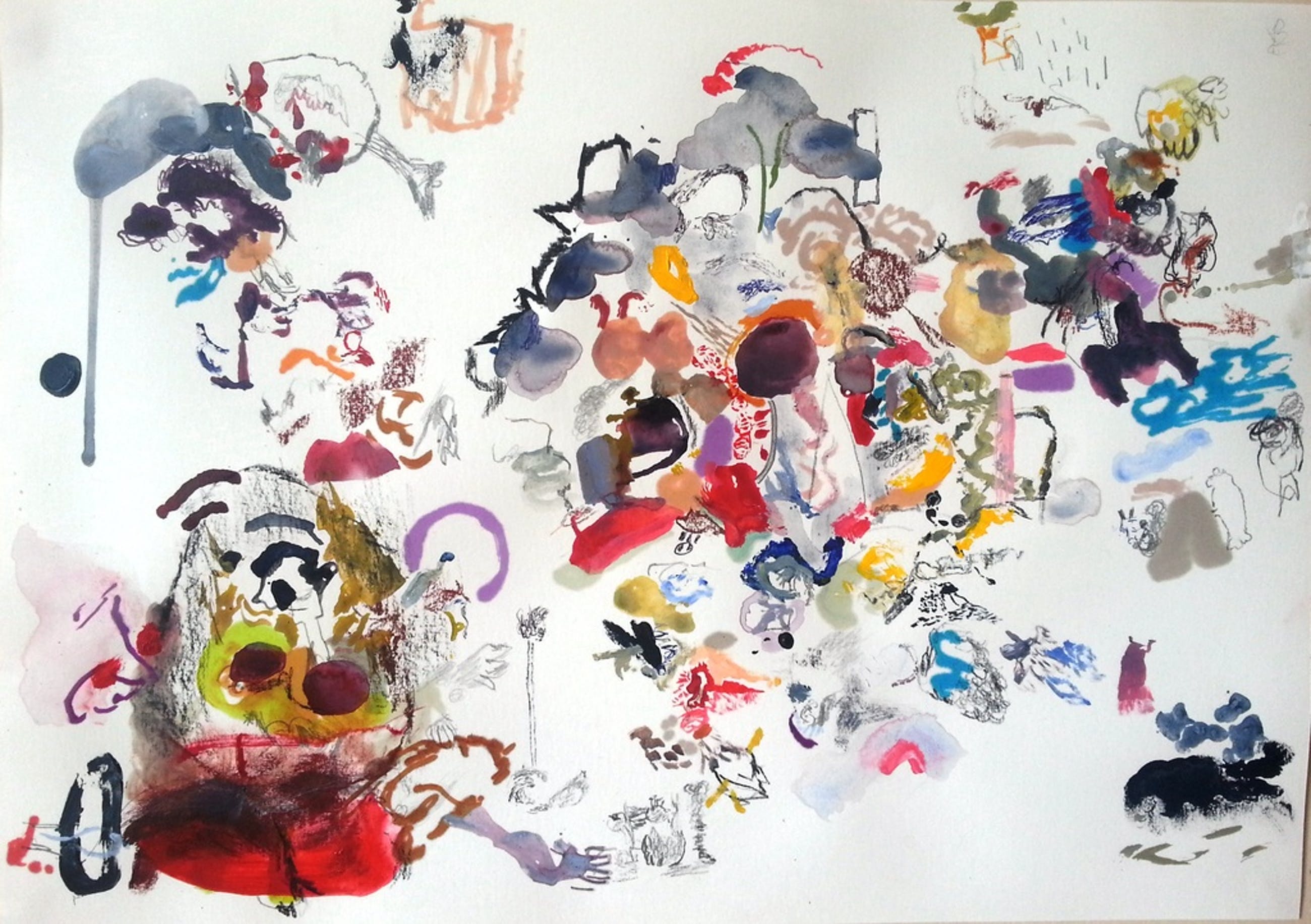 Materiaal: Acryl, potlood, conté, ballpoint op Schut PH neutraal, zuur-vrij, 180 g/m papier