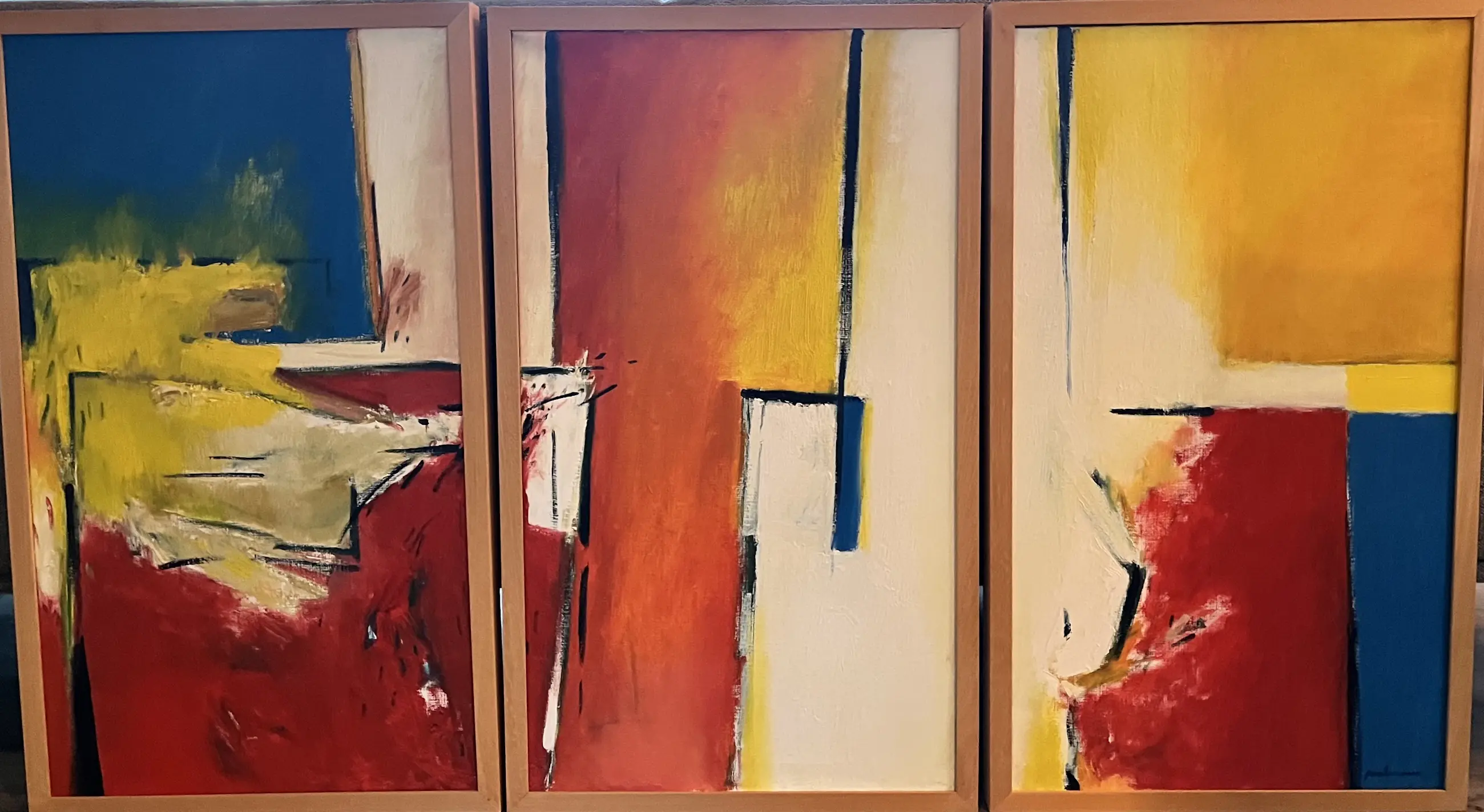 Een eye catcher. Zeer kleurrijk en expressief. Ik bied het aan omdat we veel kleiner zijn gaan wonen en ik geen goede plek kan vinden om het op te hangen. Doe het met pijn in het hart van de hand.