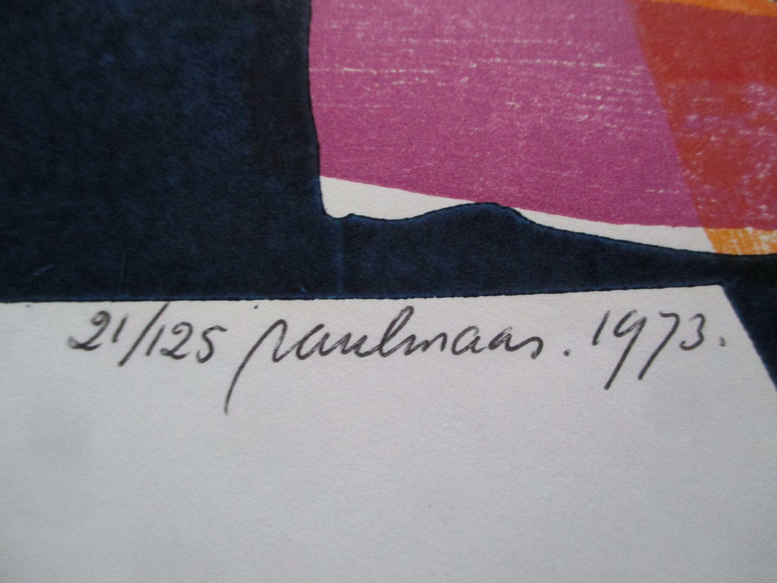 Houtsnede van Paul Maas, gesigneerd, gedateerd en genummerd in pen> Verzending tussen twee platen, 9,25, aangetekend 11,20