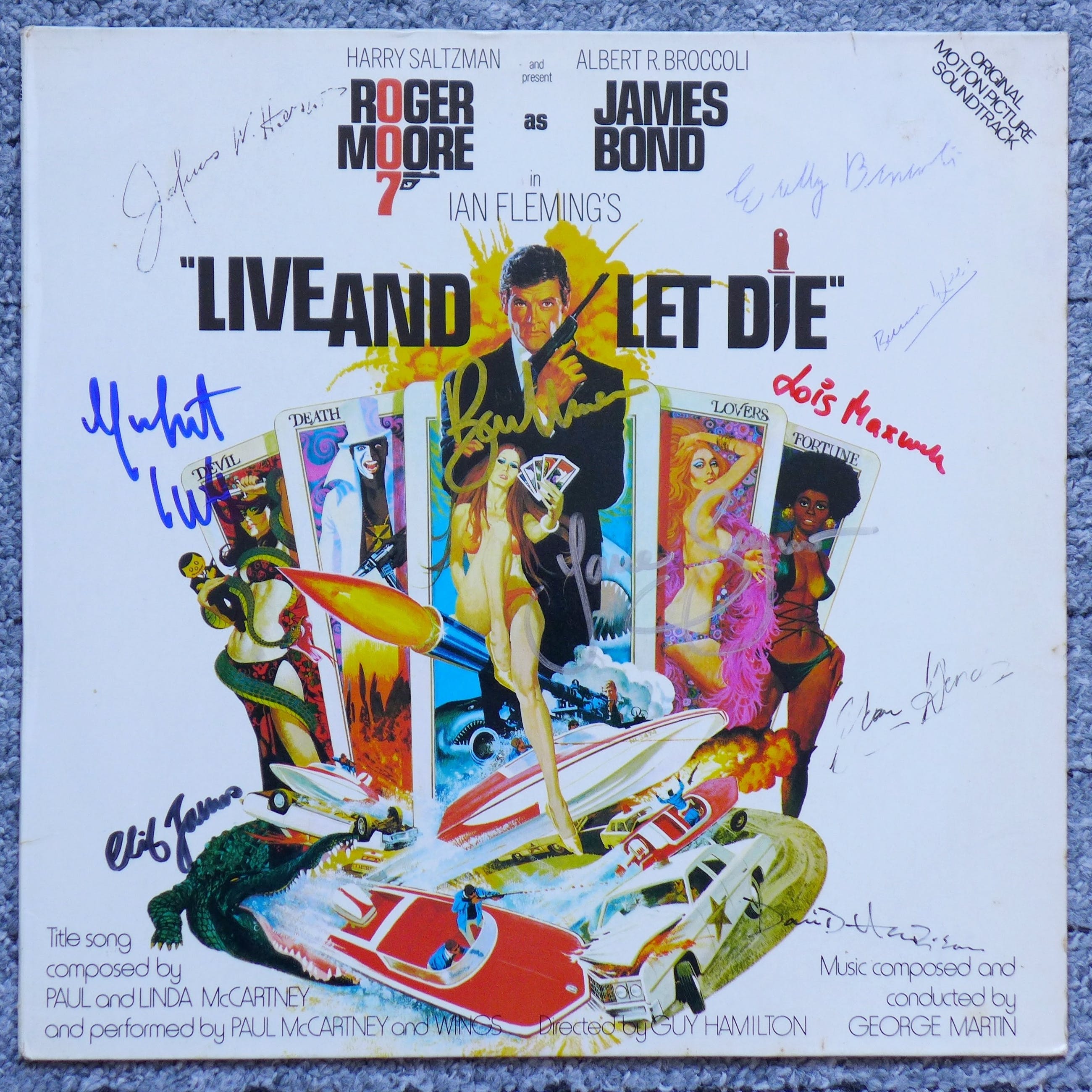 Gesigneerd door op de omslag Roger Moore Jane Seymour Lois Maxwell Bernard Lee Yaphet Kotto Clifton James Julius W. Harris David Hedison en twee andere acteurs