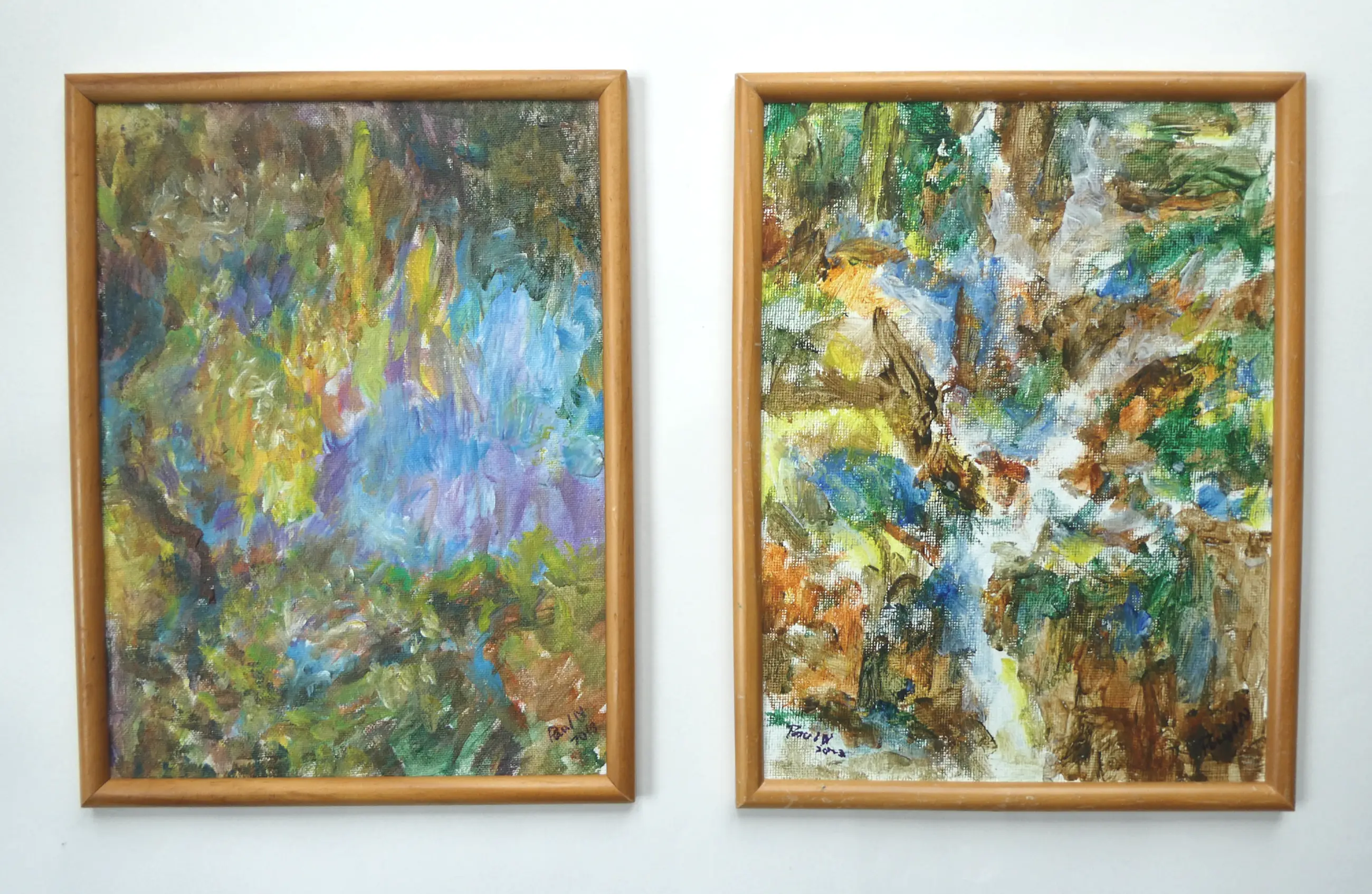 De twee impressionistische werkjes zijn ingelijst met een hangsysteem.
