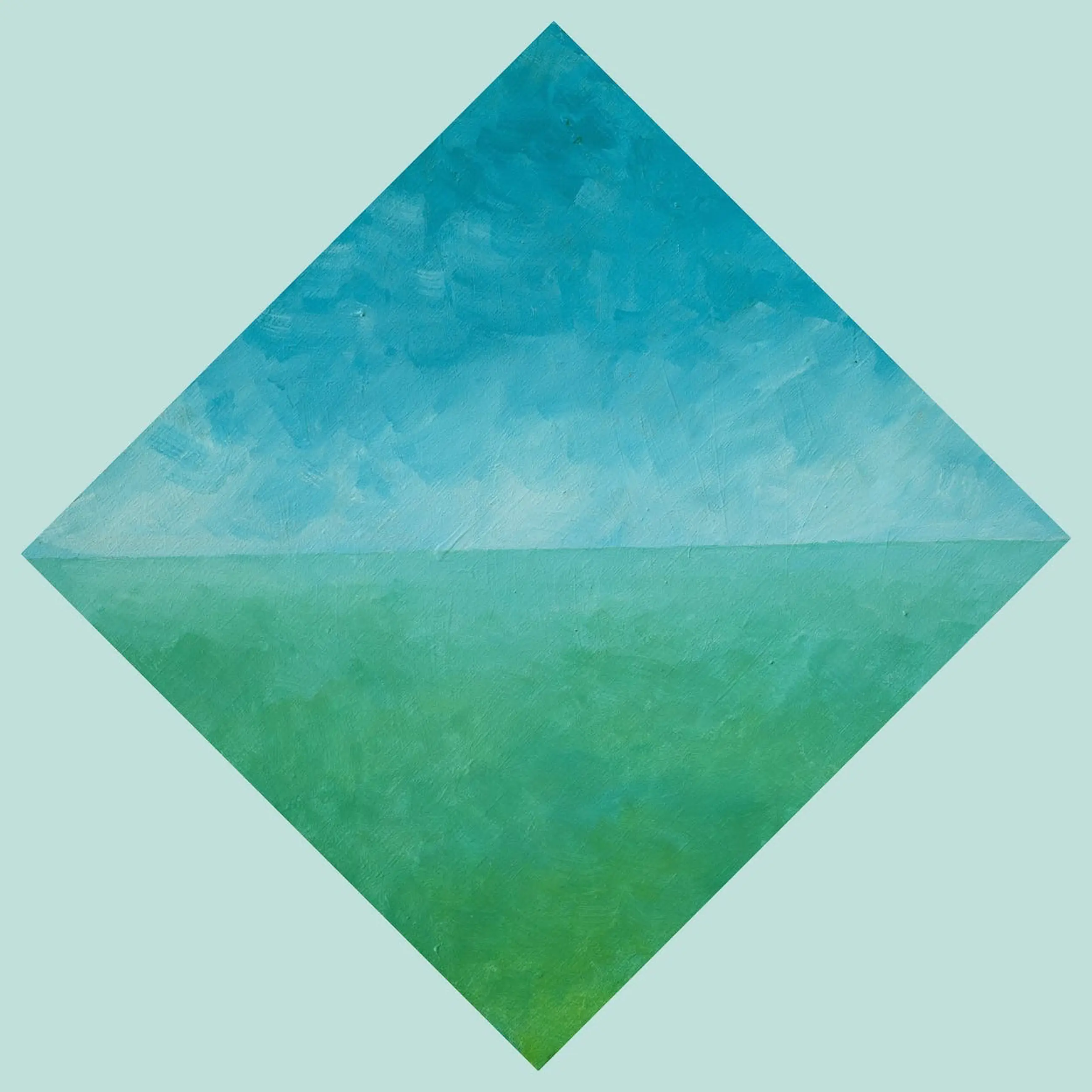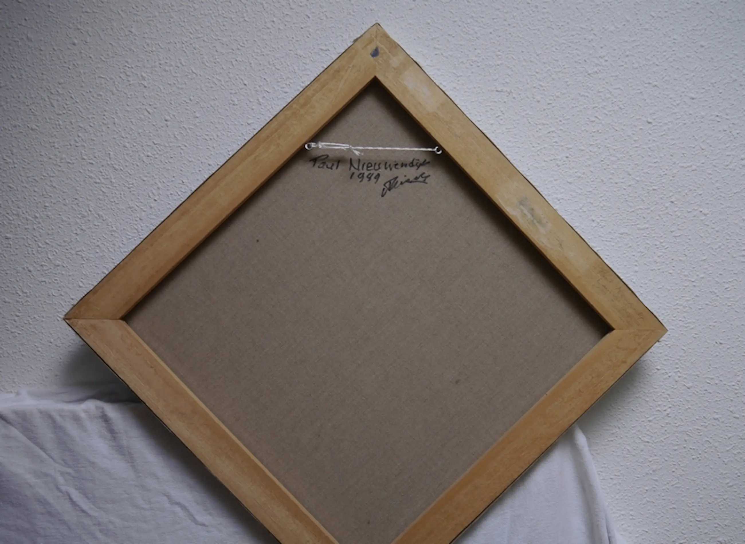 Rond de eeuwwisseling schilderde Paul Nieuwendijk een aantal minimalistische schilderijen. Vaak abstract, dit schilderij geeft een weidelandschap op een unieke manier weer. Door de minimalistische benadering, de manier van schilderen, het minimalistische kleuren gebruik en door een hoek van het schilderij als hoogste punt te nemen geeft dit werk de desolate uitgestrektheid van deze lege weide goed weer. Op kwaliteit canvas.