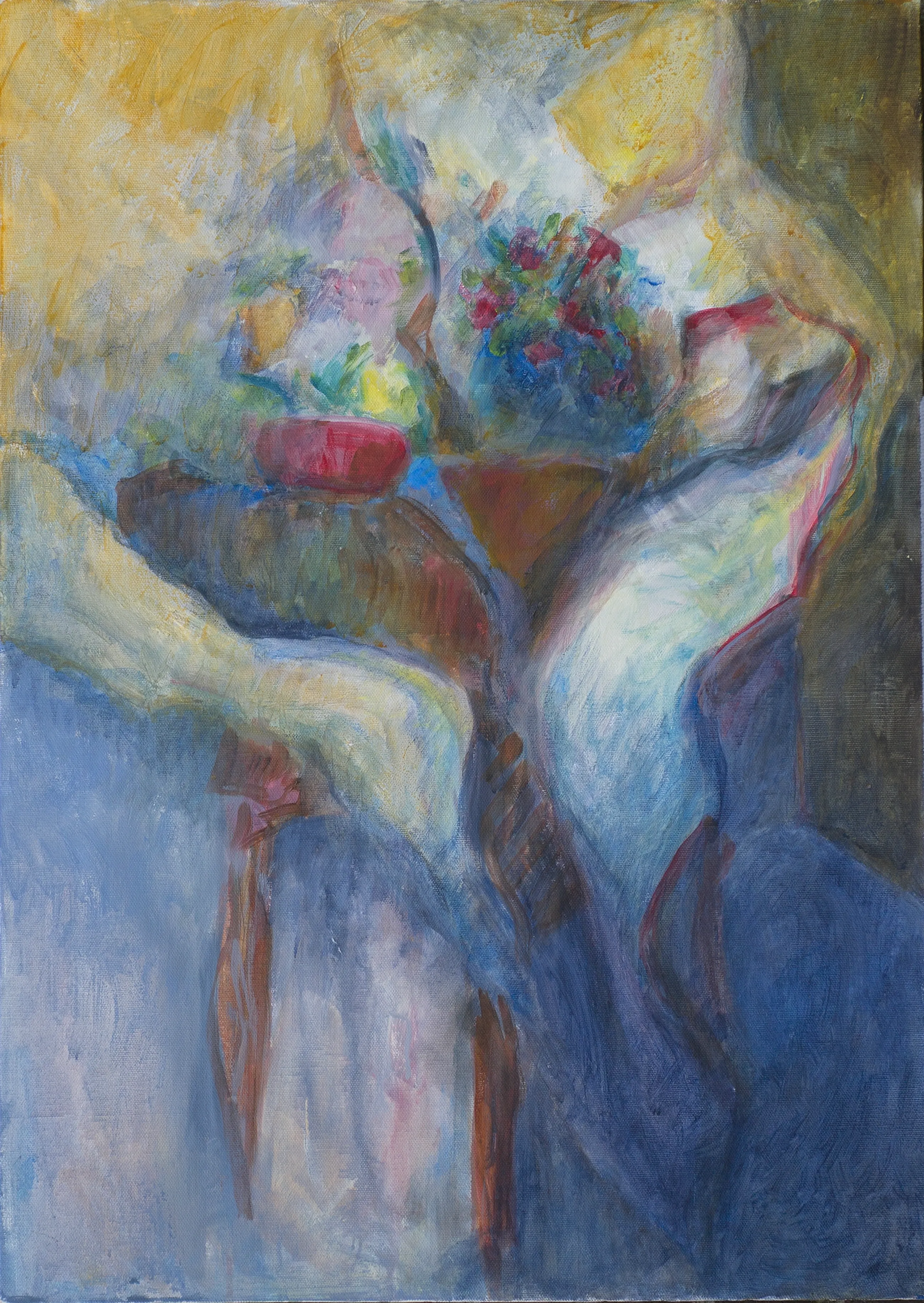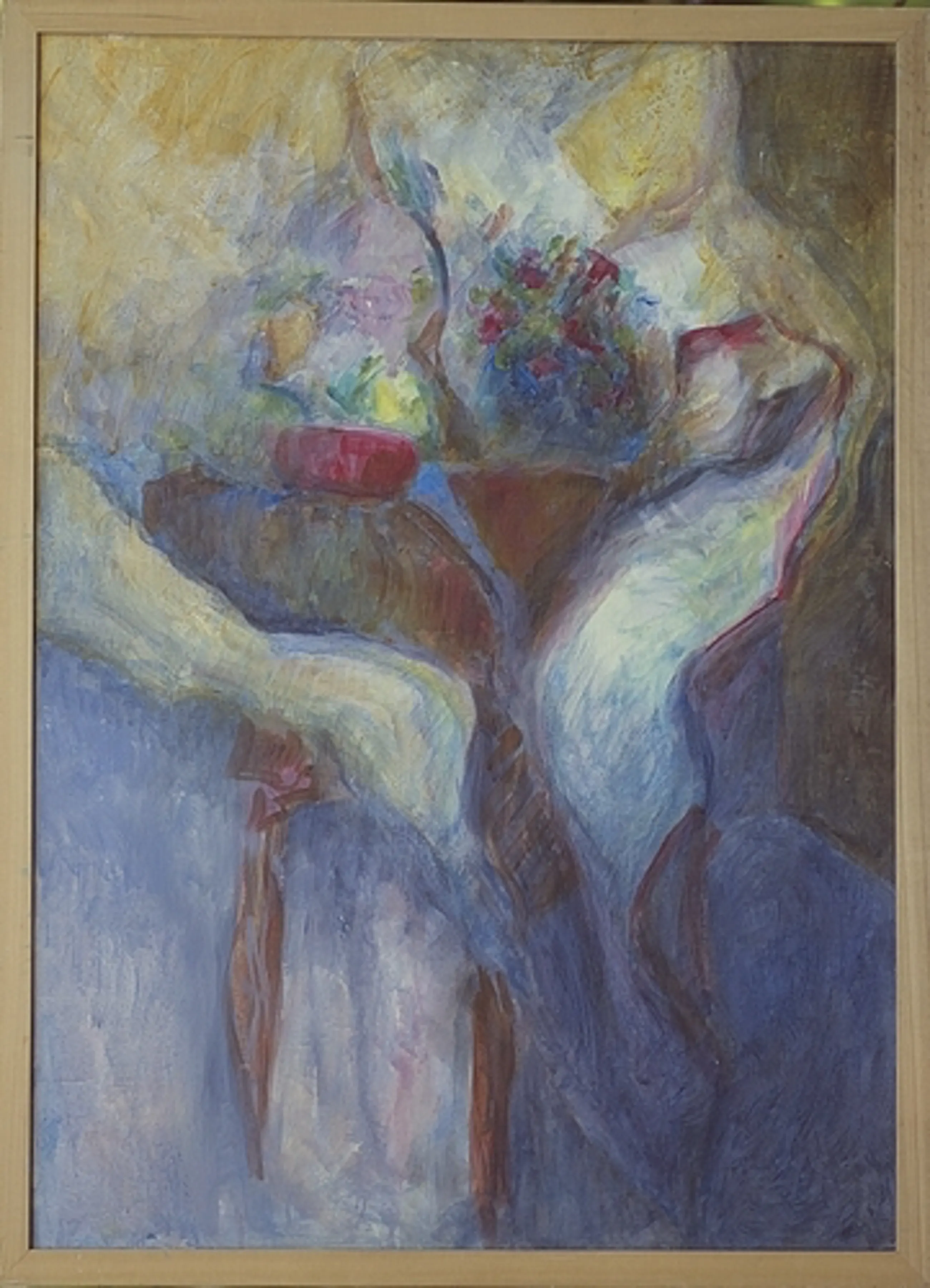 van 1980-1995 de zogenaamde tafelcomposities. Hij maakte schilderijen en grafiek van dit onderwerp. Dit schilderij is dus uit het eind van die periode. Het kunstwerk is op de achterzijde met de hand gesigneerd.