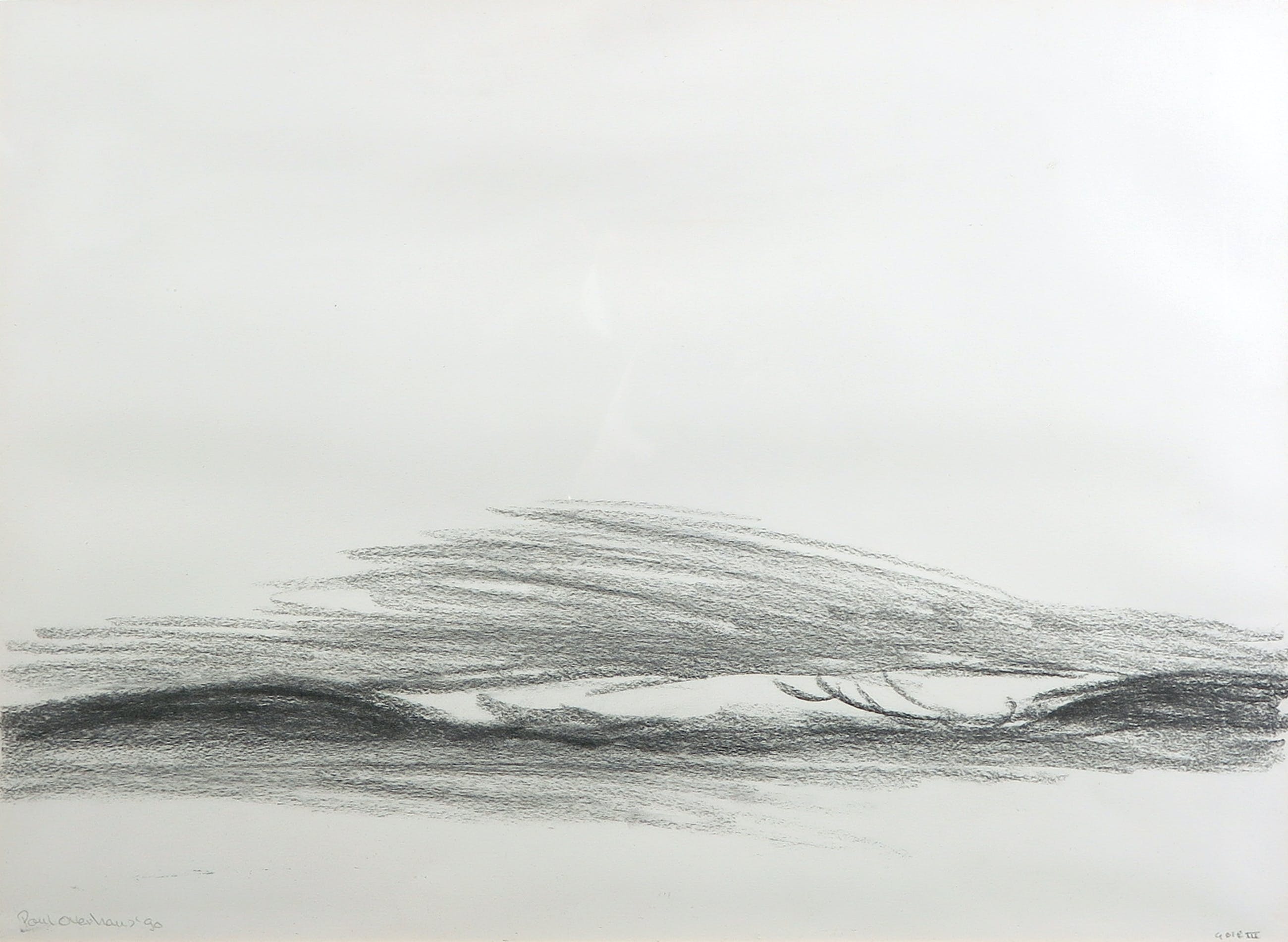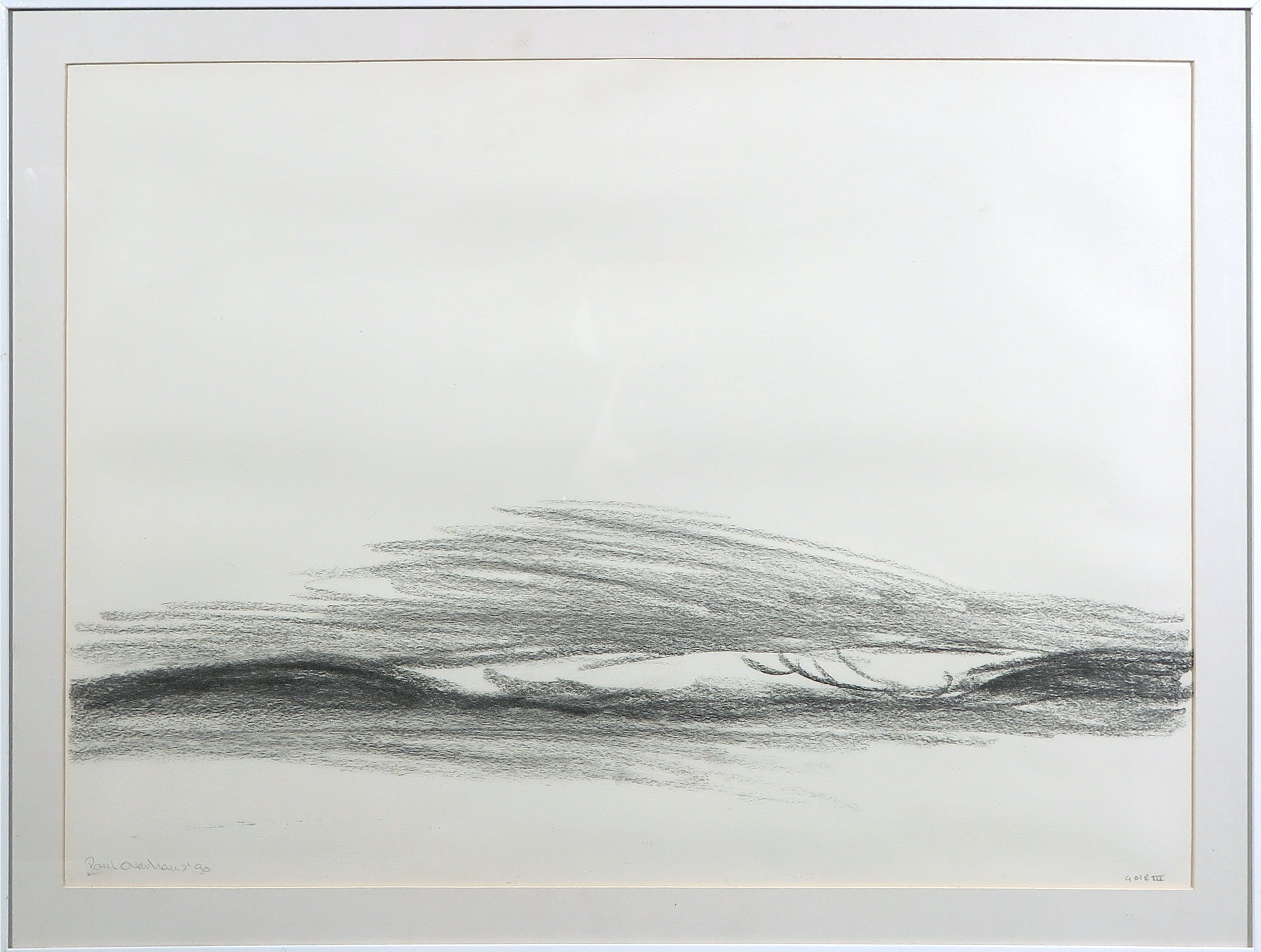 Golf III, Houtskooltekening van een geabstraheerde golf in de branding van Paul Overhaus.