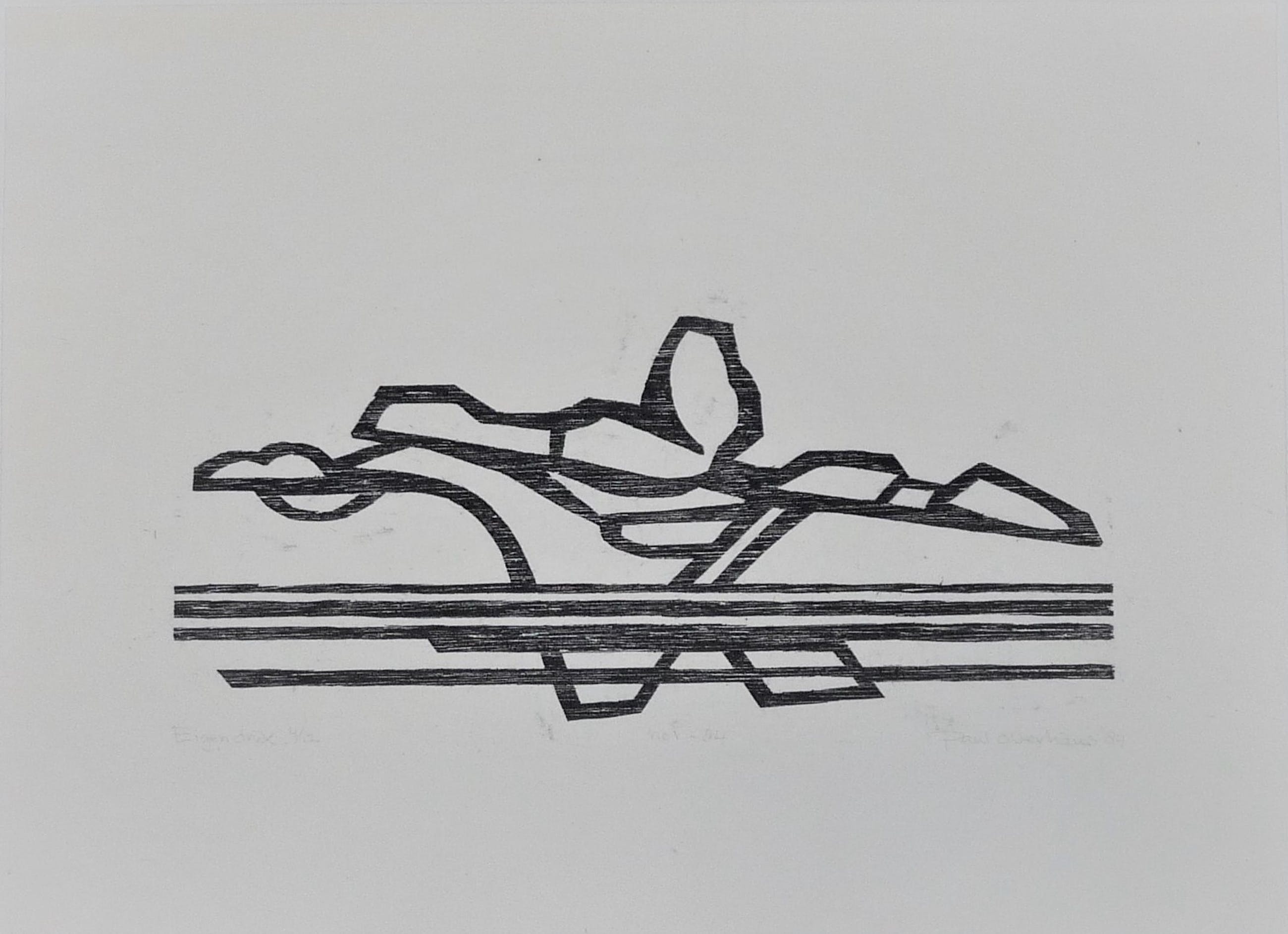 * Fraaie houtsnede op japans papier op dik papier verlijmd. Uitstekende verlijming door de kunstenaar gedaan of laten doen. * Druk in kleine oplage van slechts 12 exemplaren. Genummerd en gesigneerd. In potlood van links naar rechts: Eigen druk 4/12 - no.1 - 84 - Paul Overhaus '84