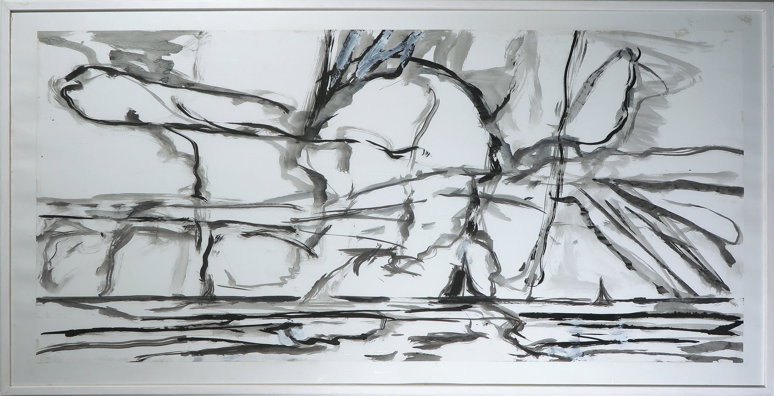 Het werk is zelf in zeer goede staat, met een paar gele (lijm) plekjes langs de randen van het blad. De inlijsting is aan vervanging toe en het plexiglas heeft meerdere beschadigingen, krassen, lijmresten en een barstje. | |