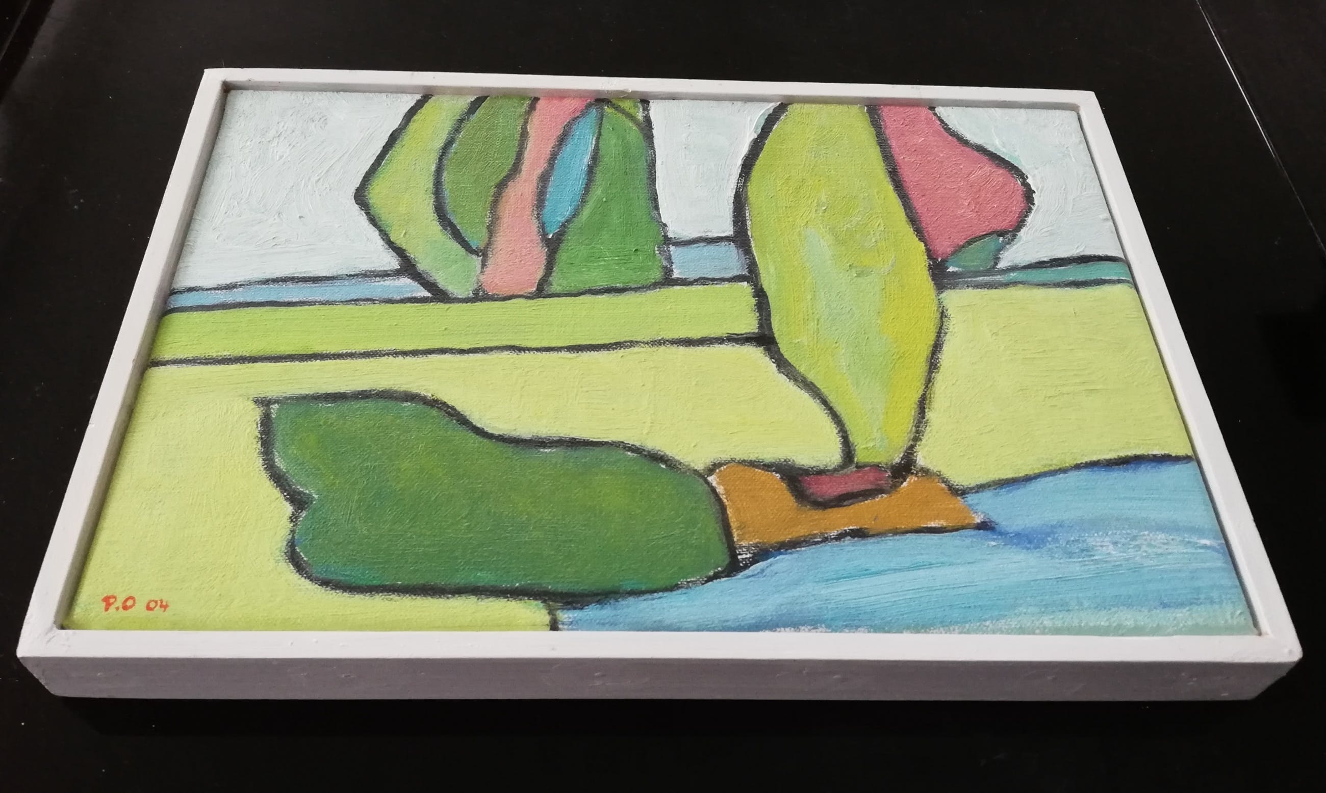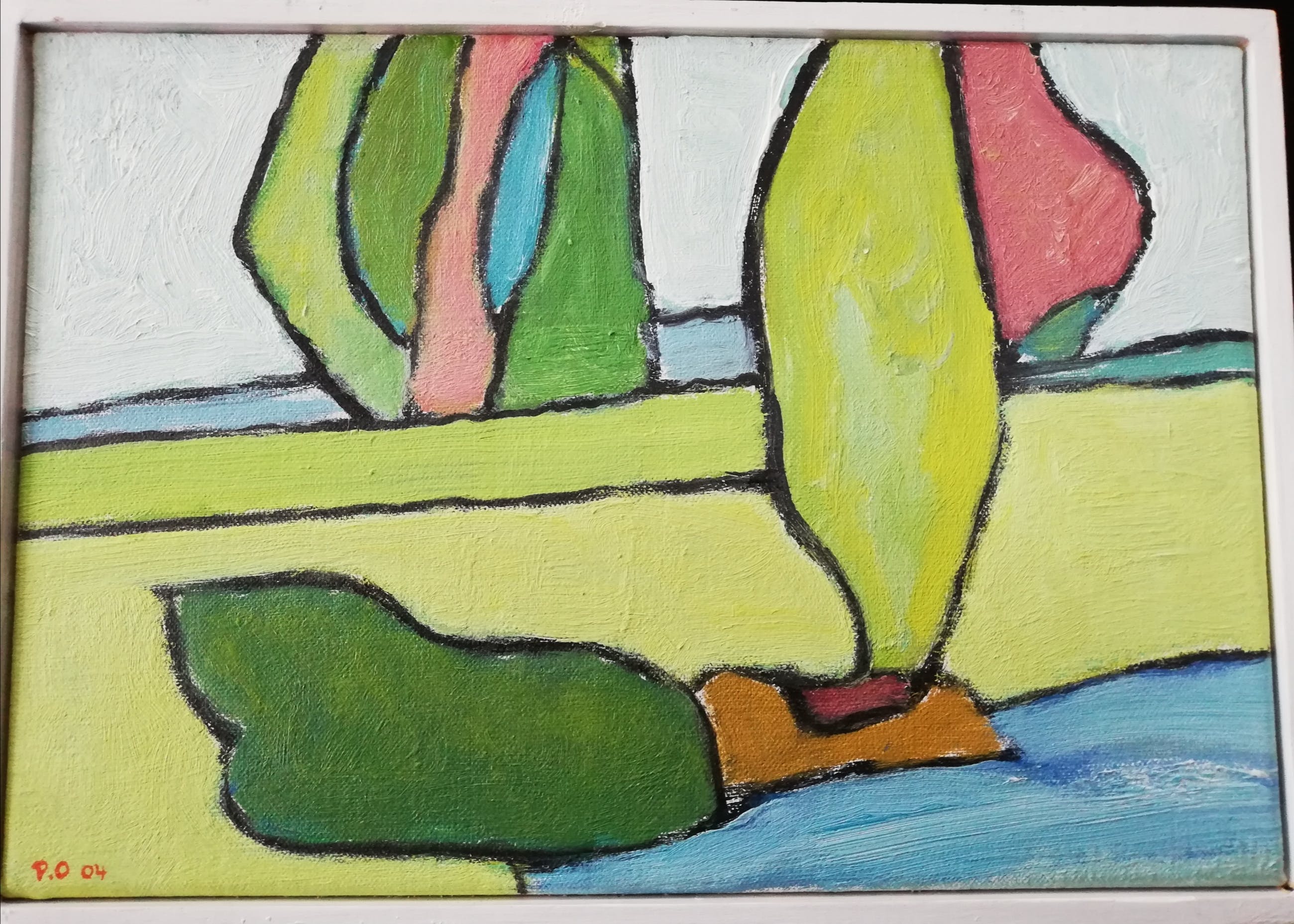 Fraai olieverfschilderij op canvas, door de kunstenaar voorzien van houten omlijsting. Handgesigneerd met initialen door Paul Overhaus.