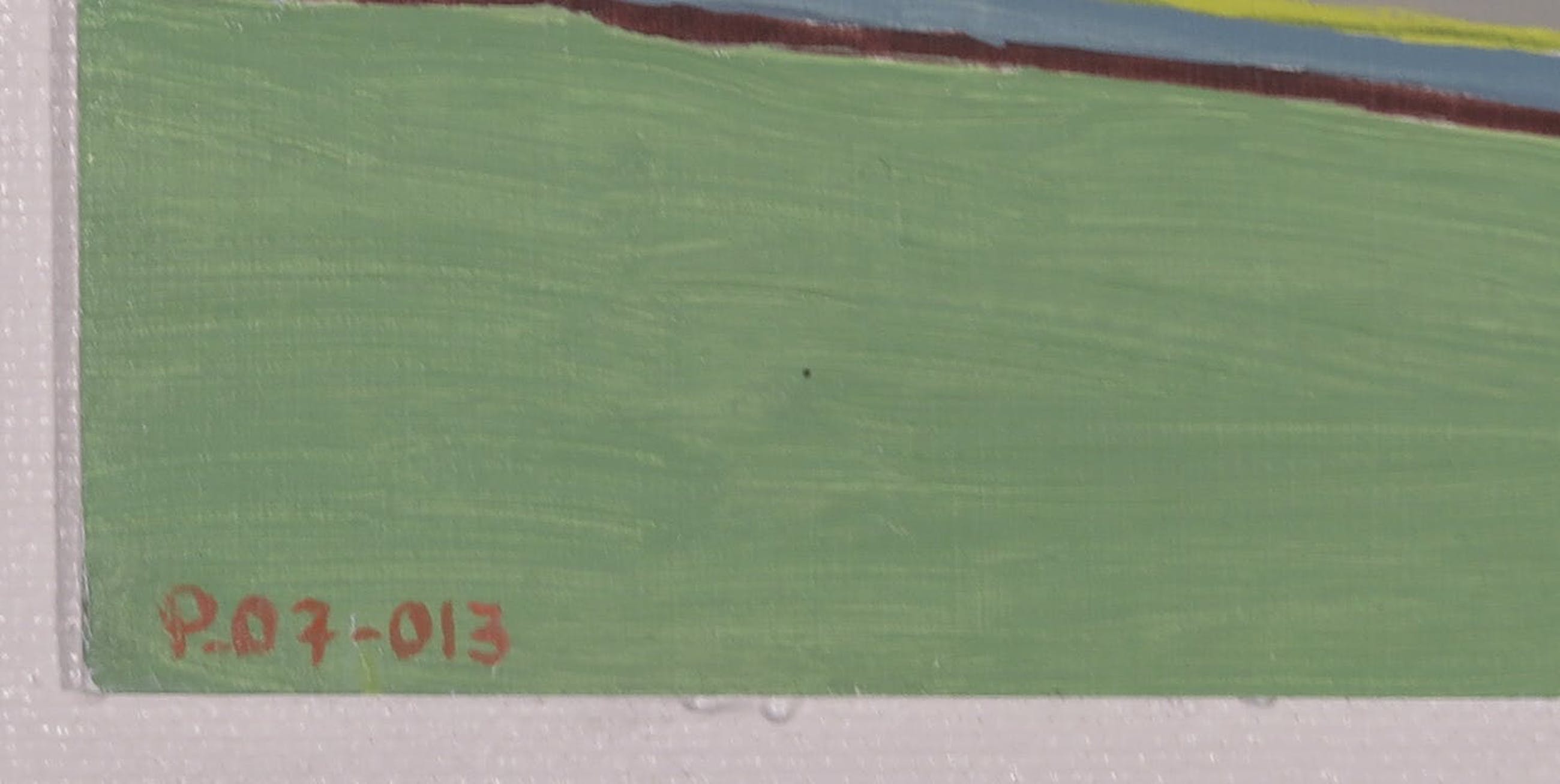 Het werk is bevestigd op een groter wit paneel met afmetingen: 36,5 x 49 cm