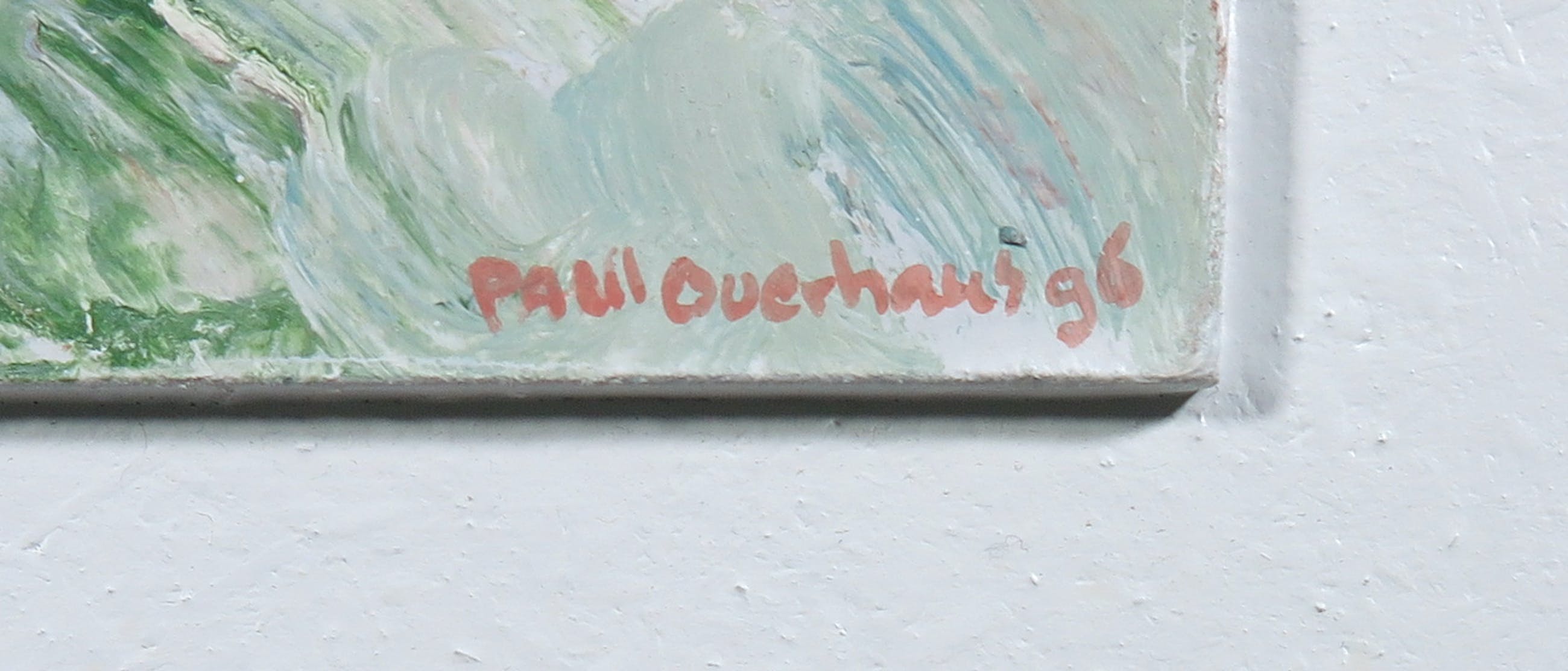 Het werk is geschilderd op board dat gelijmd is op MDF (zonder ophangsysteem).