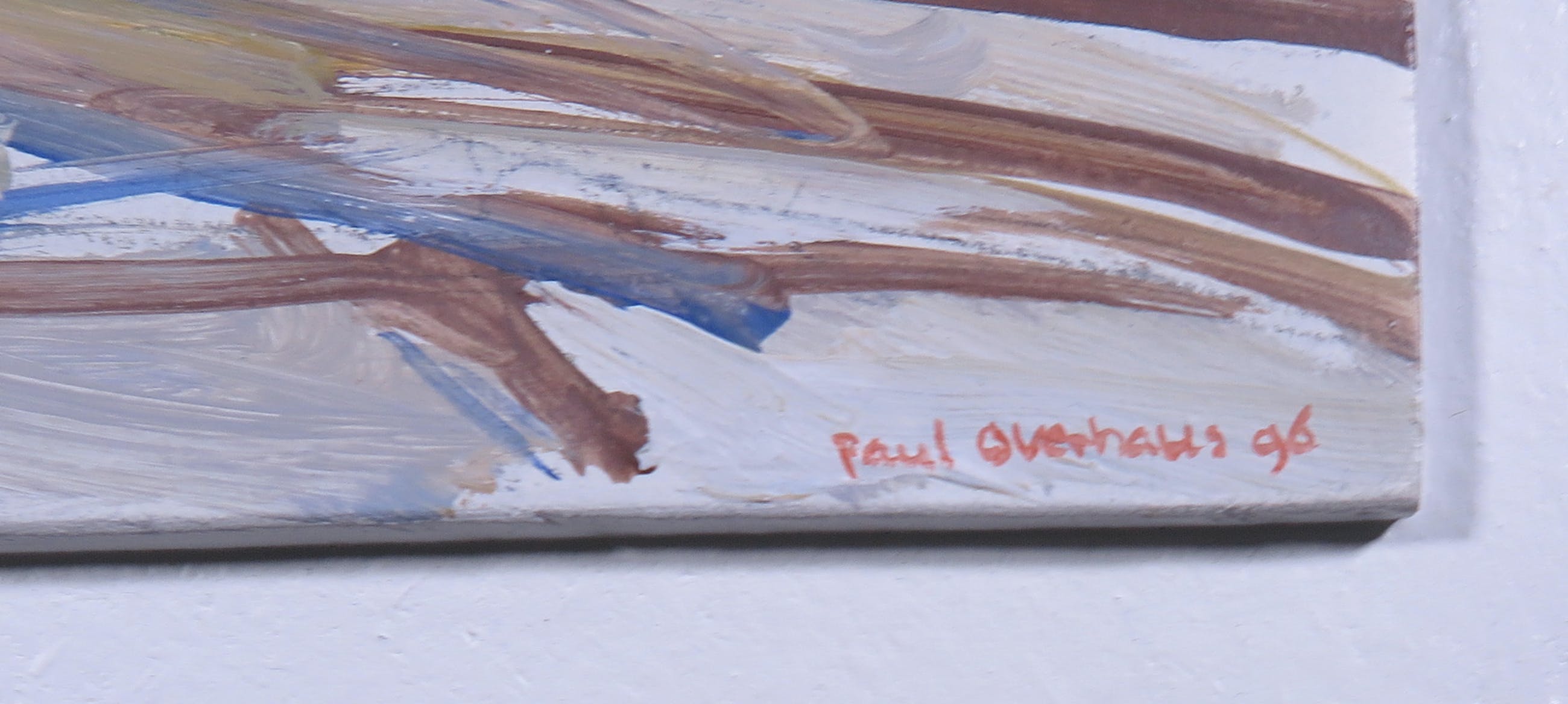 Het werk is geschilderd op board dat gelijmd is op MDF (zonder ophangsysteem).