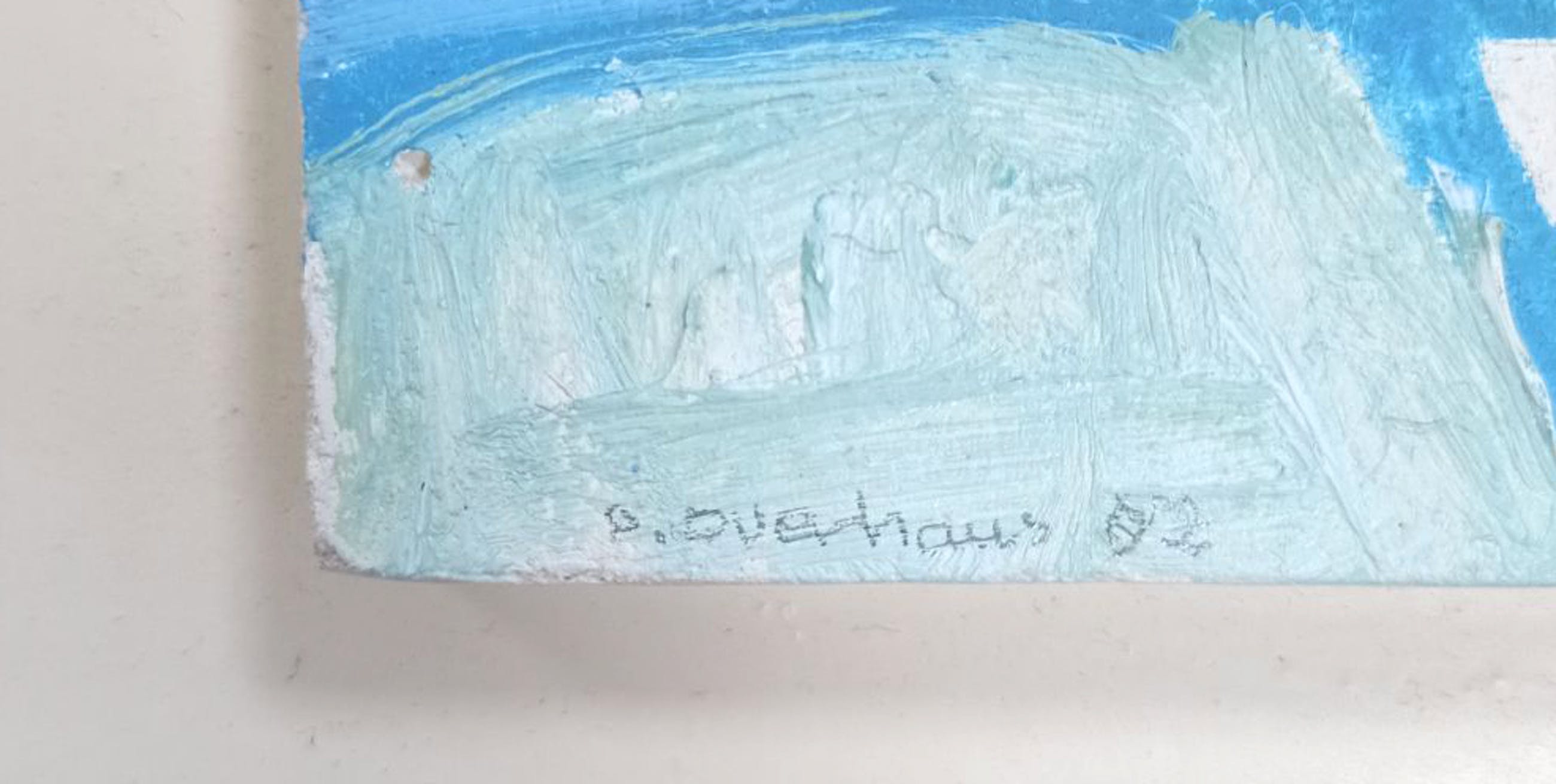 Het werk is geschilderd op board dat gelijmd is op MDF (met drie haakjes als ophangsysteem).