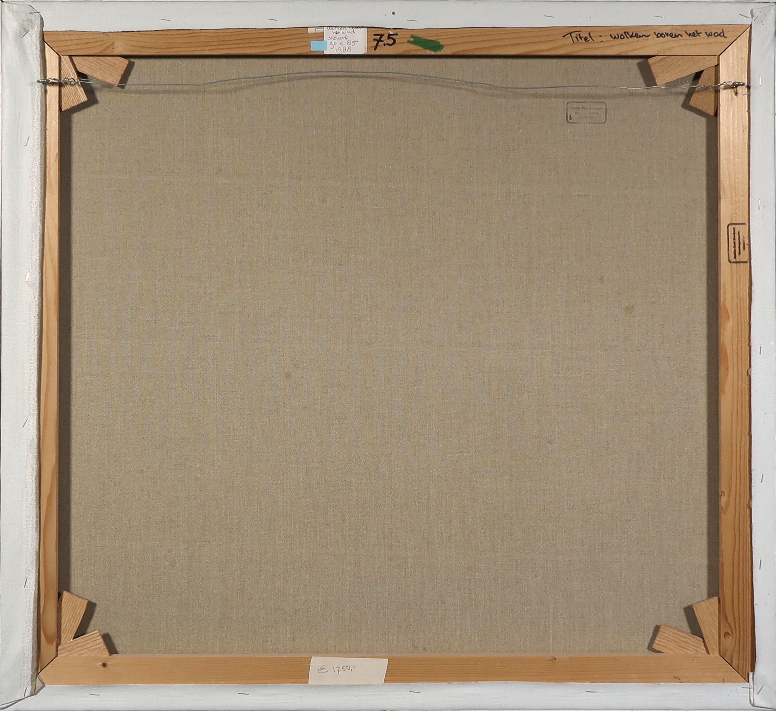 | Het werk is in goede staat. Het spieraam is lichtelijk kromgetrokken. Een lijstenmaker kan dit gemakkelijk herstellen. | |