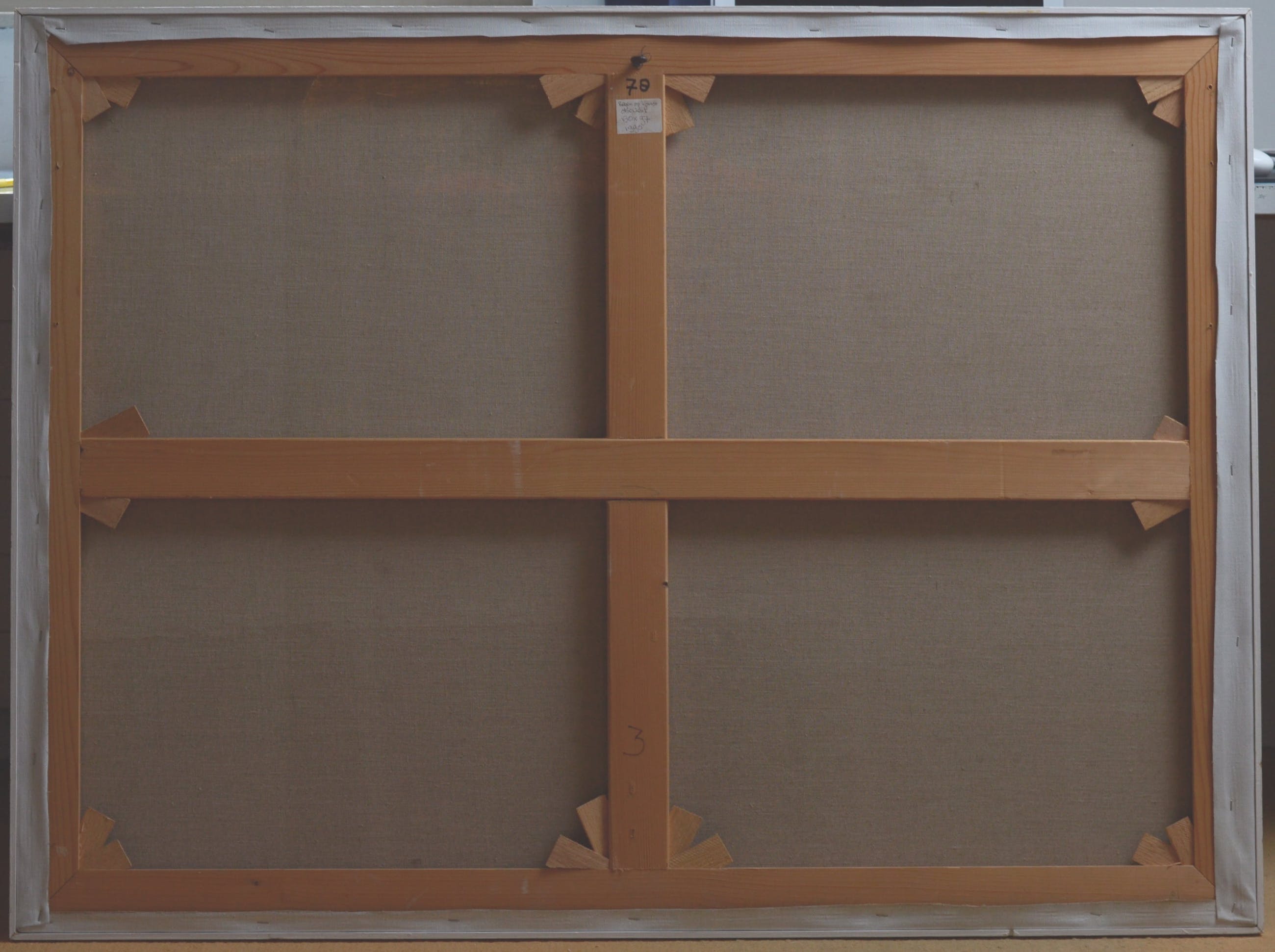 Schilderij zelf is in perfecte staat, verfhuid 100% in orde. De eenvoudige latjeslijst is in goede staat.