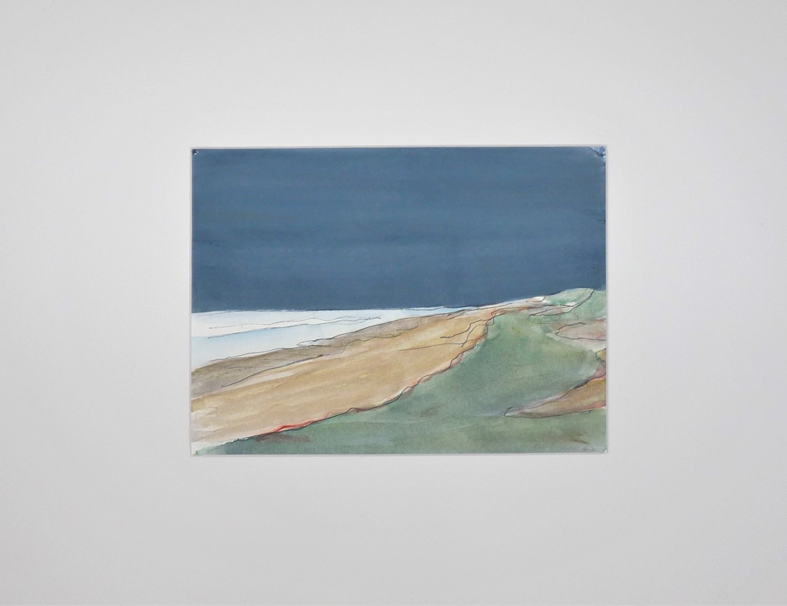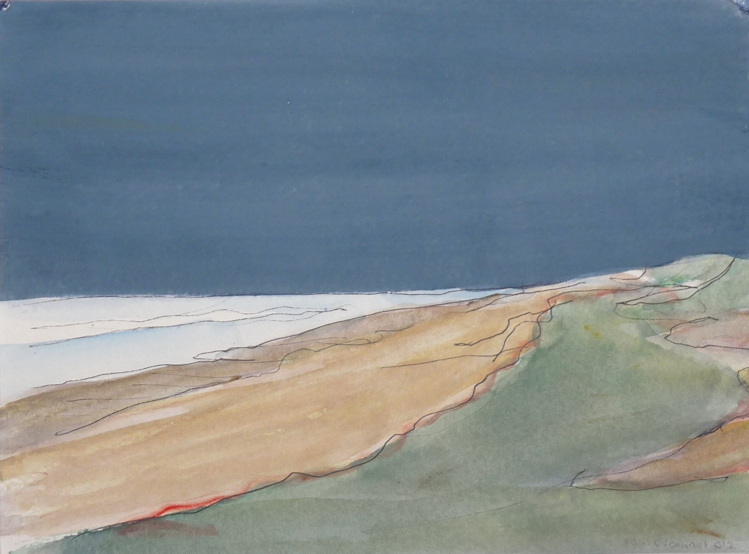 *Fraaie aquarel van een zee /strandgezicht met enkele pen-en inkt lijnen van de kunstenaar Paul Overhaus. *R.0. gesigneerd en gedateerd in potlood met : Paul Overhaus 012