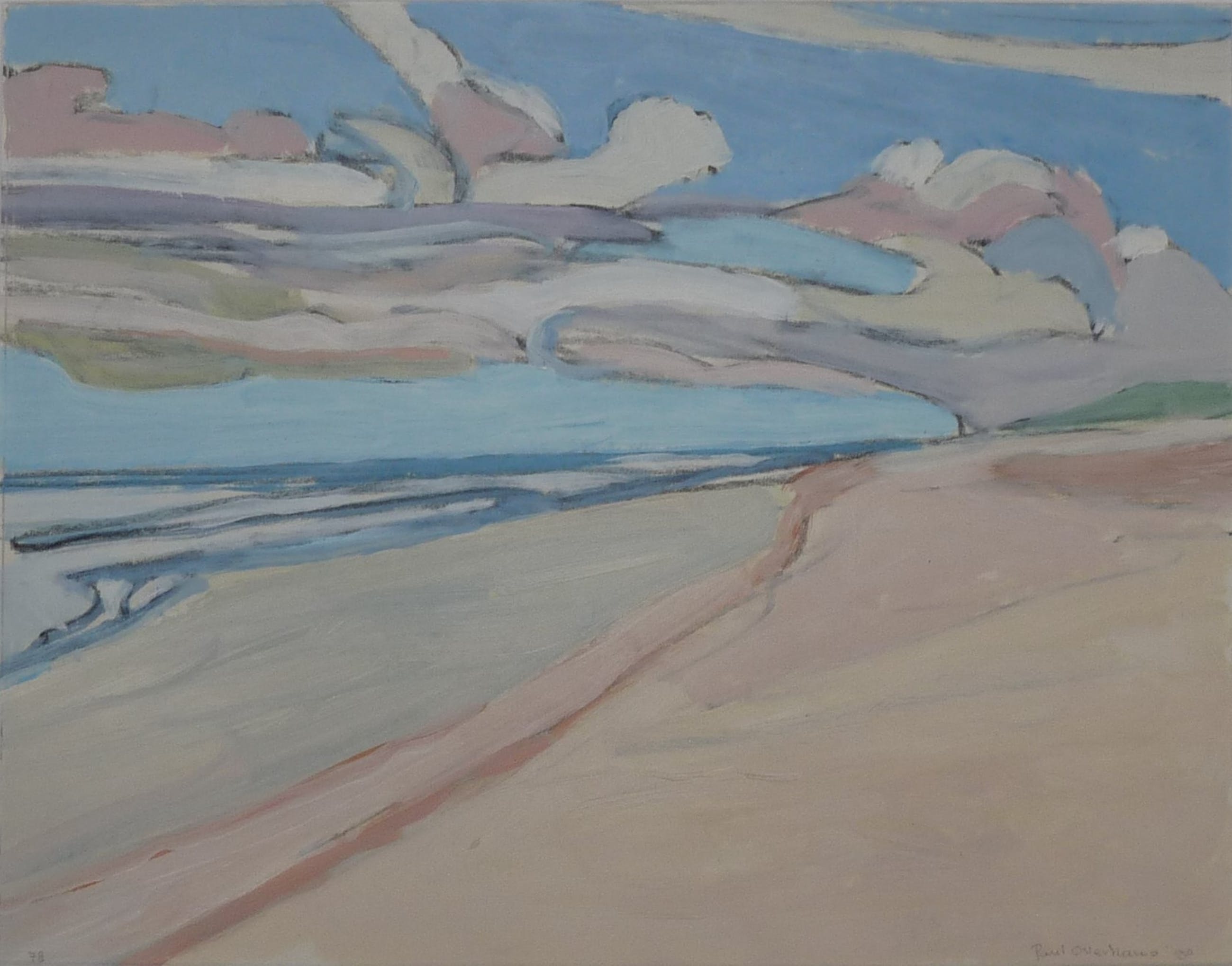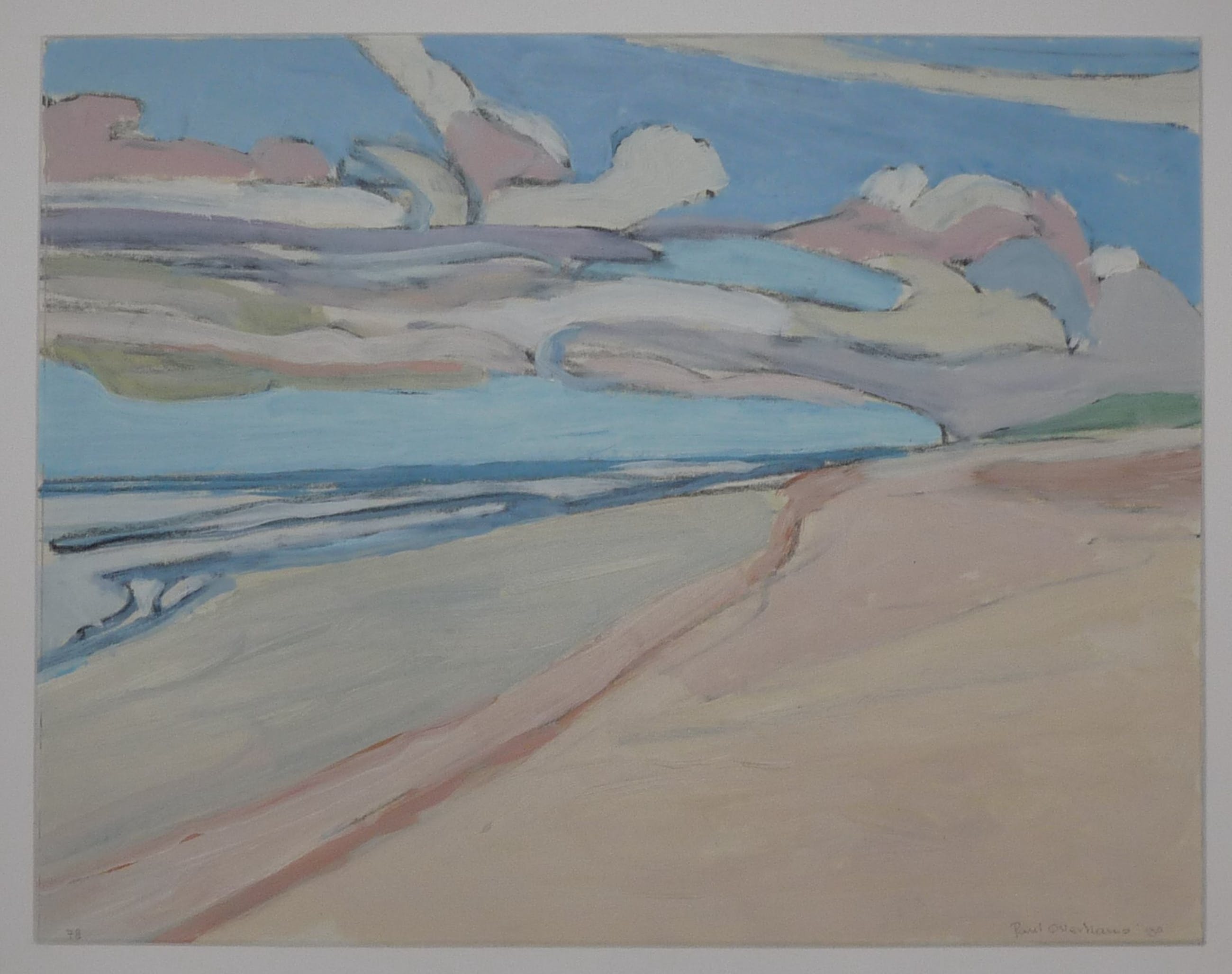 *Fraai geschilderd strand/zeegezicht van de kunstenaar Paul Overhaus. *R.0. gesigneerd en gedateerd in potlood met : Paul Overhaus '90