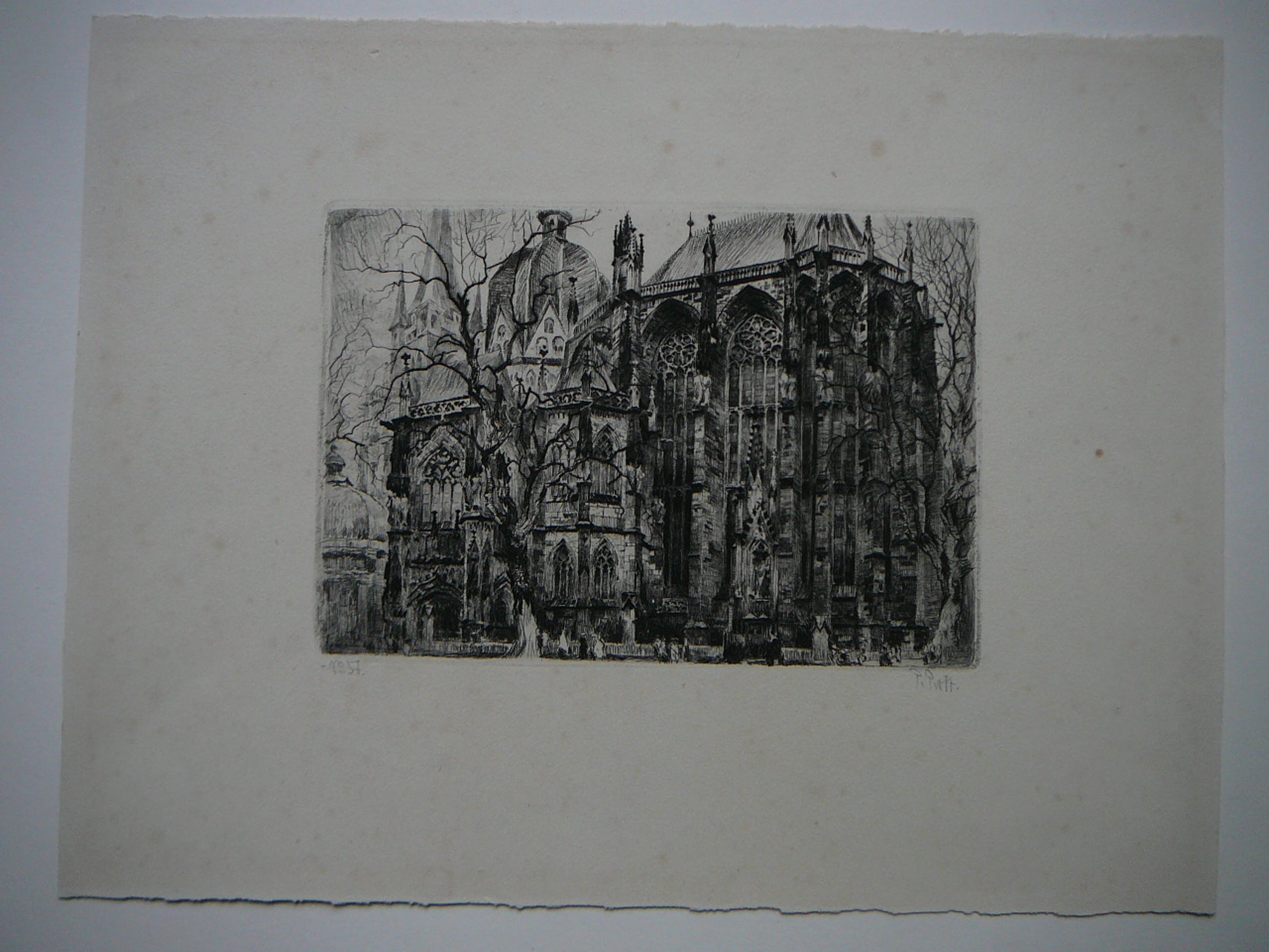 Zeer mooie originele ets van Paul Prott Dom (waarschijnlijk van Aken )