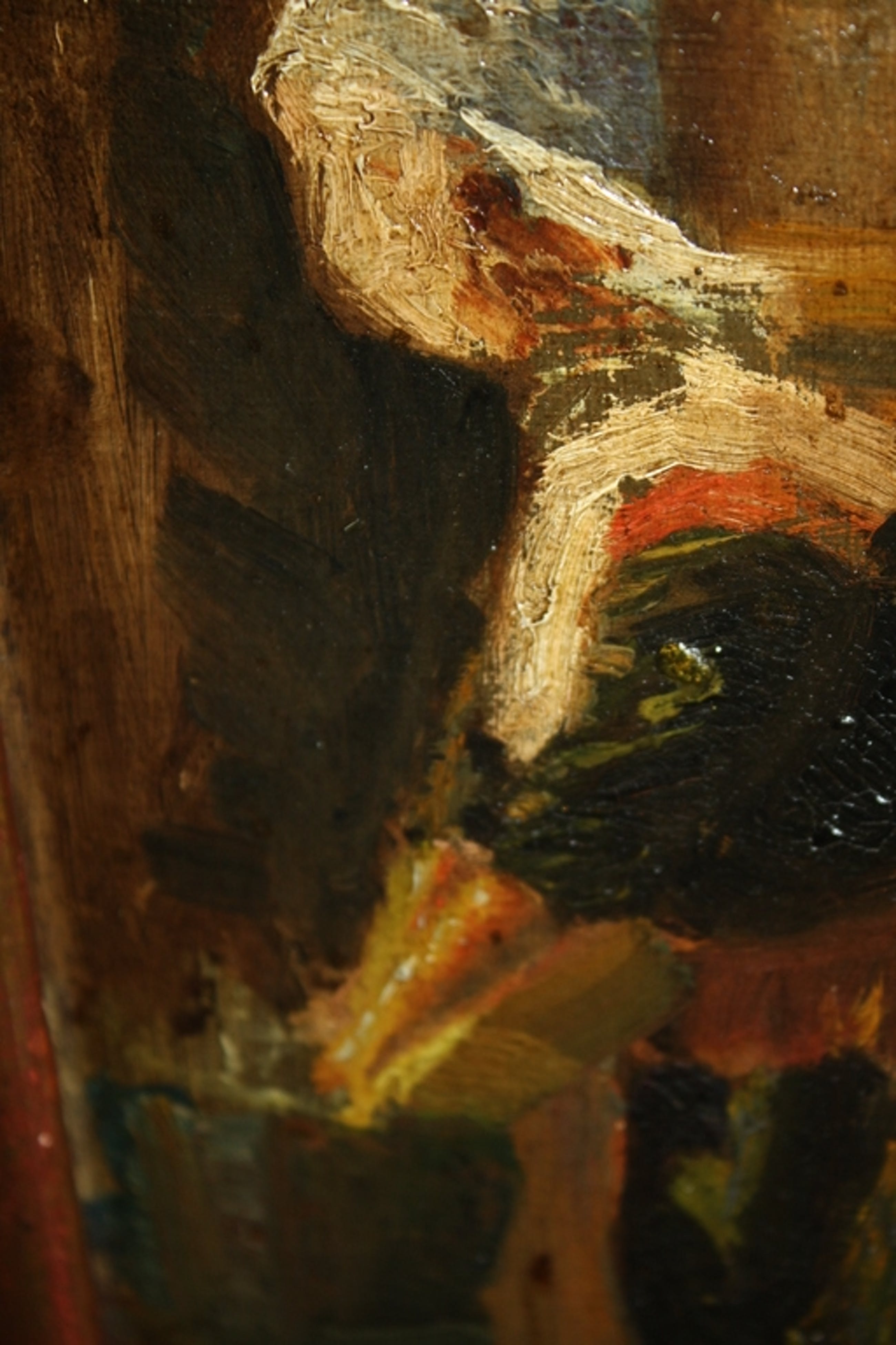 OLIEVERF OP LINNEN GEPLAKT OP PANEEL IN DE MAAT 14,5 X 23 CM
