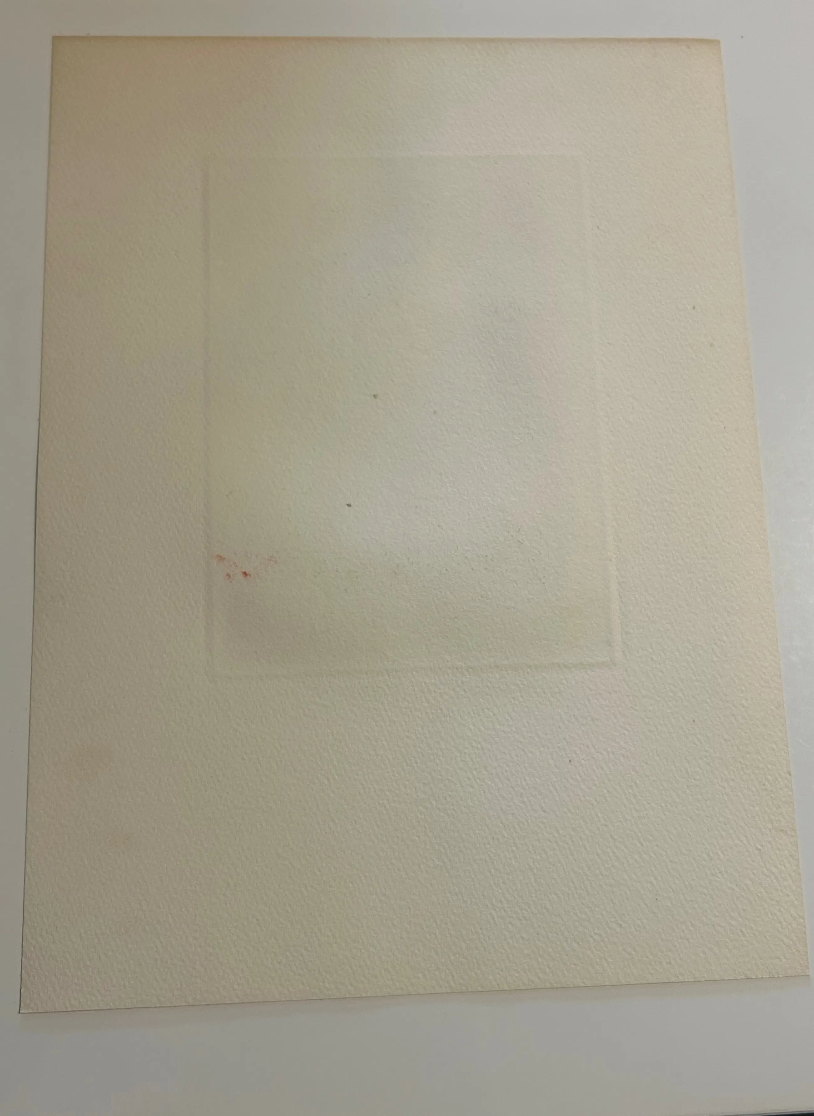 Ets op papier. De vermelde afmetingen zijn gemeten inclusief het volledige papier (bladmaat). De afbeelding zelf (plaatmaat) is 13 cm hoog en 10 cm breed. Zie foto’s voor verdere details en de staat van het werk