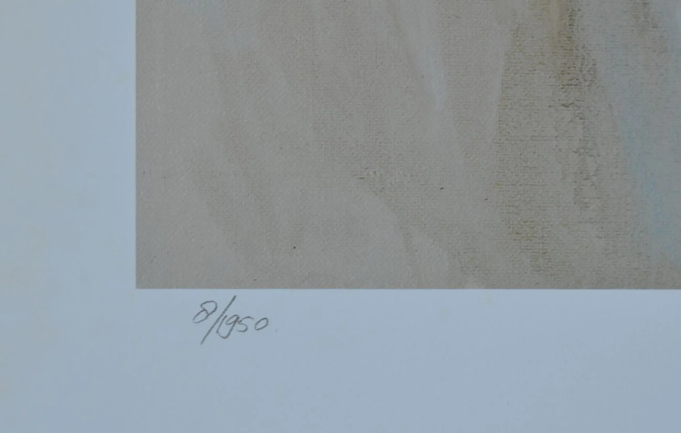De litho is in een goede staat. Uitsluitend aan de randen heeft de litho kleine vouwtjes en kleine verkleuringen. Met een passe-partout zijn deze onvolkomenheden niet zichtbaar. Ook kan de litho bij een lijstenmaker in een kleiner formaat worden gesneden.
