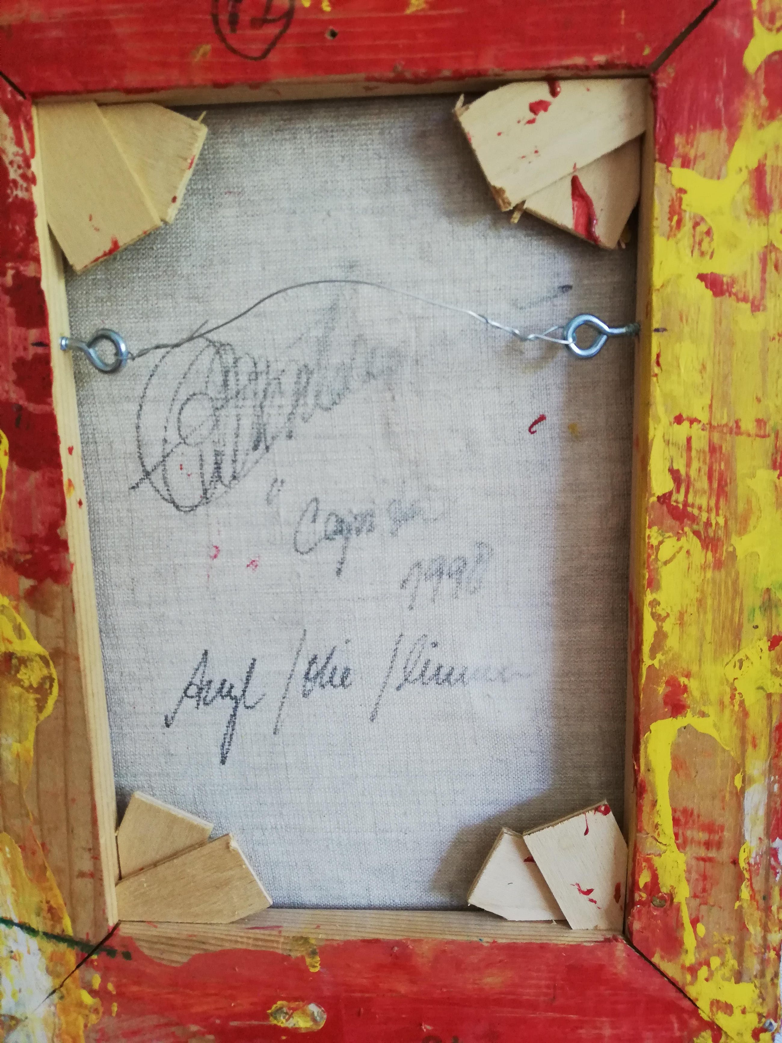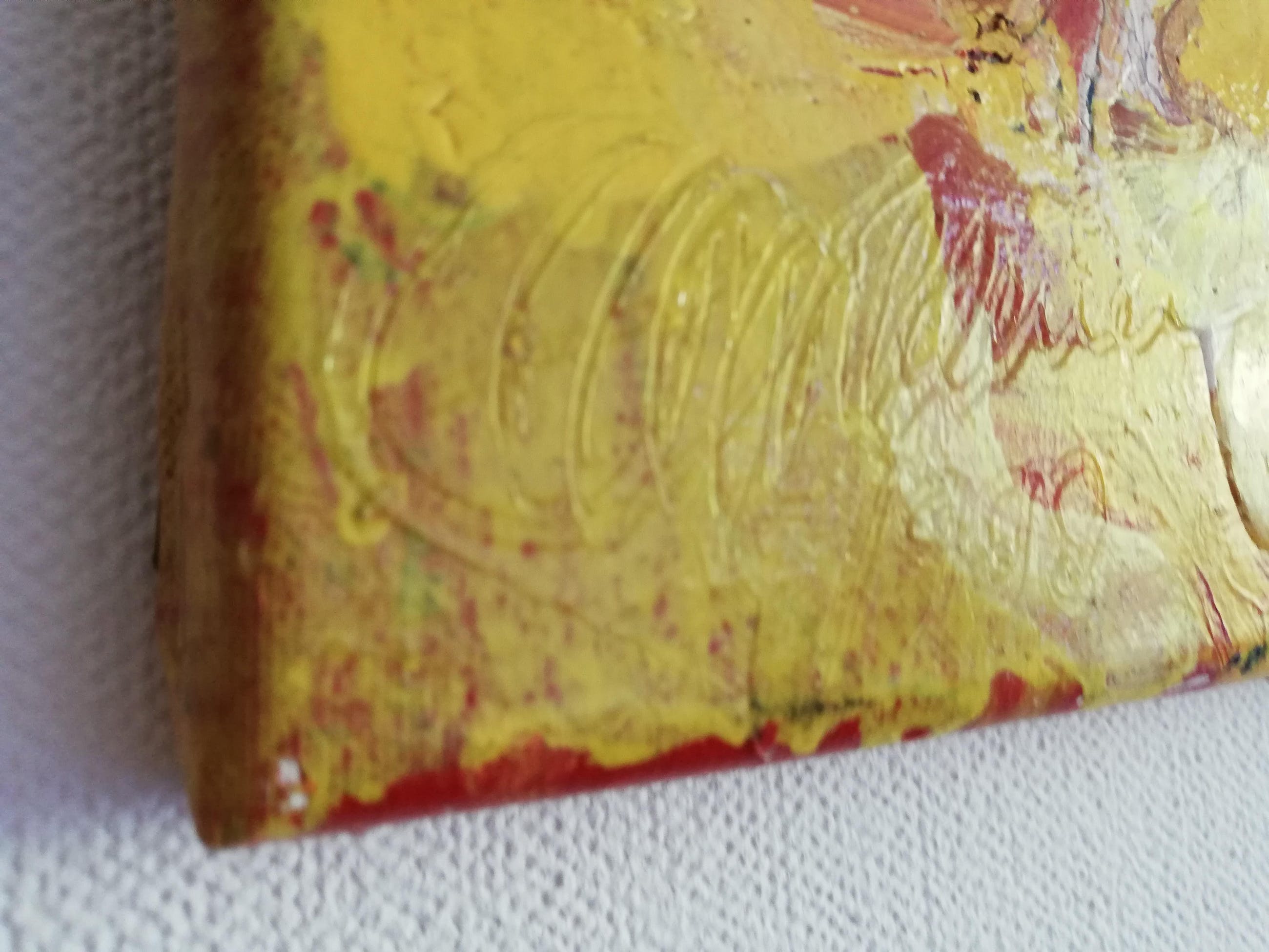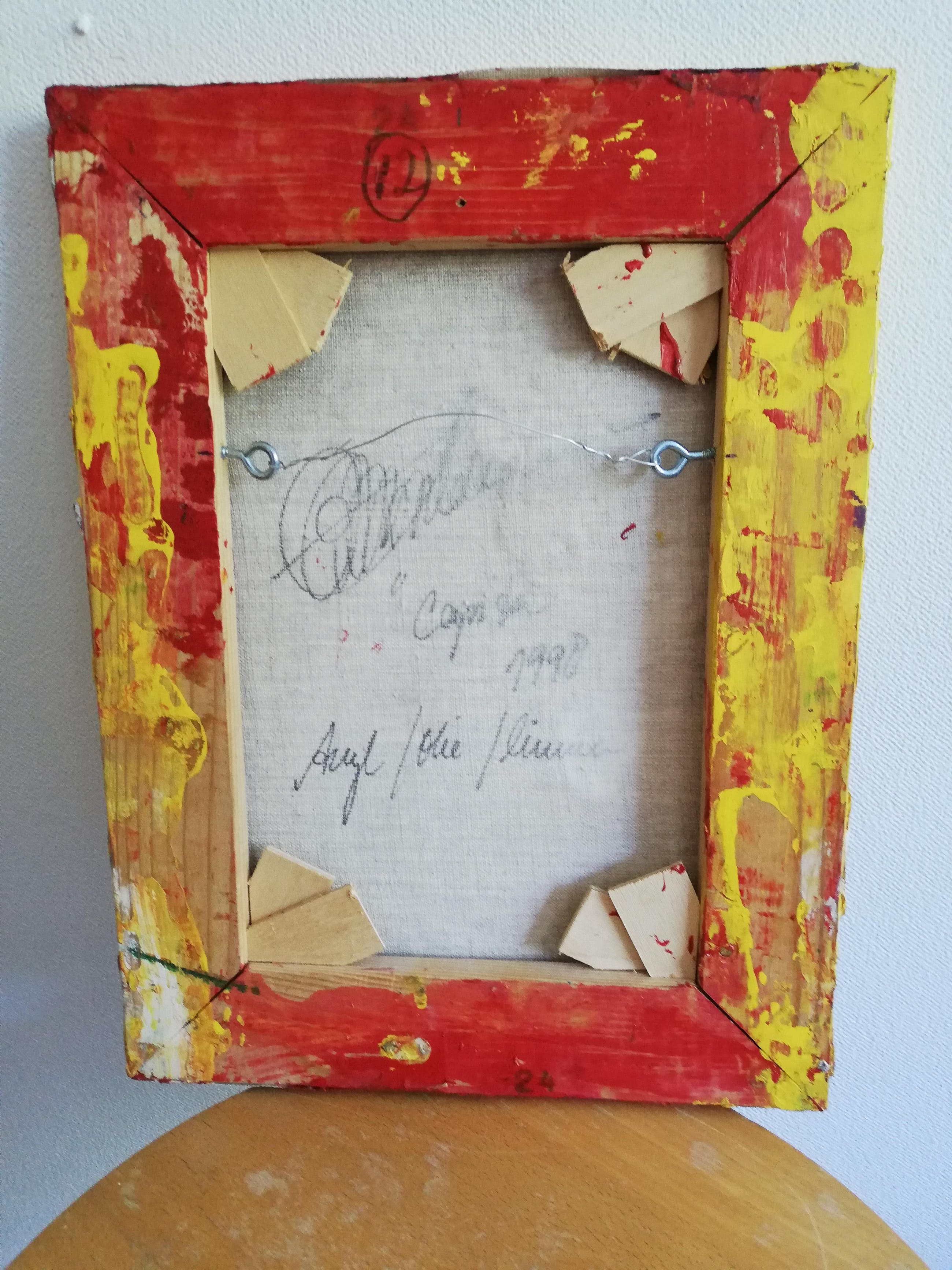 Kleurrijk, pasteus werk van een nog steeds actuele kunstenaar. Bij de vervaardiging van het werk heeft hij met olieverf, acryl en mogelijk ook met een ander materiaal gewerkt. De staat van het werk is door de kunstenaar beoogd en hoort bij het maakproces (zie onderstaande toelichting). Het kunstwerk is ophangklaar.