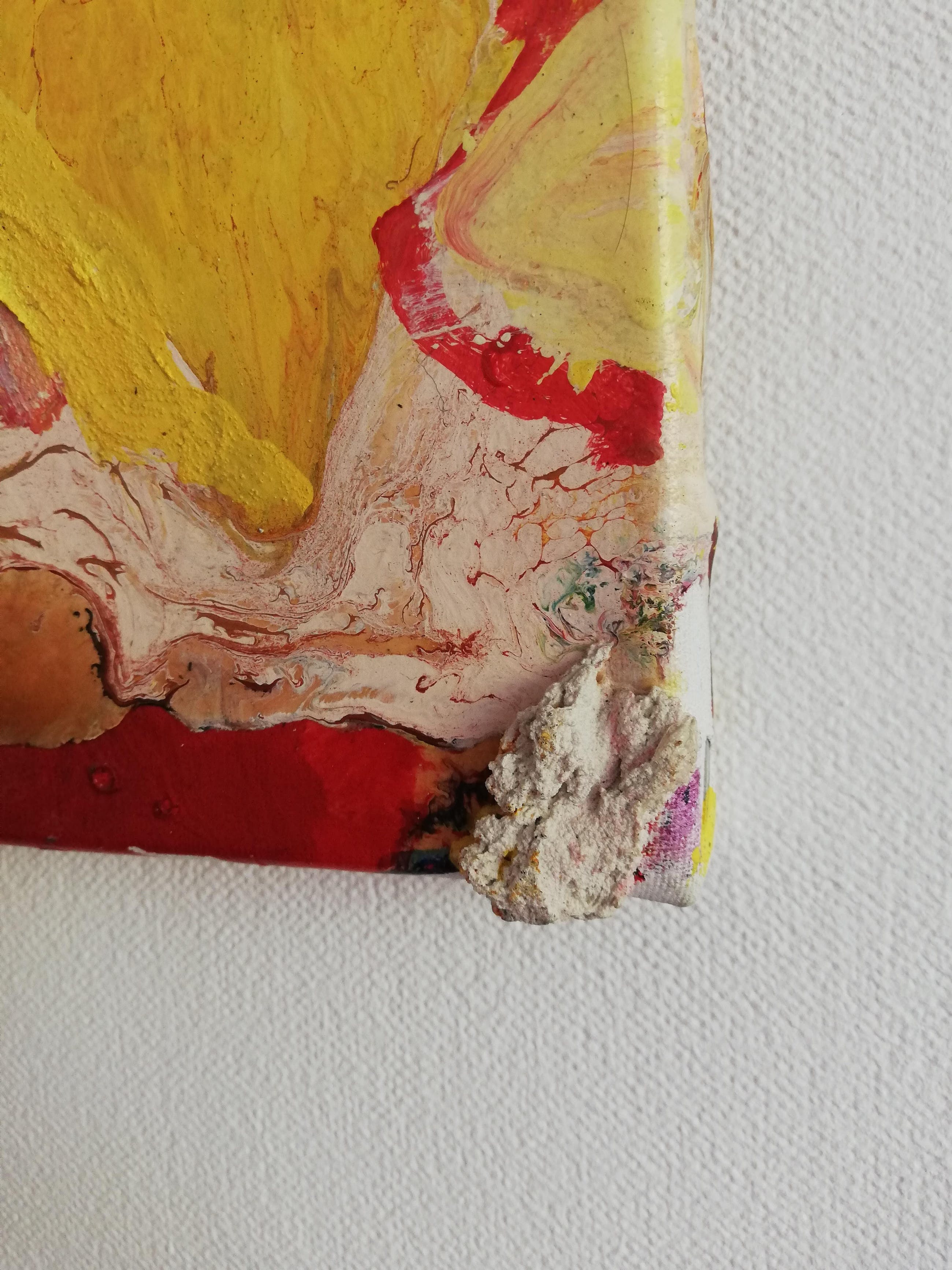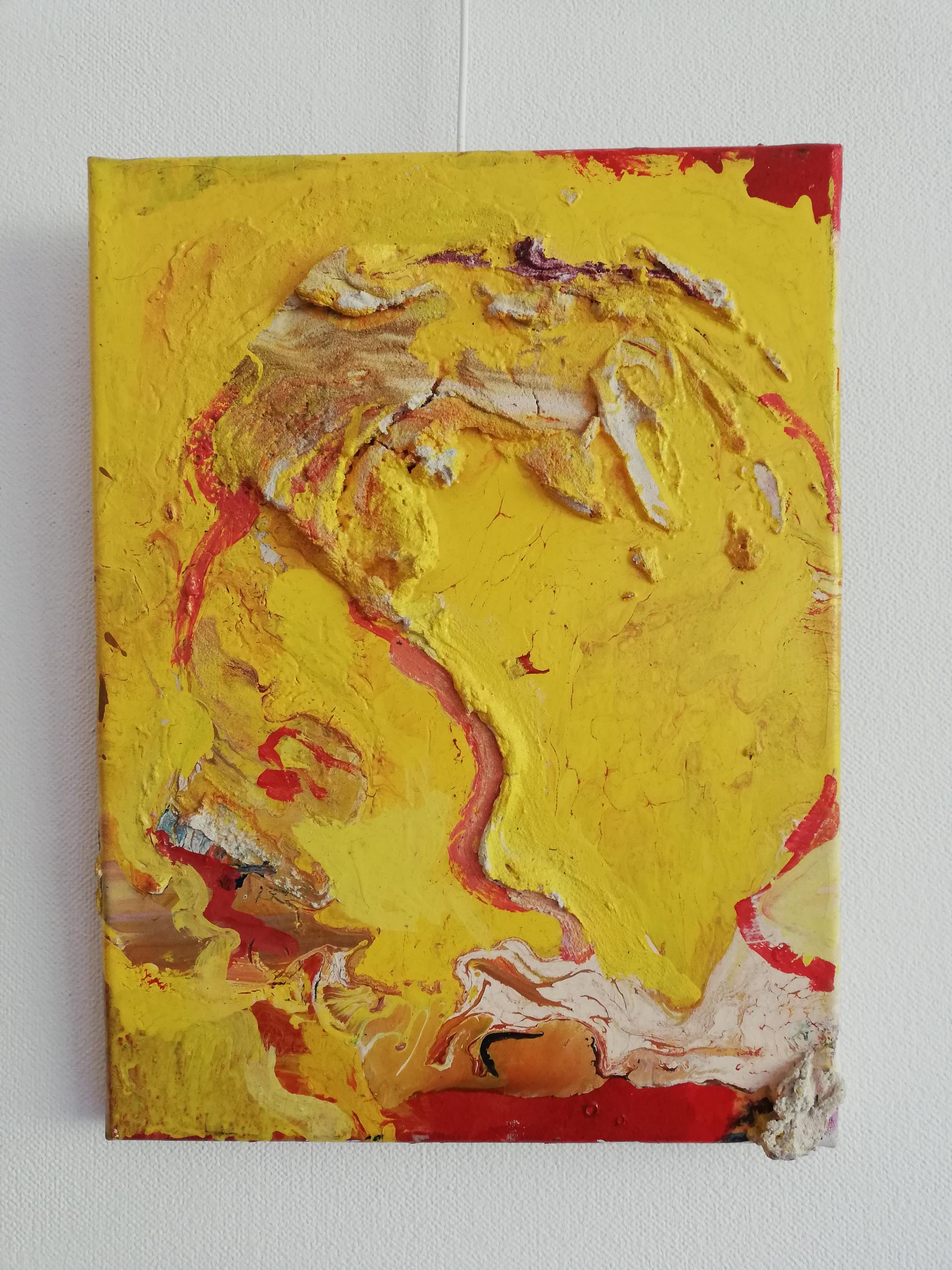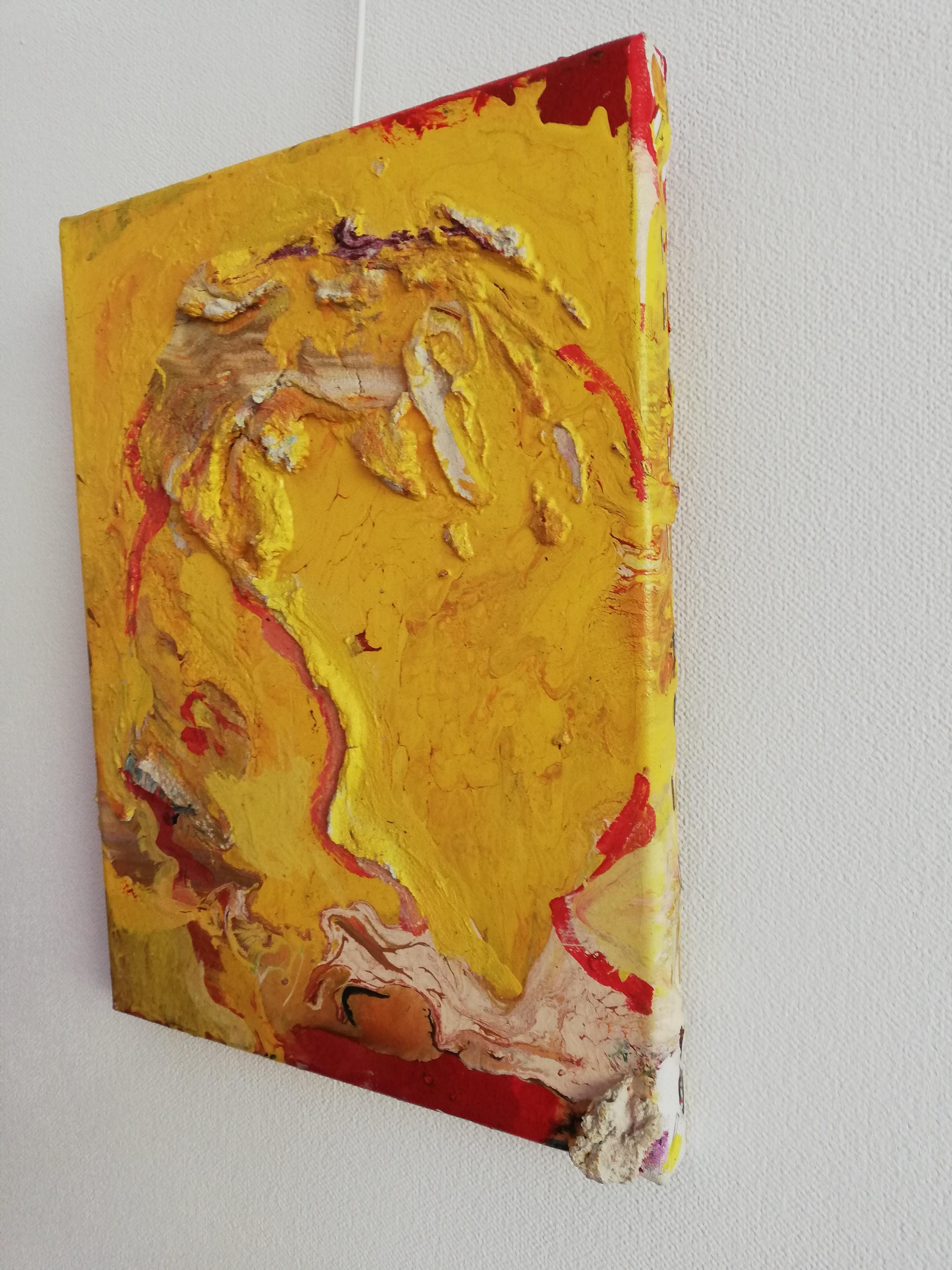 Kleurrijk, pasteus werk van een nog steeds actuele kunstenaar. Bij de vervaardiging van het werk heeft hij met olieverf, acryl en mogelijk ook met een ander materiaal gewerkt. De staat van het werk is door de kunstenaar beoogd en hoort bij het maakproces (zie onderstaande toelichting). Het kunstwerk is ophangklaar.