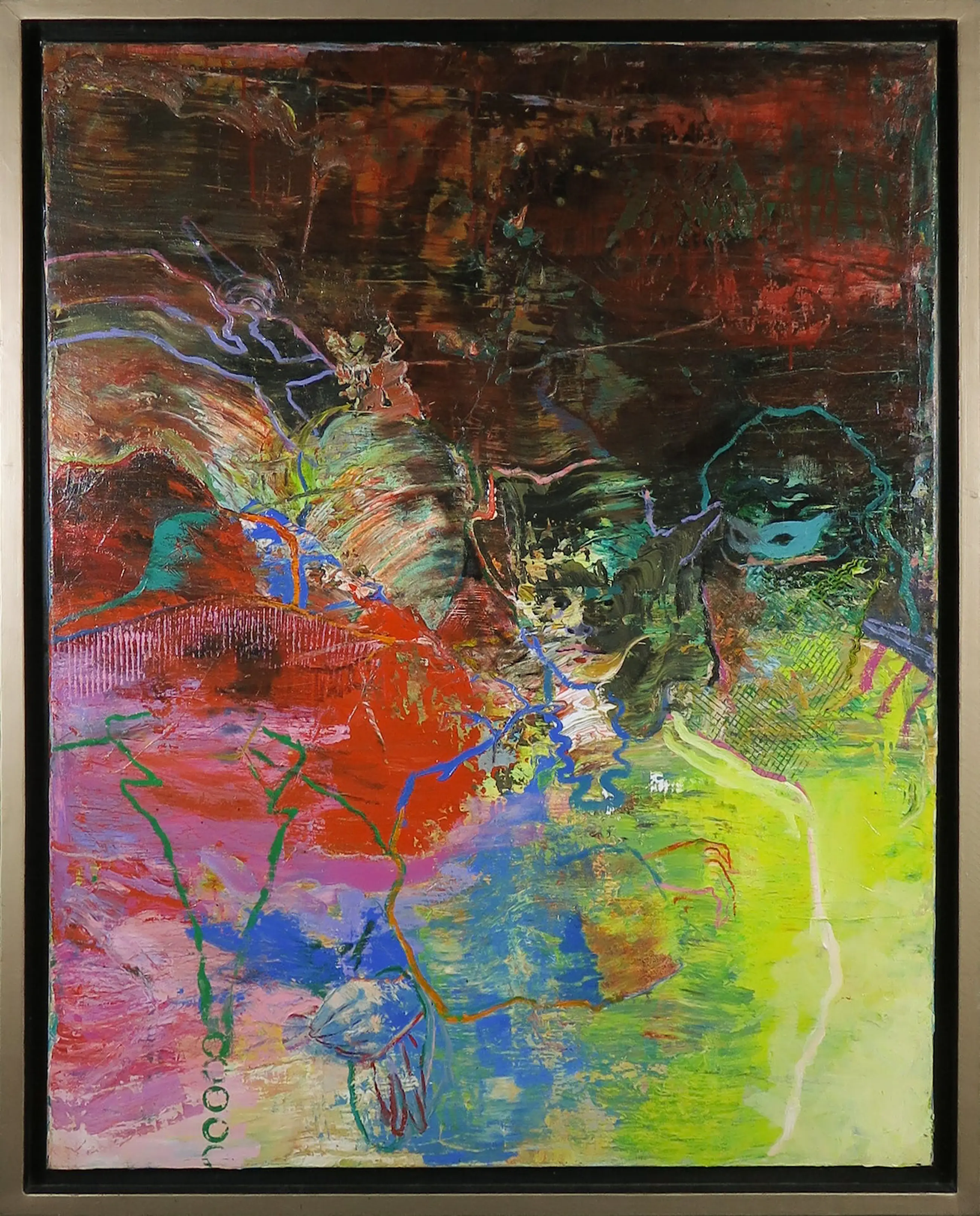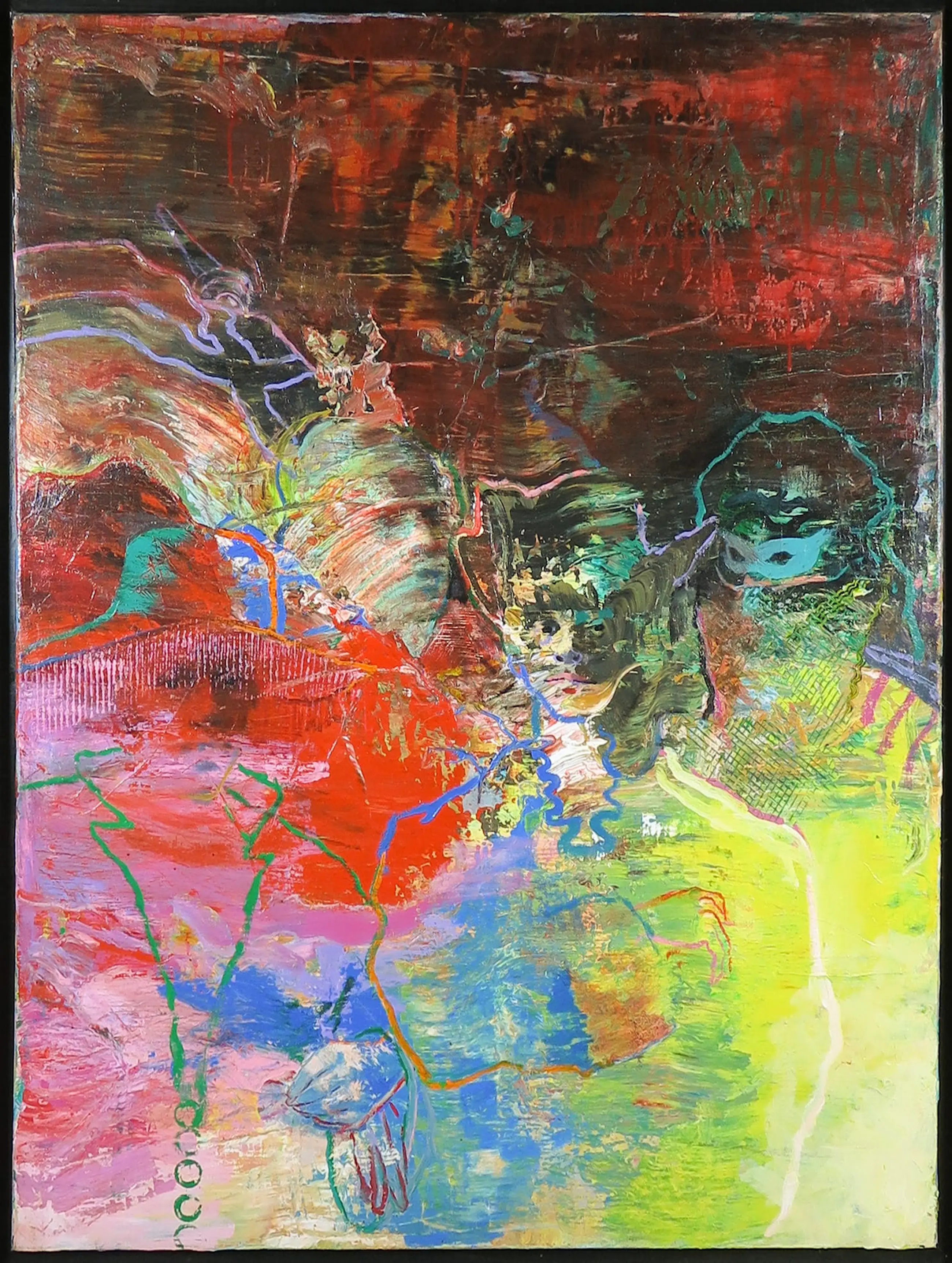 Het werk heeft een beschadiging (gaatje met stuk opstaande verf) linksboven. Verder verkeert het werk in goede staat.