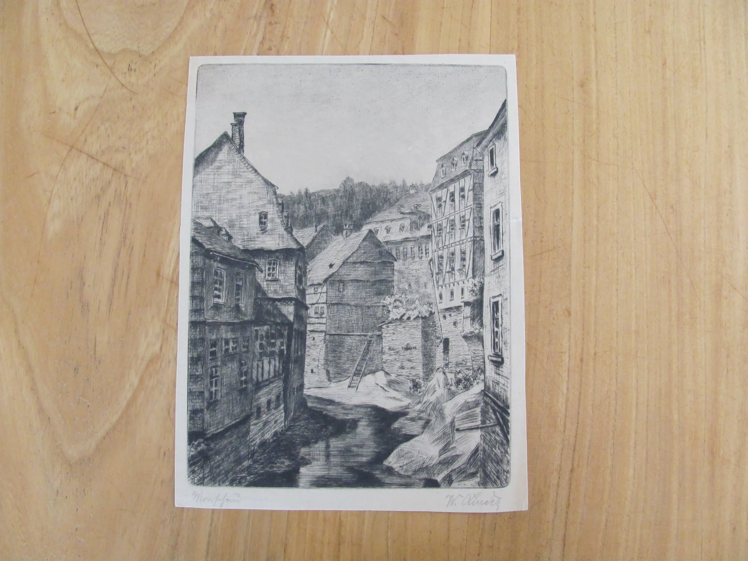 2. Monschau, gesigneerde ets van W. Lindner (?)