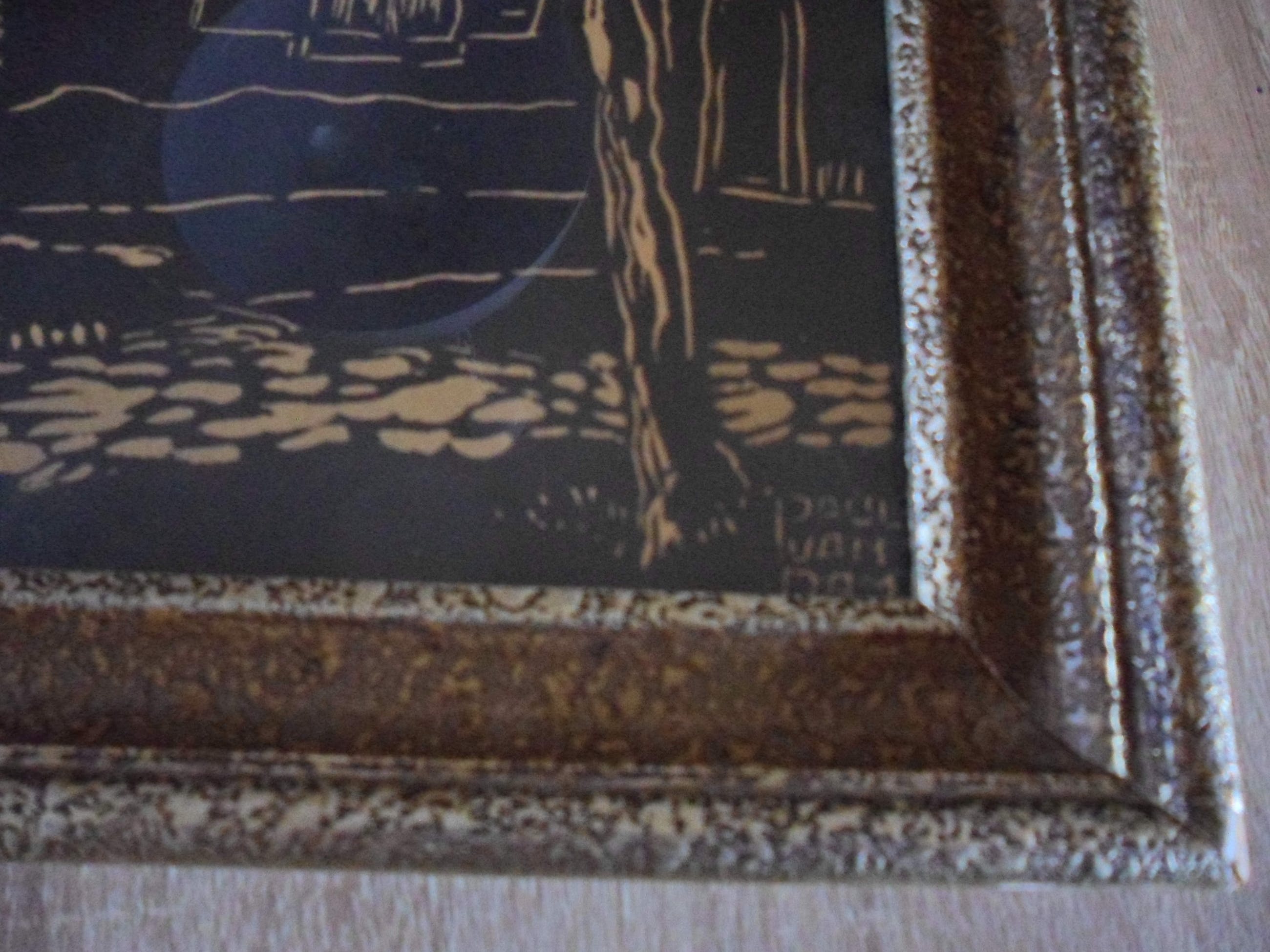 | Lijst heeft wat kleine beschadigingen, houtsnede is 100%. | |||