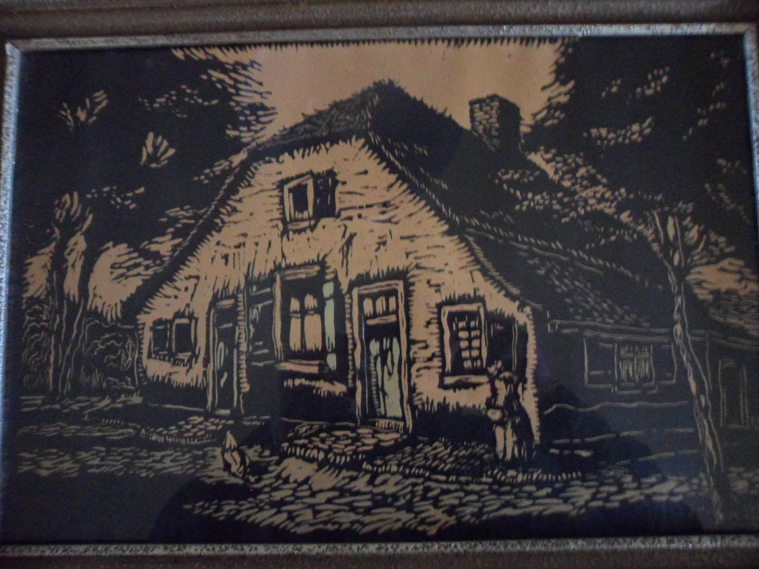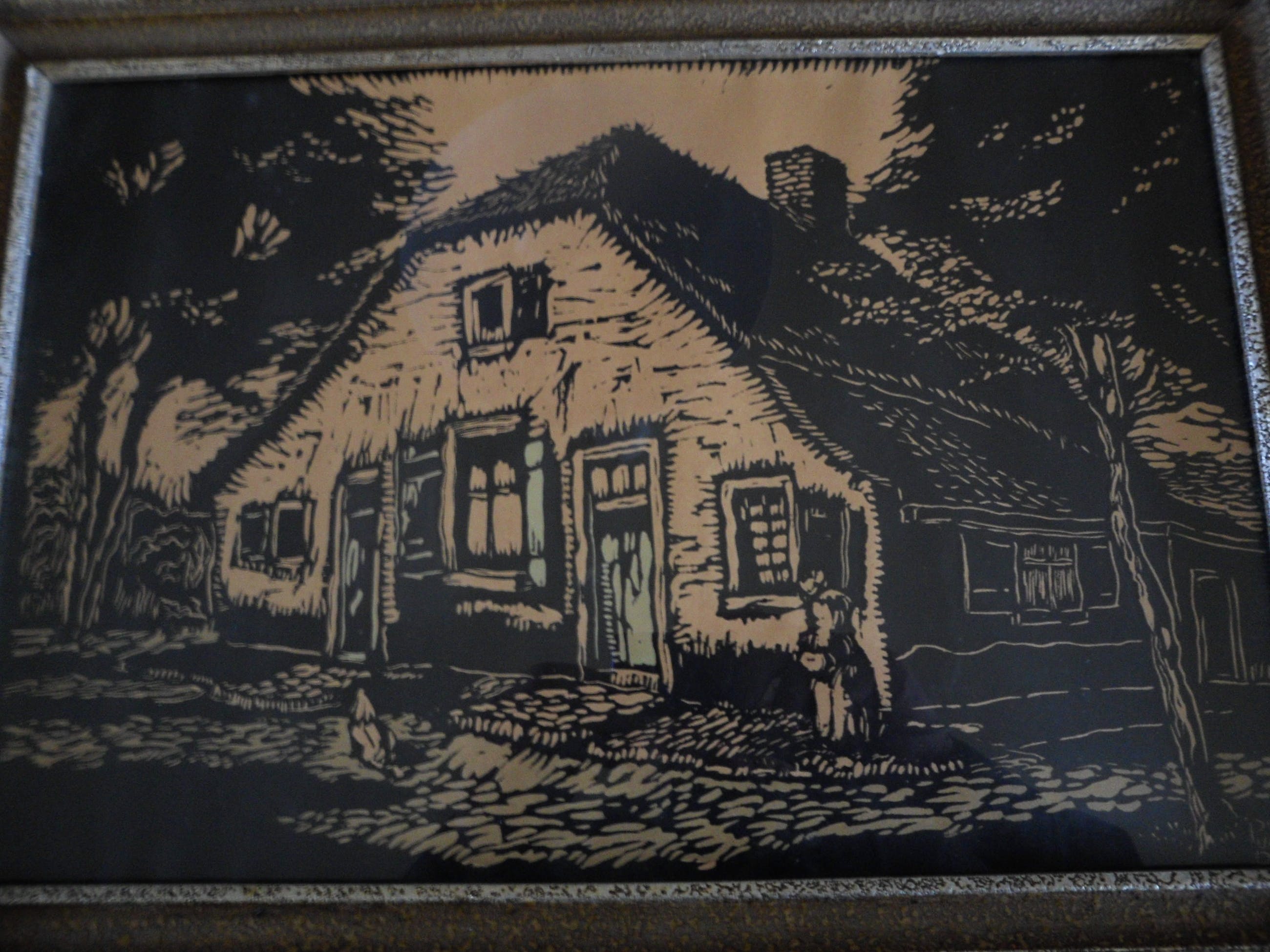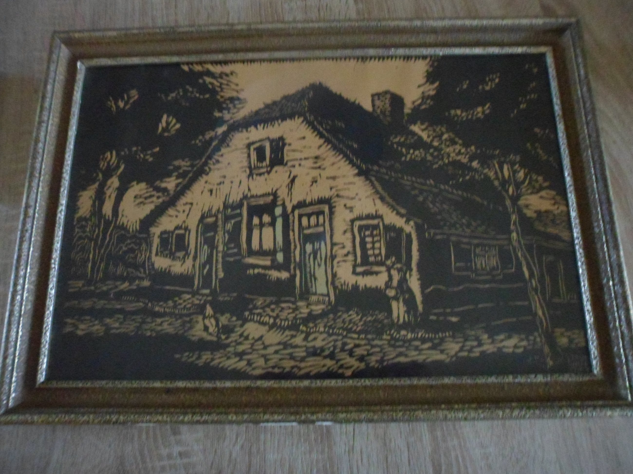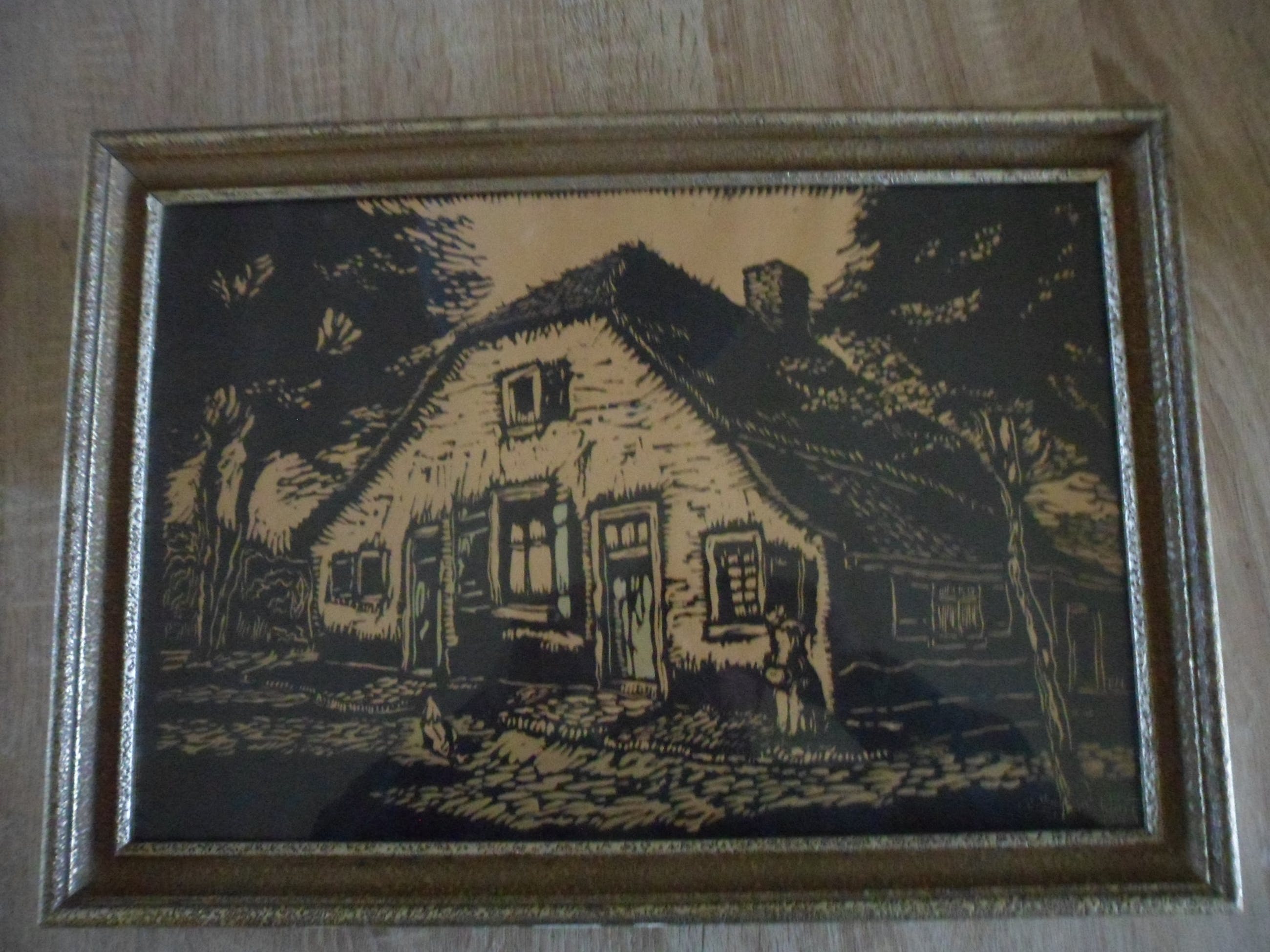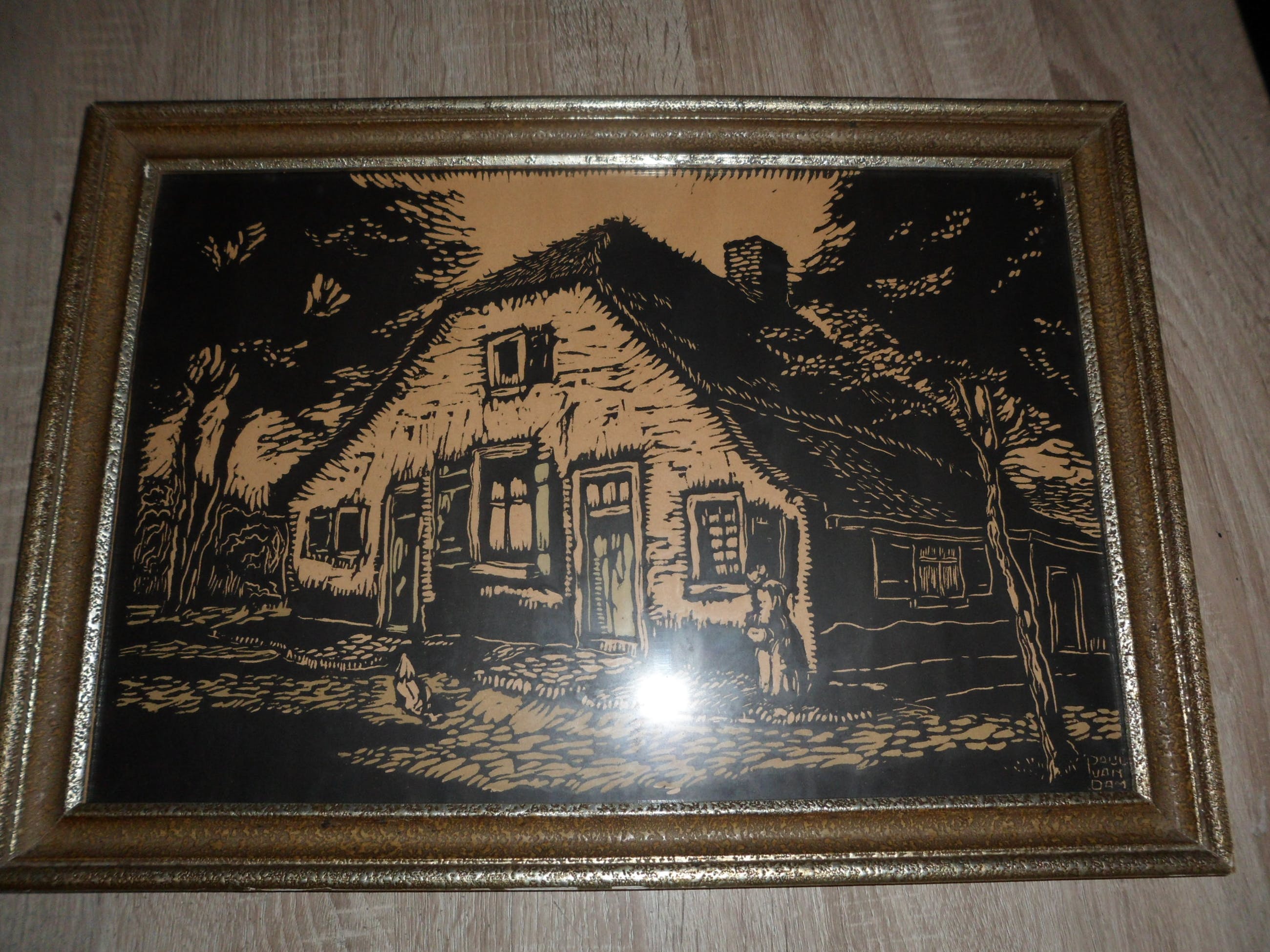 Houtsnede.Afmeting inclusief lijst:H. 35 x B. 49 cm werk is H. 28 X B. 42 cm.
