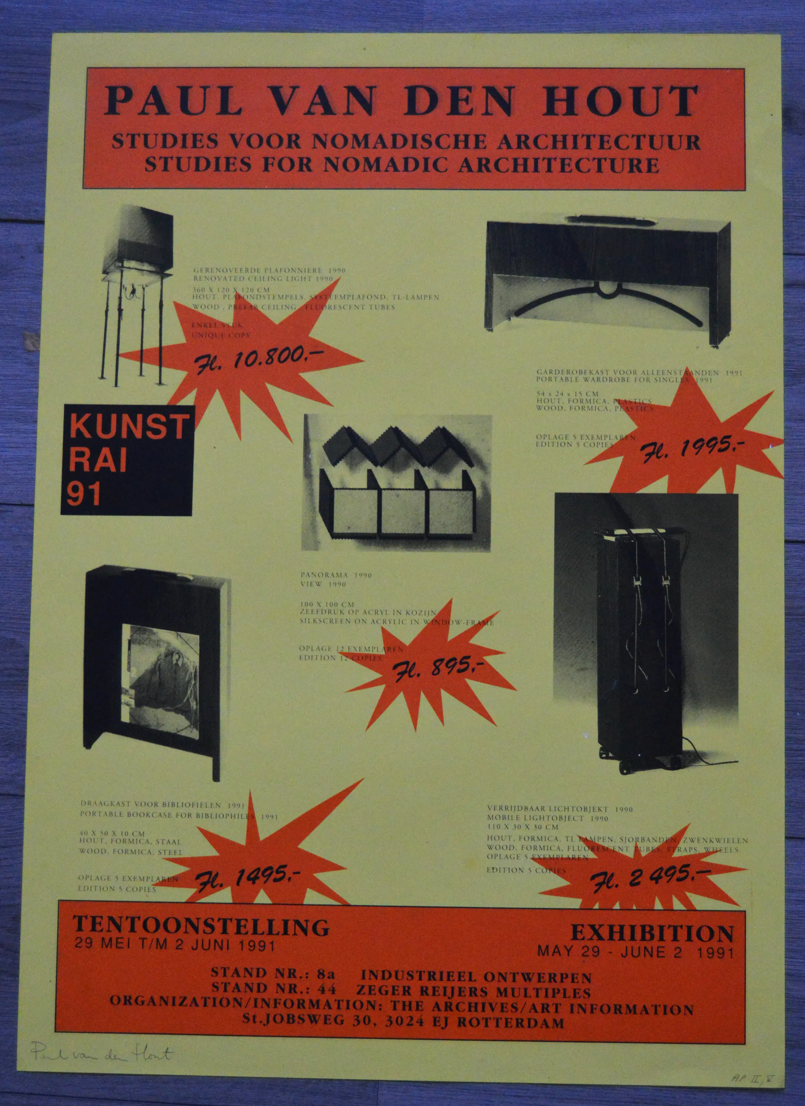 Paul van den Hout,\ Reclame voor; 'Studies voor Nomadische architectuur' Gesigneerd en genummerde oplage van 5 AP exemplaren. Dit is nummer II / V