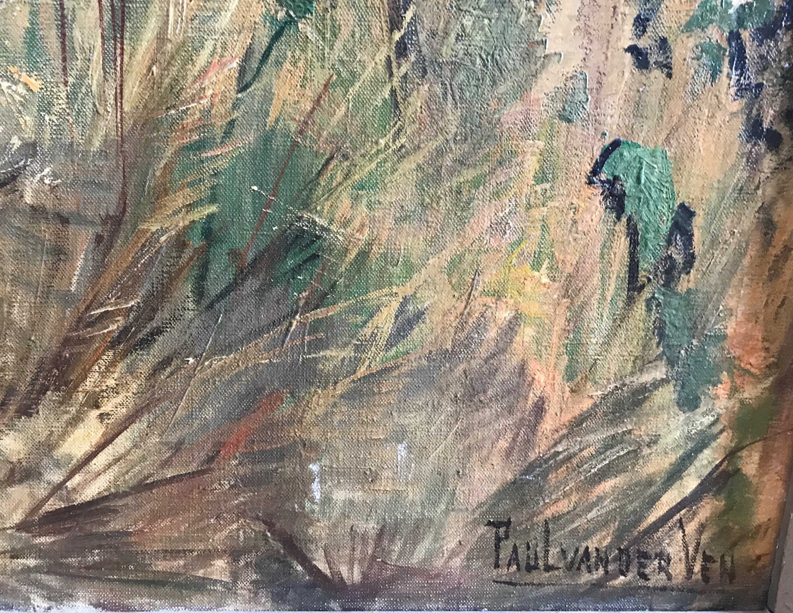 Mooi en groot schilderij van Paul van der Ven. Een van zijn mooiste werken. Kan wat liefdevolle aandacht gebruiken. Het schilderij heeft een eenvoudige houten lijst. Ophalen in Den Haag of Leidschendam.