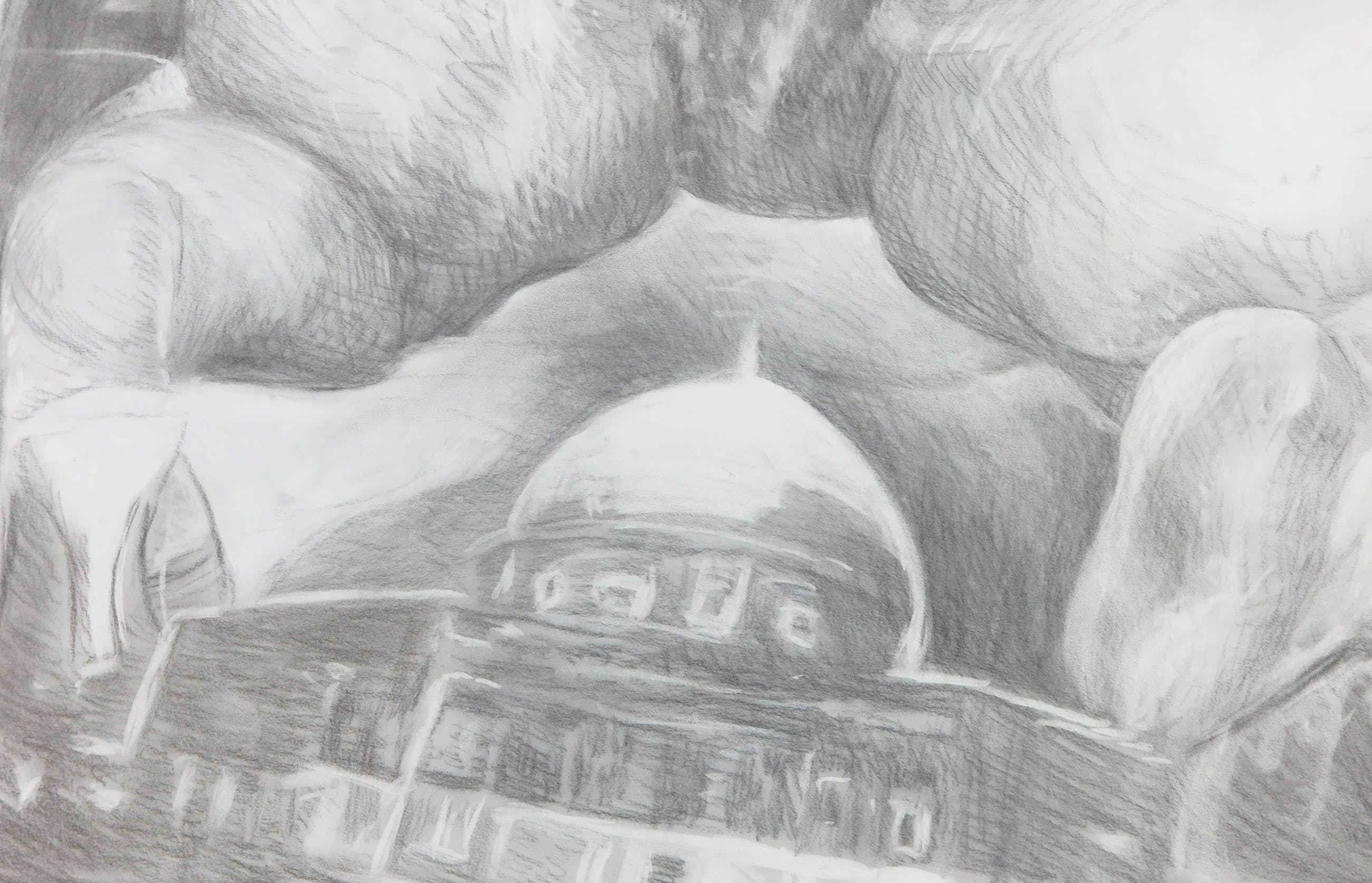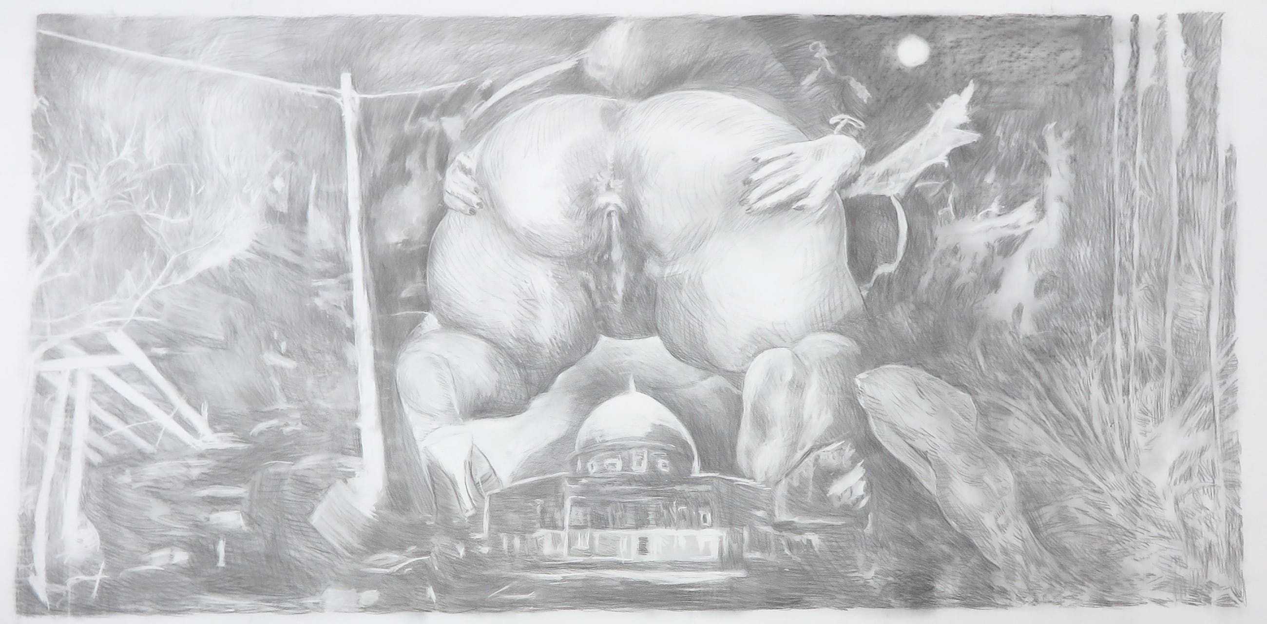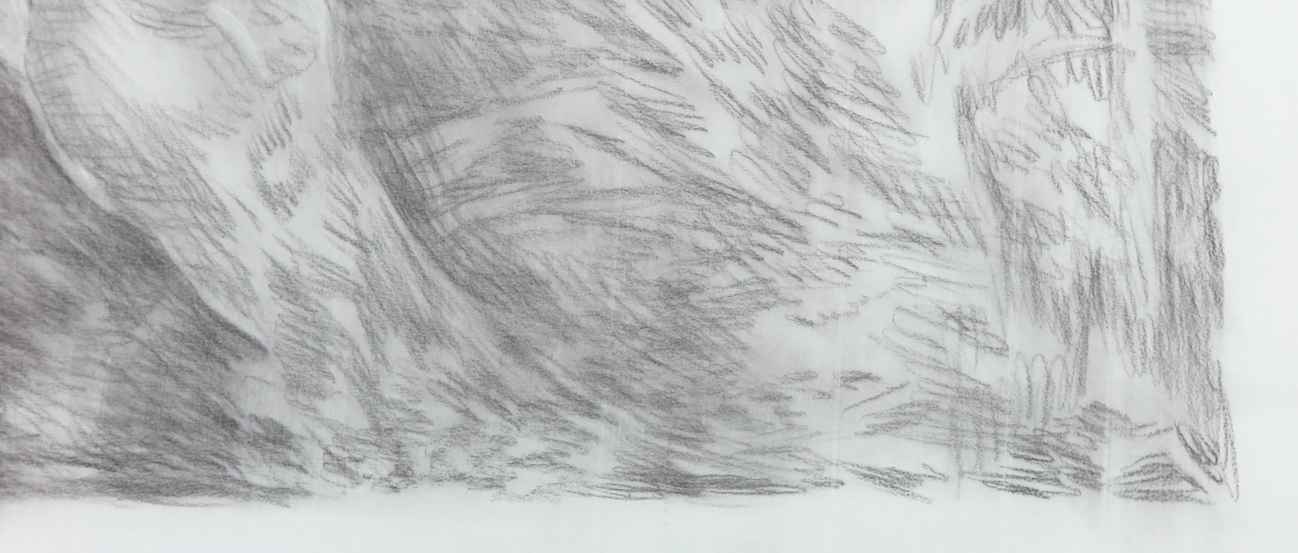 Aantal houtskoolvegen langs de randen van het papier als gevolg van de door de kunstenaar gebruikte techniek. Langs de randen van het blad een aantal kleine vouwtjes. Het werk is opgerold en wordt opgerold geleverd. | |