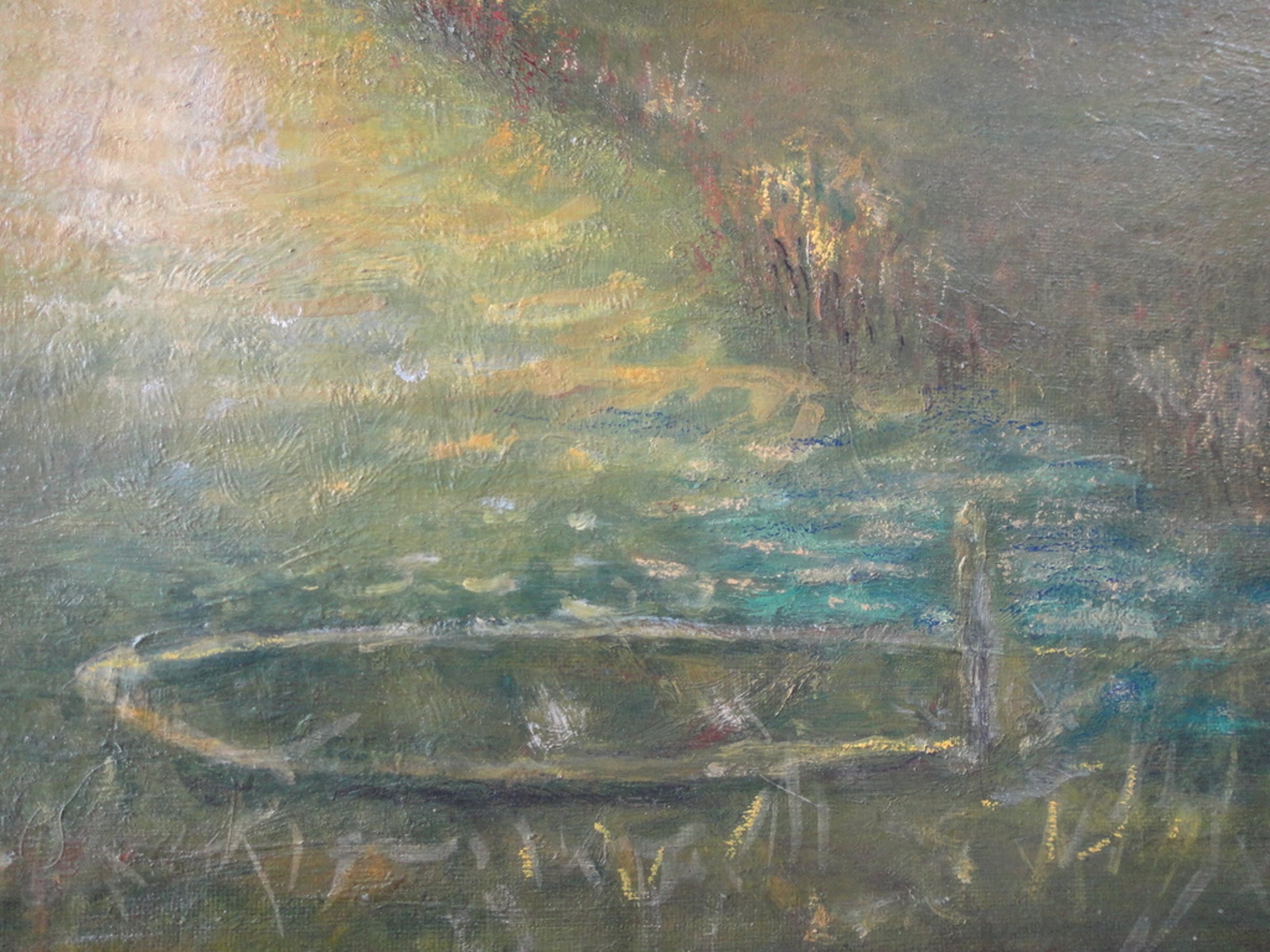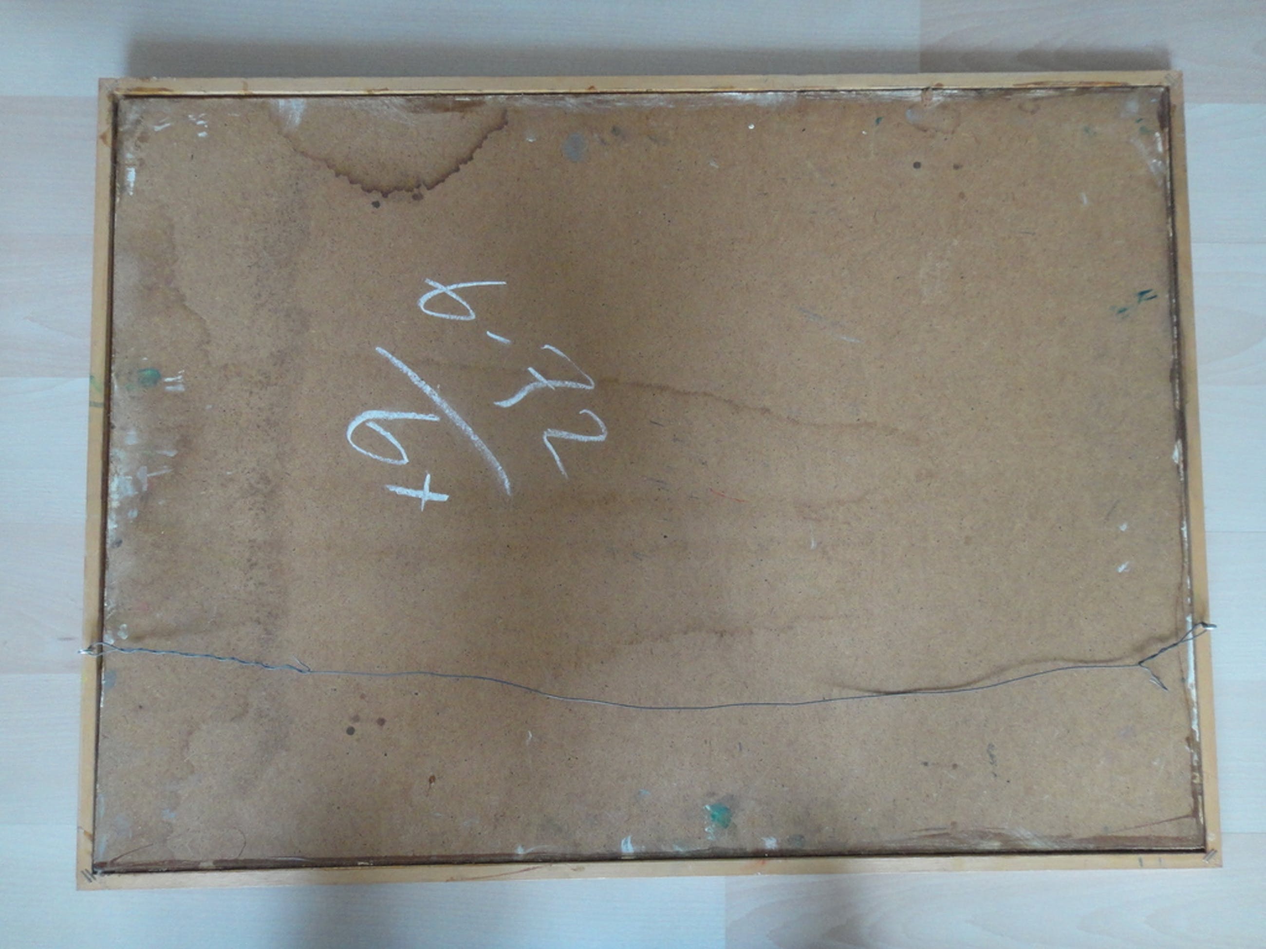 Olieverf op board. Het schilderij is gevat in een eenvoudige houten lijst. Afmeting: 52 x 72 cm.