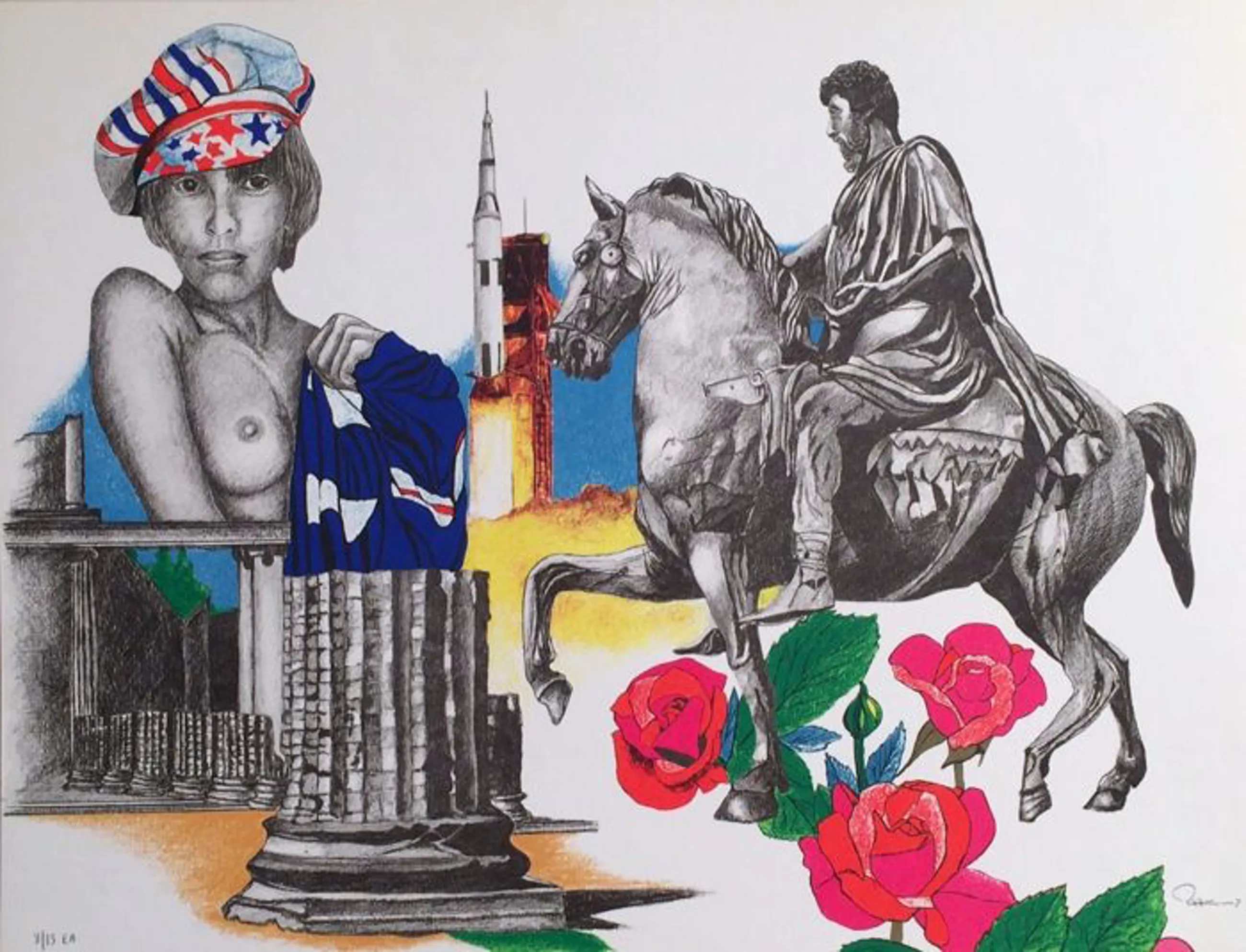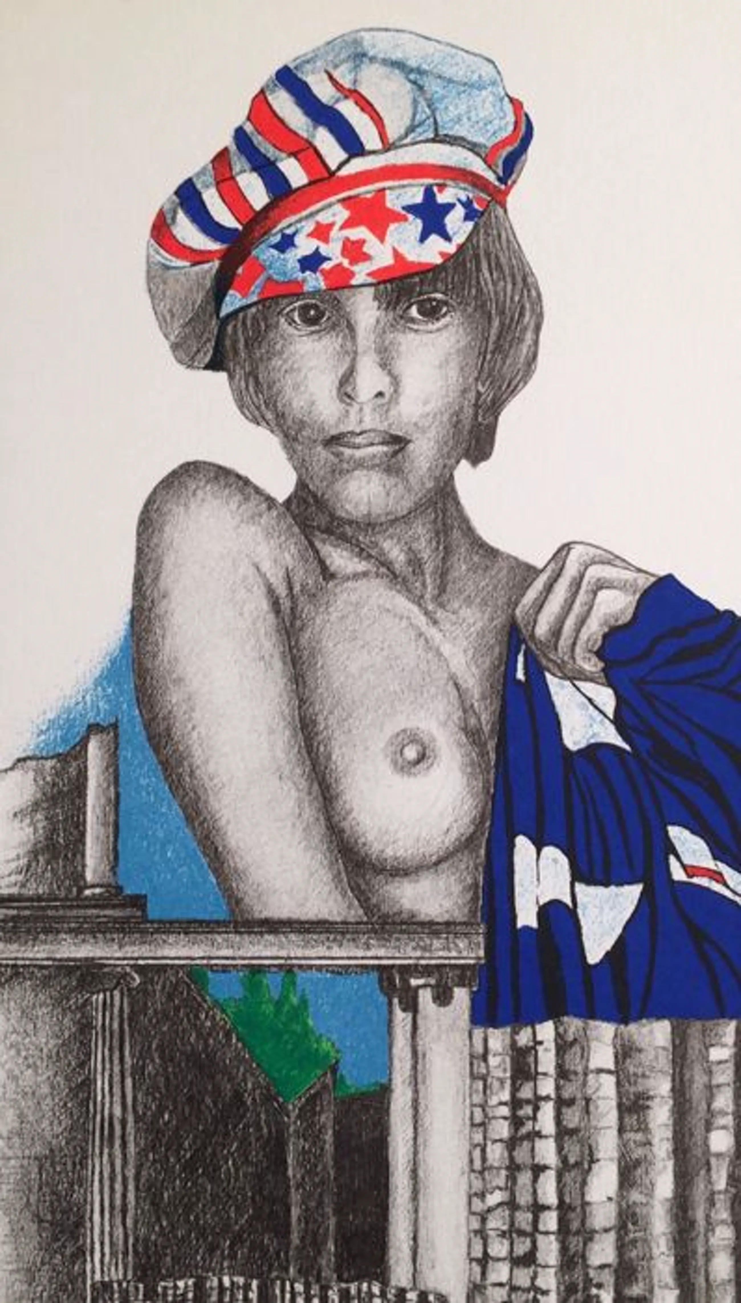 Typisch werk van Paul van Hoeydonck met de voorstelling van een vrouw in een surrealistisch landschap.