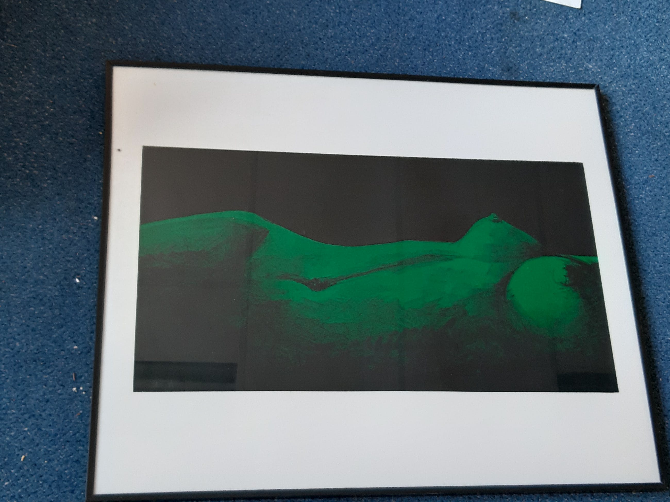 Fraai en sensueel werk van deze beeldhouwer en graficus, rechtsonder handgesigneerd; het betreft een E/A exemplaar en ingelijst exemplaar.