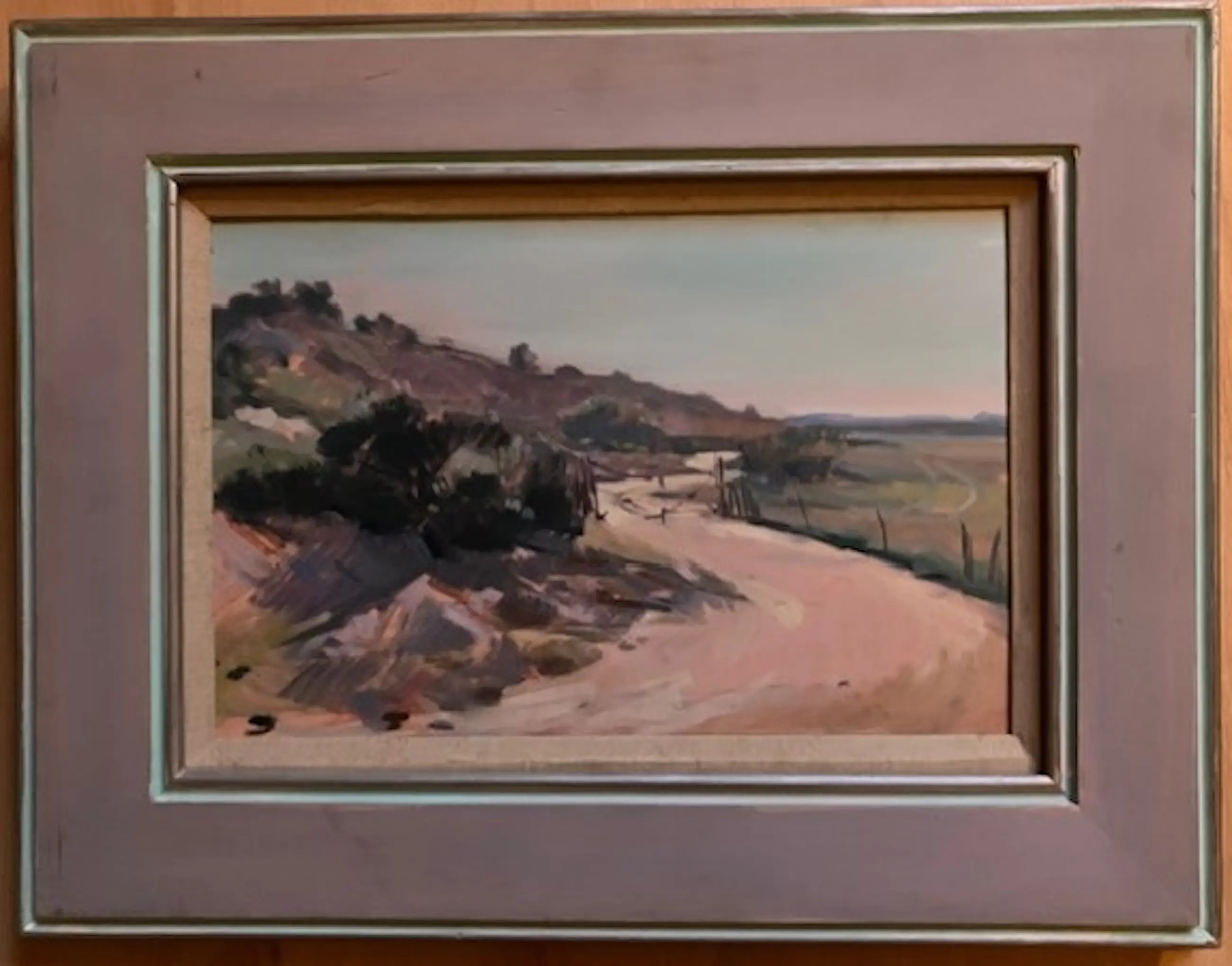 Het betreft een sfeervol, in zachte pasteltinten opgezet duin- of heidelandschap, mager met olieverf geschilderd op board. Het schilderij is ingelijst in een bijbehorende houten lijst, geverfd in bijpassende kleuren. Het schilderij is weliswaar niet gesigneerd, maar blijkens bijbehorende documentatie in 1986 gekocht op een expositie van de kunstenaar in een kunstgalerie in Bergen NH.