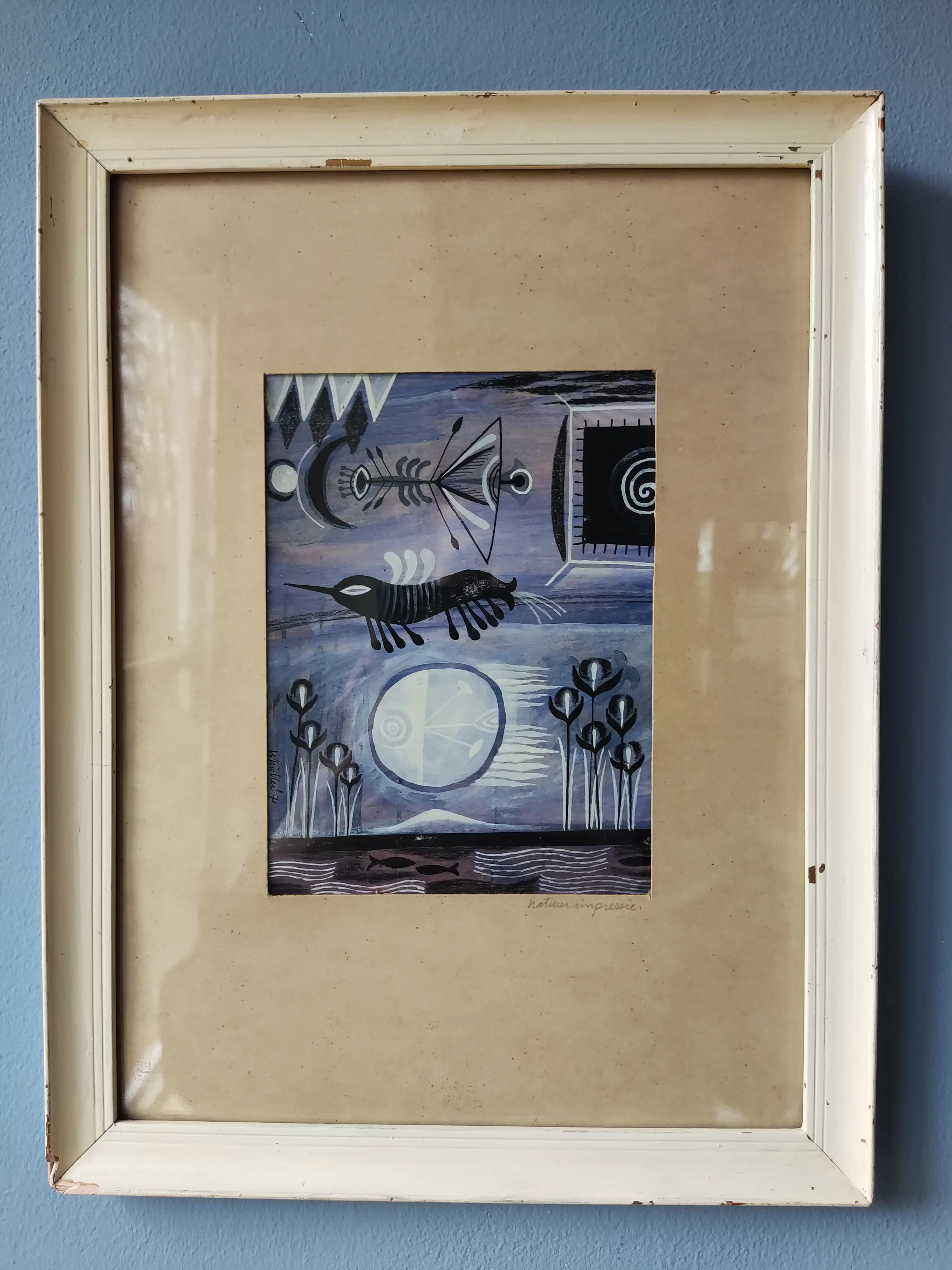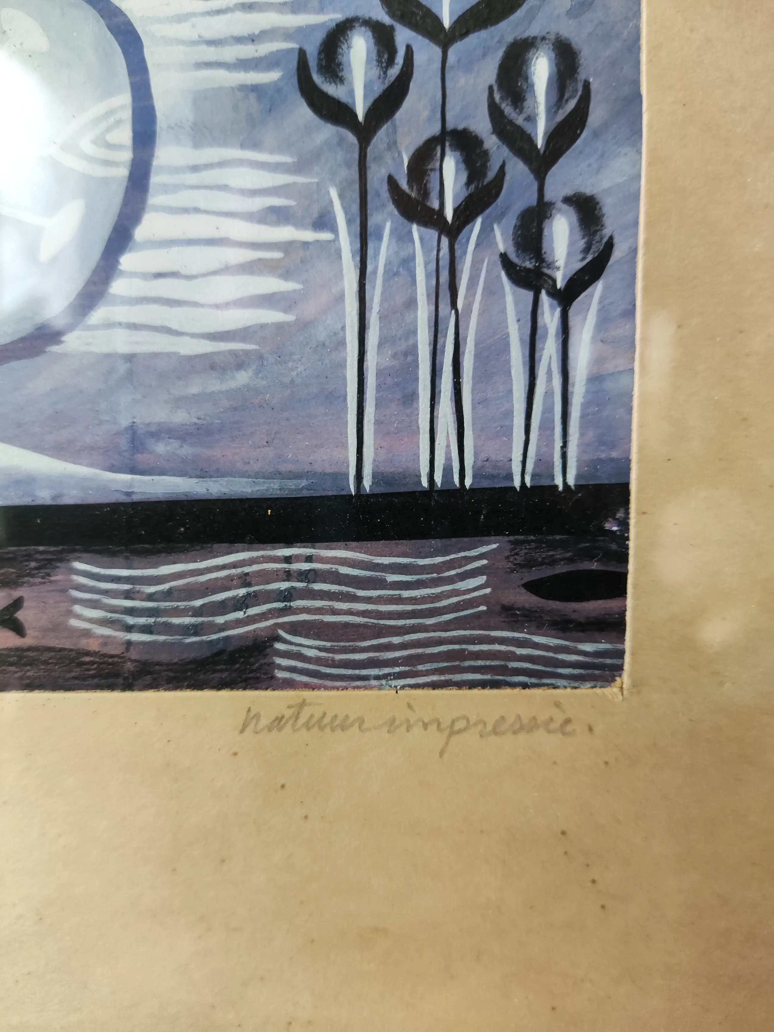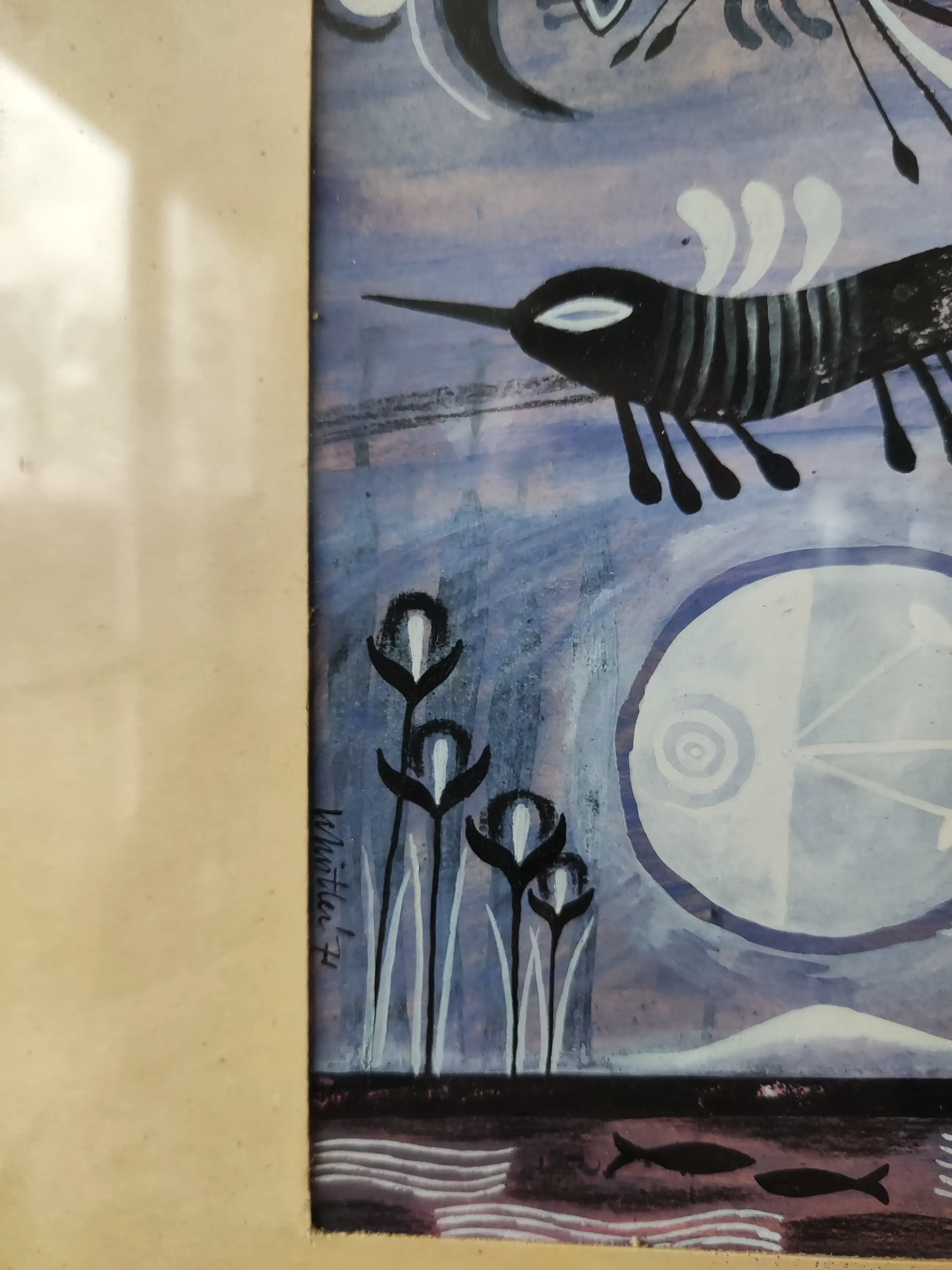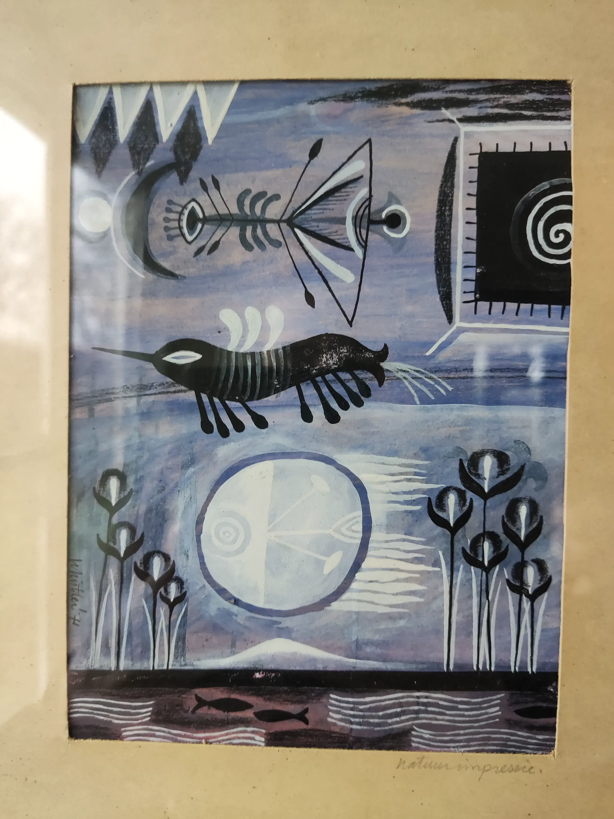Werk zelf is in goede conditie achter glas. Lijst heeft wel beschadigingen/slijtage aan de rand.