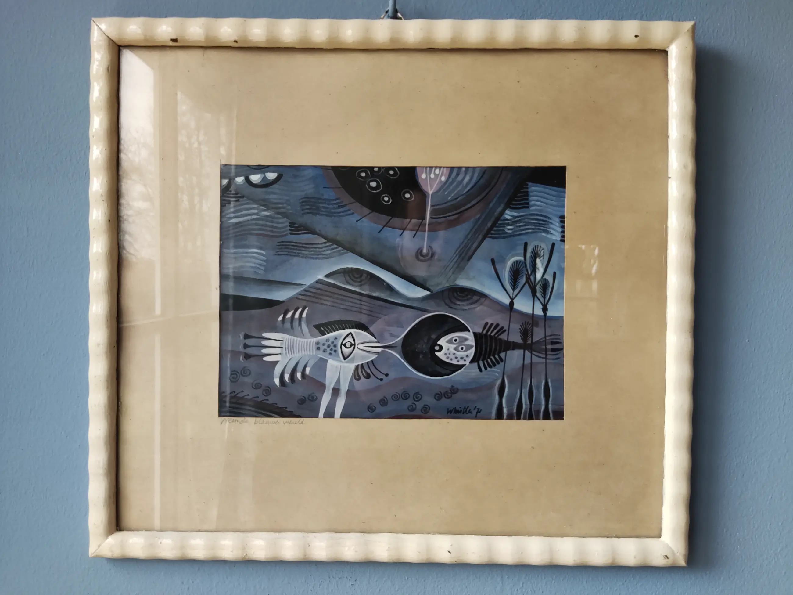 Werk is in mooie conditie achter glas. Orginele lijst vertoond enkele slijtage plekken.